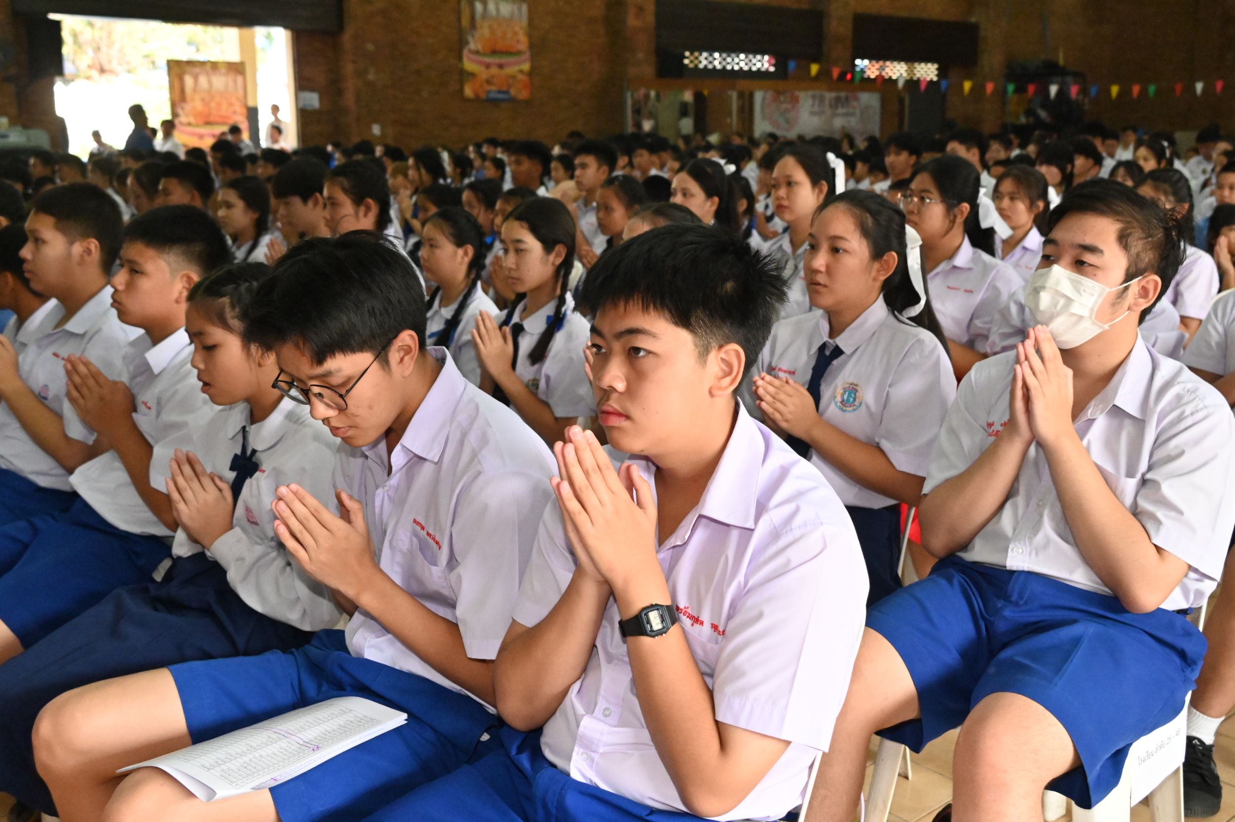 ตั้งแต่เวลา 08.00–08.30 น. ผู้ได้รับรางวัล ผู้ปกครอง คณะครู อาจารย์ และนักเรียนจากสถานศึกษาต่าง ๆ ในจังหวัดเชียงใหม่ ทยอยลงทะเบียนและพร้อมเพรียงกันภายในอาคารพุทธสถานเชียงใหม่ จากนั้นประธานในพิธีจุดธูปเทียนบูชาพระรัตนตรัย พิธีกรนำไหว้พระสวดมนต์ และร่วมร้องเพลง “มาฆบูชา” เพื่อรำลึกถึงเหตุการณ์สำคัญในสมัยพุทธกาล วันที่พระสงฆ์ 1,250 รูป มาประชุมพร้อมกันโดยมิได้นัดหมาย และพระพุทธเจ้าทรงแสดงโอวาทปาติโมกข์ อันเป็นหัวใจสำคัญของพระพุทธศาสนา