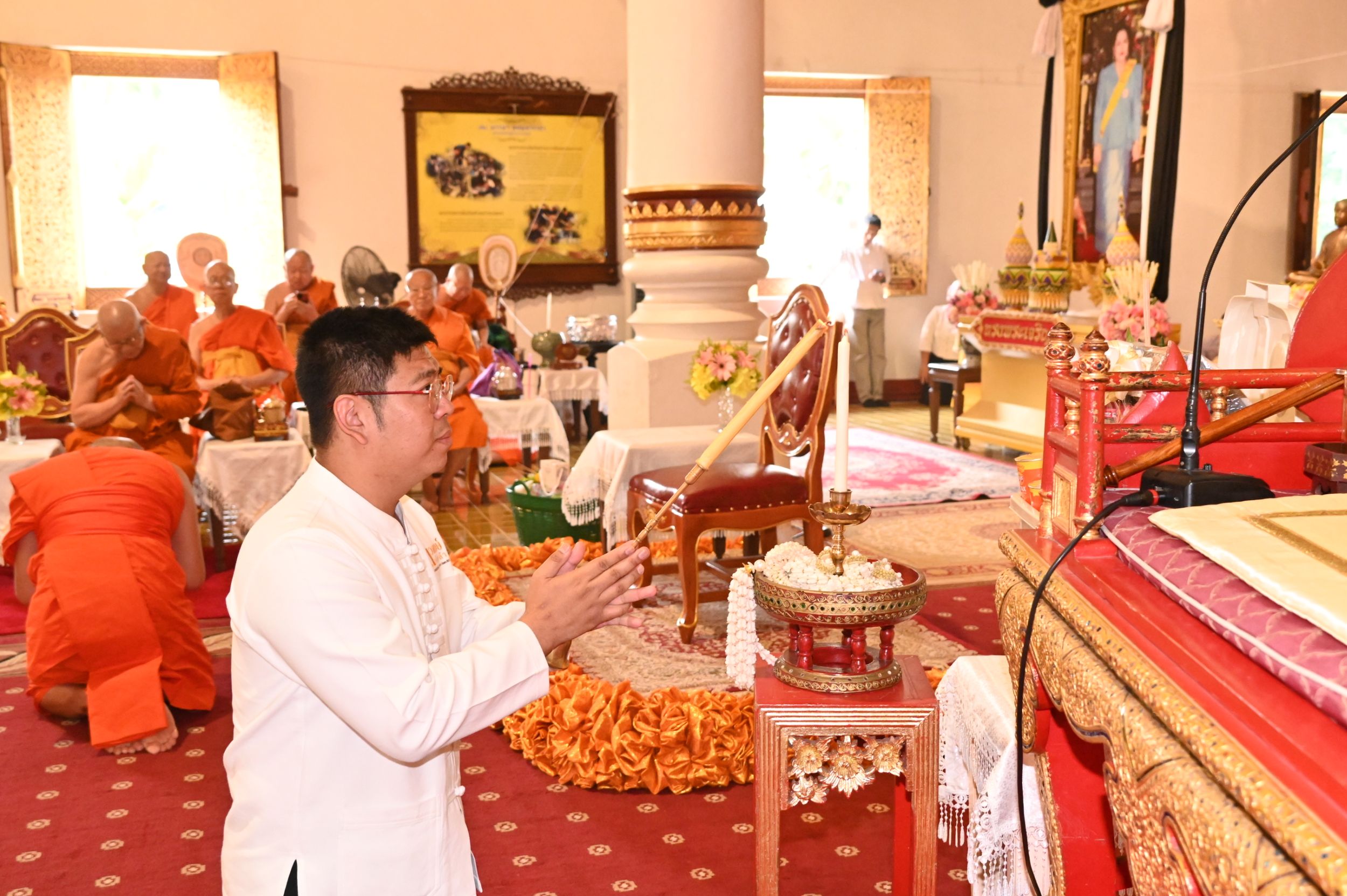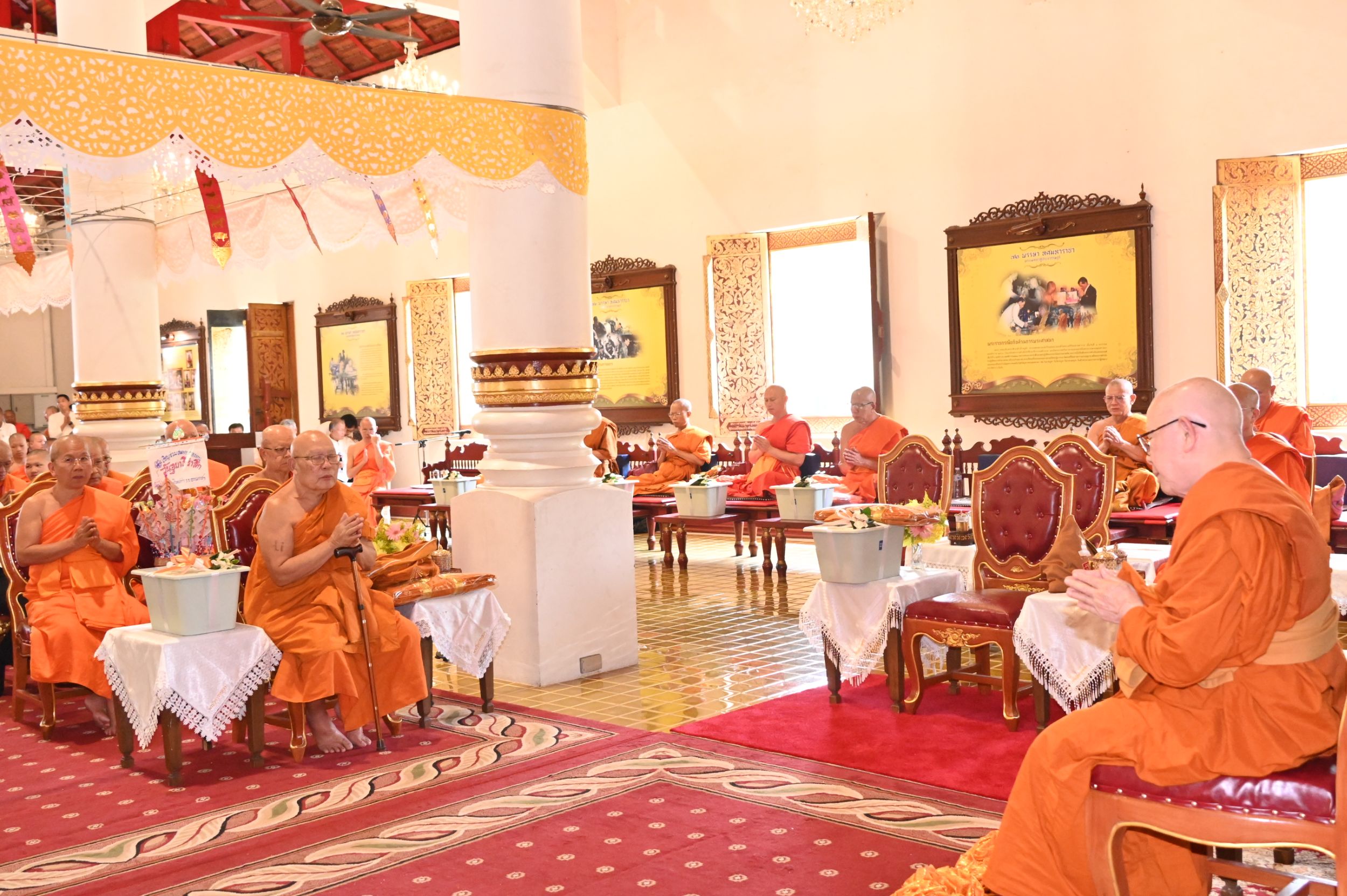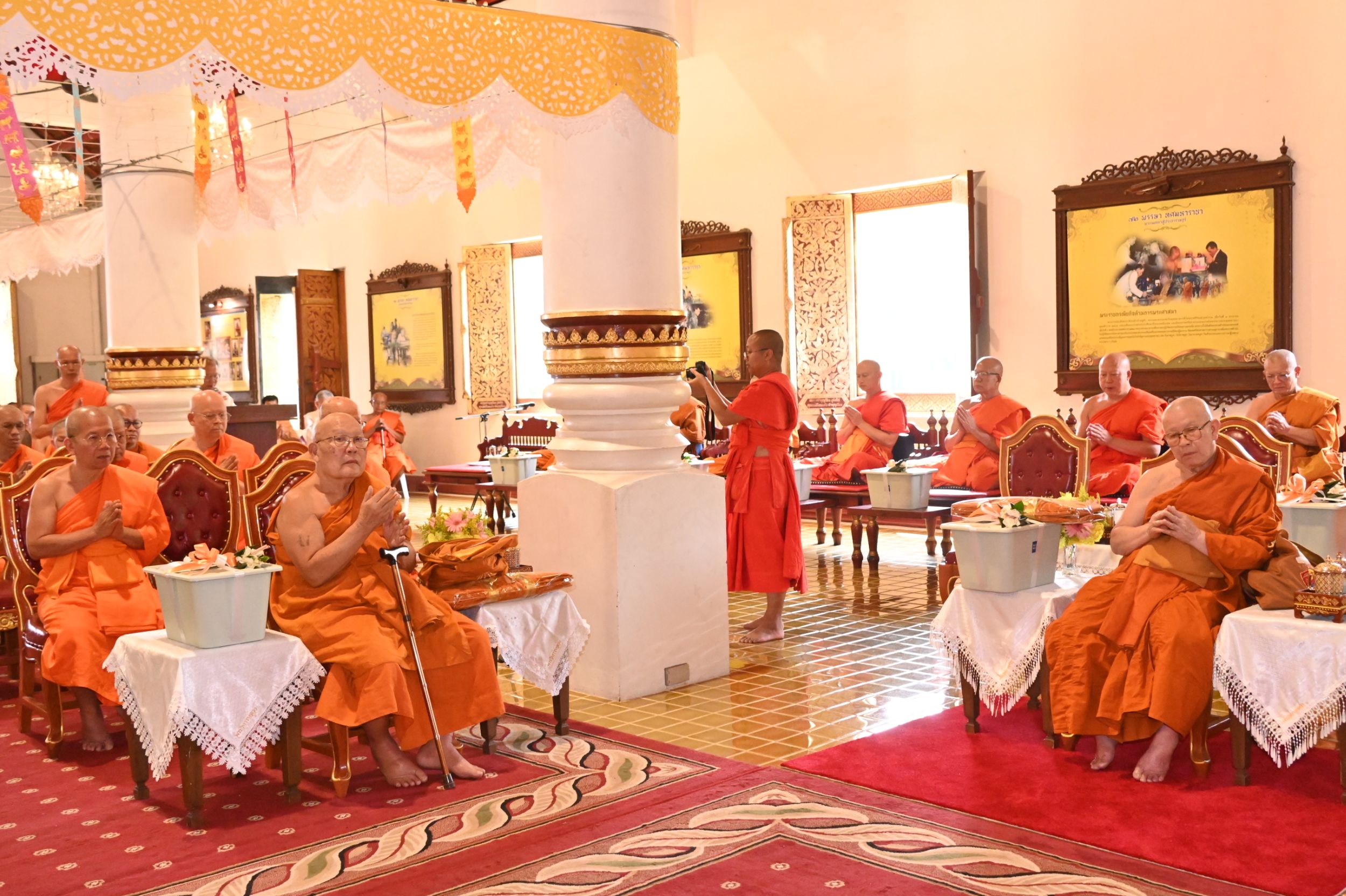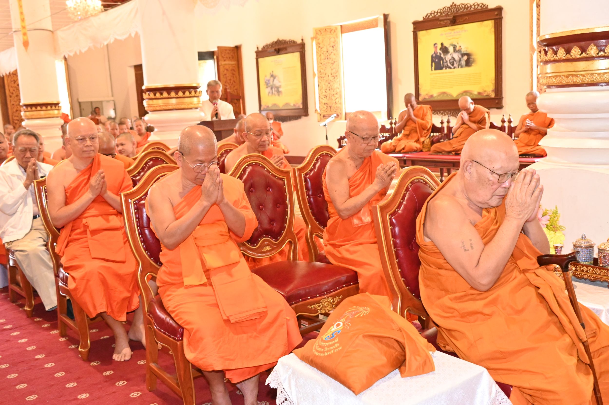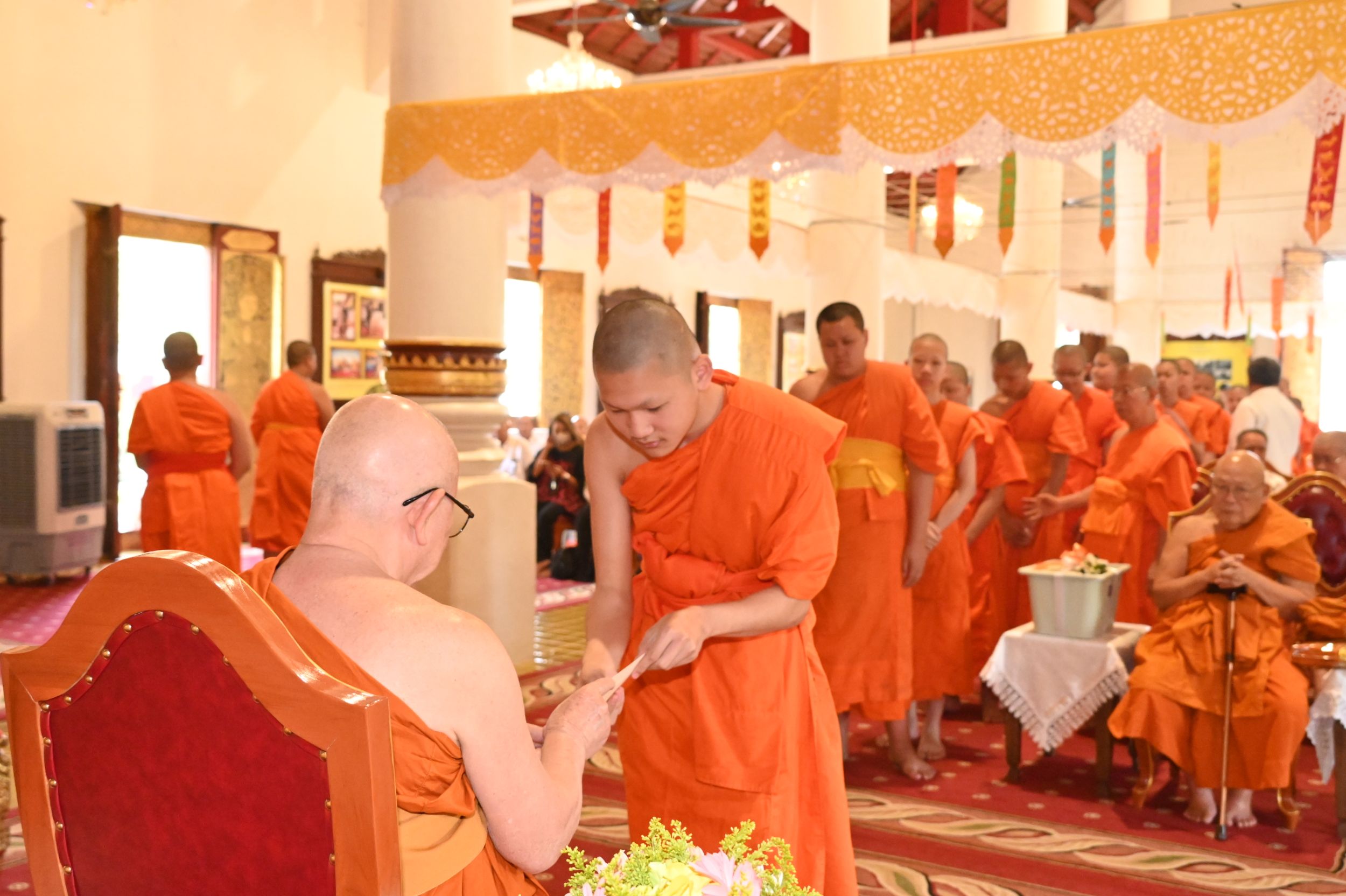 ภายในพิธีได้นิมนต์พระเถรานุเถระรวมจำนวน 20 รูป อาทิ พระเทพปริยัติ ที่ปรึกษาเจ้าคณะภาค 7 เจ้าอาวาส วัดเจ็ดยอด พระอารามหลวง, พระเทพมังคลาจารย์ เจ้าคณะจังหวัดเชียงใหม่ เจ้าอาวาส วัดท่าตอน พระอารามหลวง, พระราชโพธิวรคุณ, ดร. ที่ปรึกษาเจ้าคณะภาค 7 เจ้าอาวาส วัดดอยสะเก็ด พระอารามหลวง, พระสุวรรณเมธี, ดร. รองเจ้าคณะจังหวัดเชียงใหม่ เจ้าอาวาส วัดพระธาตุศรีจอมทอง วรวิหาร และ พระวิมลมุนี, ดร. รองเจ้าคณะจังหวัดเชียงใหม่ ผู้ช่วยเจ้าอาวาส วัดศรีโสดา พระอารามหลวง พร้อมพระเถรานุเถระร่วมประกอบพิธี