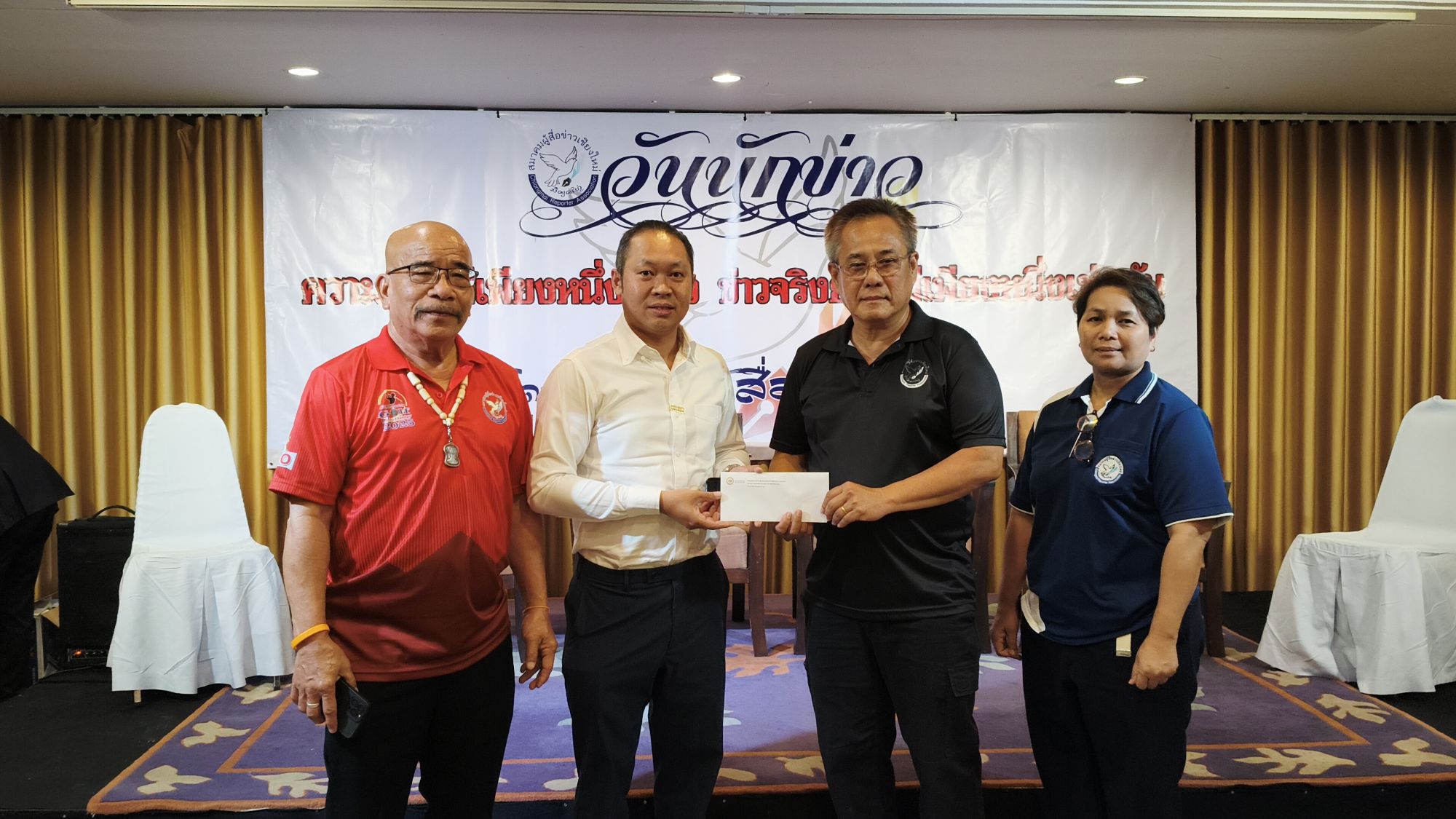 บรรยากาศภายในงานนอกจากจะเป็นการแลกเปลี่ยนข้อมูลเชิงนโยบายเพื่อเตรียมความพร้อมเข้าสู่ช่วงวิกฤตฝุ่นในอีก 2 เดือนข้างหน้าแล้ว สมาคมฯ ยังได้จัดกิจกรรม “ม่วนงันหมู่เฮา คนข่าวเจียงใหม่” เพื่อสร้างความเข้มแข็งและสามัคคีในกลุ่มสื่อมวลชนท้องถิ่น โดยมีไฮไลต์สำคัญคือการมอบทุนสนับสนุนการศึกษาให้แก่บุตรธิดาของสมาชิกผู้สื่อข่าวเชียงใหม่จำนวน 20 ทุน เพื่อเป็นการช่วยเหลือสวัสดิการและสร้างขวัญกำลังใจให้กับครอบครัวคนข่าว
