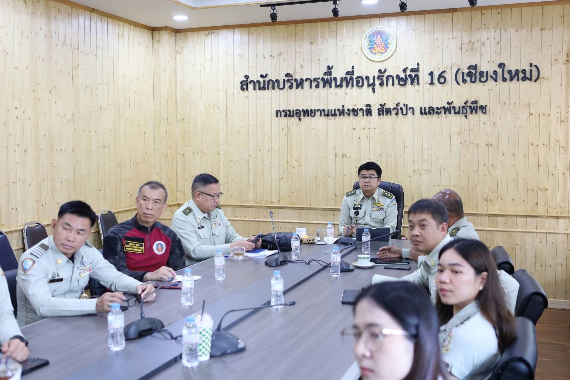 วันที่ 9 มีนาคม 2569 นายกริชสยาม คงสตรี ผู้อำนวยการสำนักบริหารพื้นที่อนุรักษ์ที่ 16 พร้อมด้วยคณะผู้อำนวยการส่วน หัวหน้าสถานีไฟป่า และหัวหน้าหน่วยงานสนาม เข้าร่วม ประชุมติดตามสถานการณ์ไฟป่าของ 14 กลุ่มป่าทั่วประเทศ ณ ห้องประชุมขุนดง สำนักบริหารพื้นที่อนุรักษ์ที่ 16 (เชียงใหม่) ผ่านระบบประชุมออนไลน์ (Zoom) จากกระทรวงทรัพยากรธรรมชาติและสิ่งแวดล้อม โดยมี นายสุชาติ ชมกลิ่น รองนายกรัฐมนตรี และรัฐมนตรีว่าการกระทรวงทรัพยากรธรรมชาติและสิ่งแวดล้อม เป็นประธานการประชุม พร้อมด้วย ดร.รวีวรรณ ภูริเดช ปลัดกระทรวงฯ อธิบดีกรมอุทยานแห่งชาติฯ กรมป่าไม้ สำนักงานทรัพยากรธรรมชาติและสิ่งแวดล้อมจังหวัด กรมควบคุมมลพิษ ผู้บริหารระดับสูง หัวหน้า/คณะทำงานในพื้นที่ 14 กลุ่มป่าฯ และสภาลมหายใจ เข้าร่วมการประชุม และรายงานสถานการณ์ในพื้นที่รับผิดชอบ พร้อมทั้งร่วมหารือ เพื่อแนะนำแนวทาง และเตรียมกำลังรับมือสถานการณ์ในพื้นที่จุดเสี่ยงของแต่ละกลุ่มป่า ให้บูรณาการป้องกันแบบไร้รอยต่อ เพื่อลดความรุนแรงจากการเกิดไฟป่า ต่อไป.