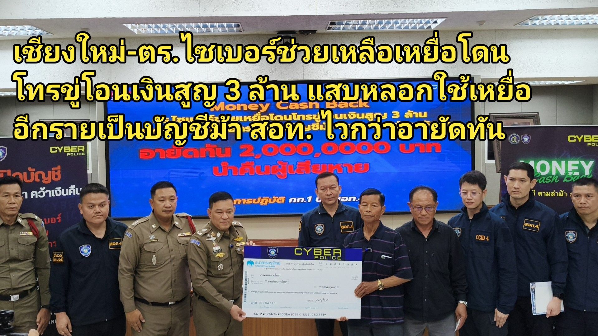 (มีคลิป) เชียงใหม่-ตร.ไซเบอร์ช่วยเหลือเหยื่อโดนโทรขู่โอนเงินสูญ 3 ล้าน แสบหลอกใช้เหยื่ออีกรายเป็นบัญชีม้า สอท. ไวกว่าอายัดทัน