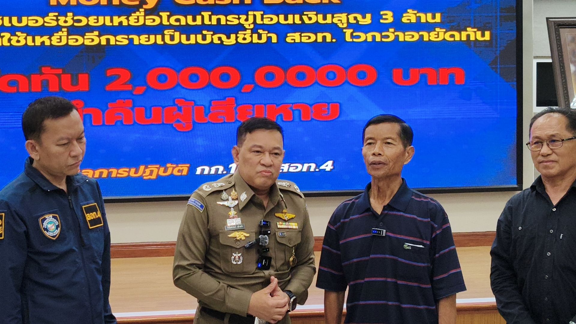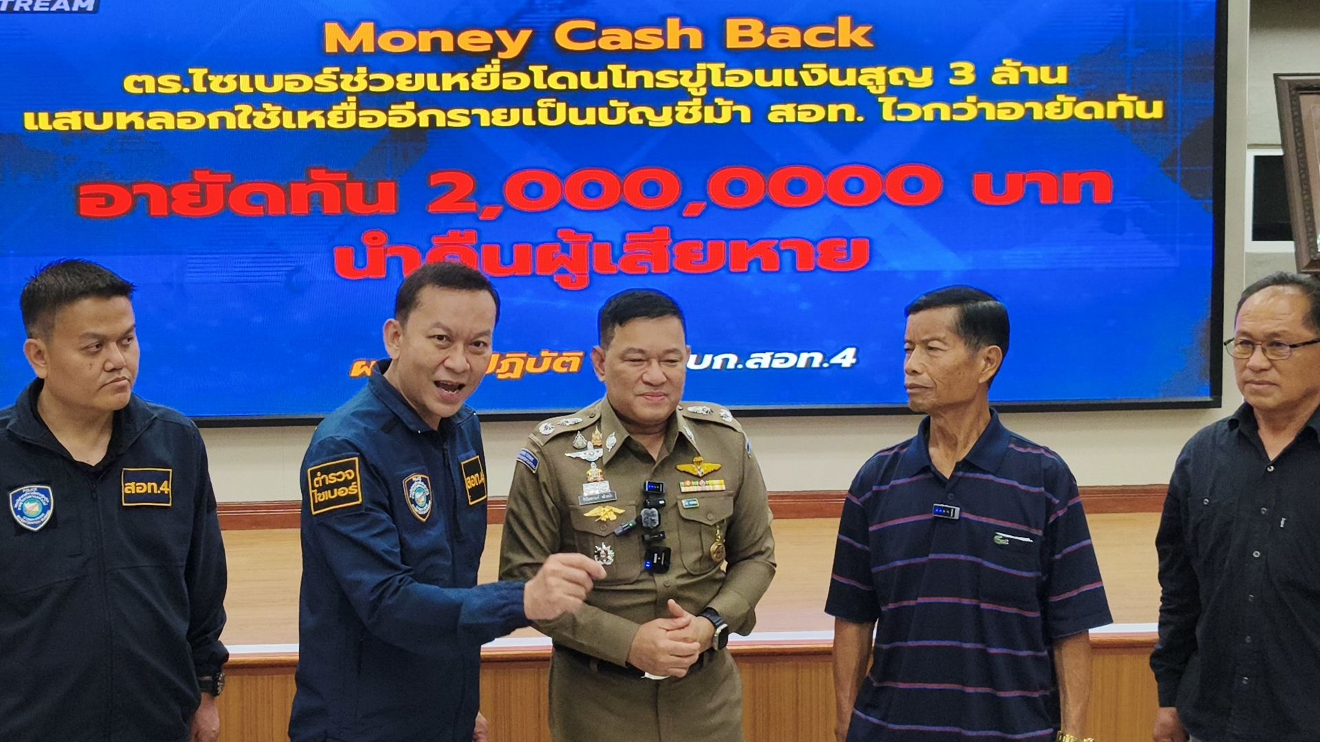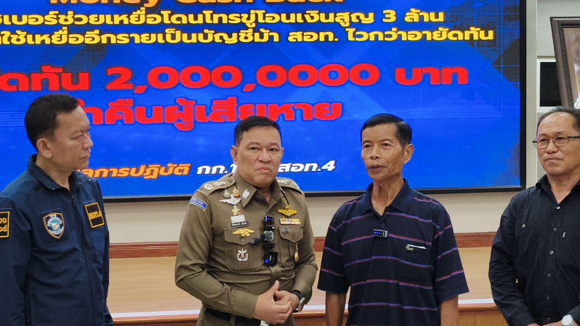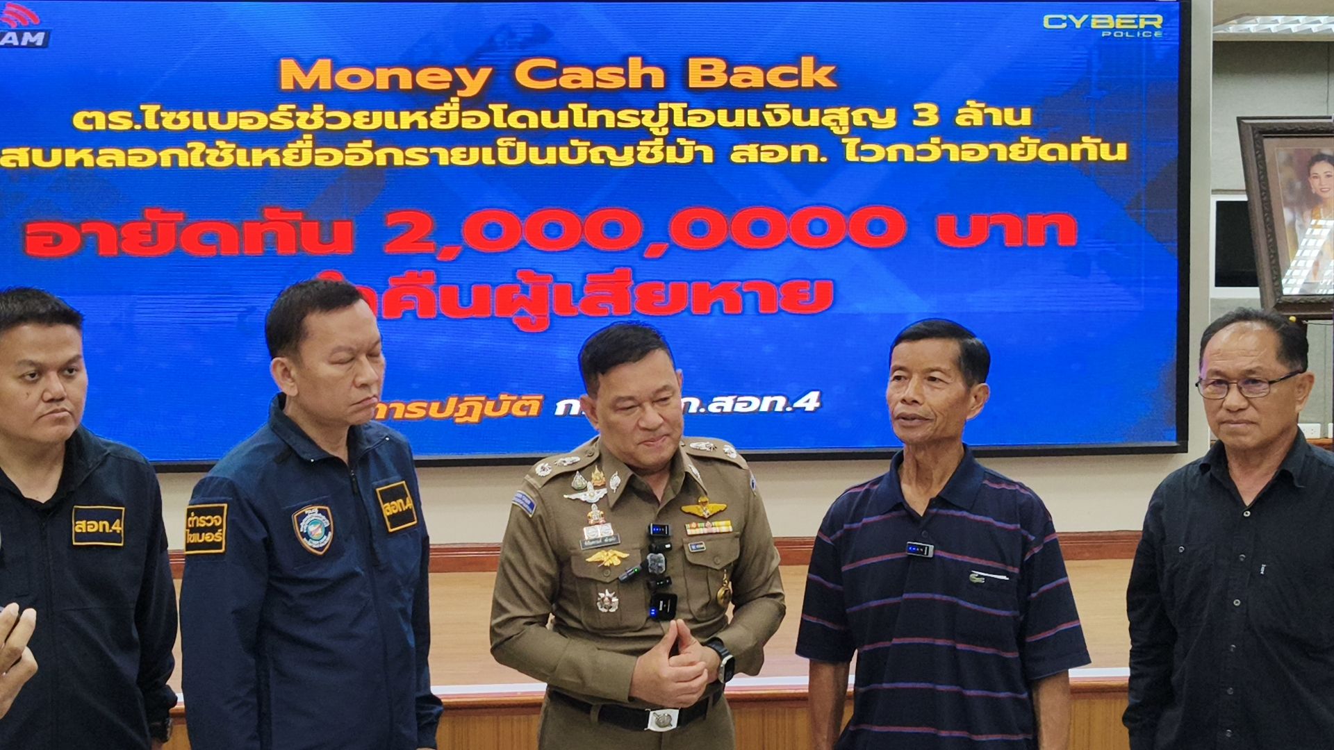 โดยวันนี้ พล.ต.ต.ชัชปัณฑกาณฑ์ คล้ายคลึง รอง ผบช.สอท. พร้อมเจ้าหน้าที่ตำรวจชุดติดตามคดี จึงได้ร่วมกันนำเงินจำนวน 2,000,000 บาท คืนให้แก่ผู้เสียหาย ตามโครงการ “MONEY Cash Back ปิดบัญชี ตามล่าม้า คว้าเงินคืน” ณ บก.สอท.4 อ.แม่ริม จ.เชียงใหม่.