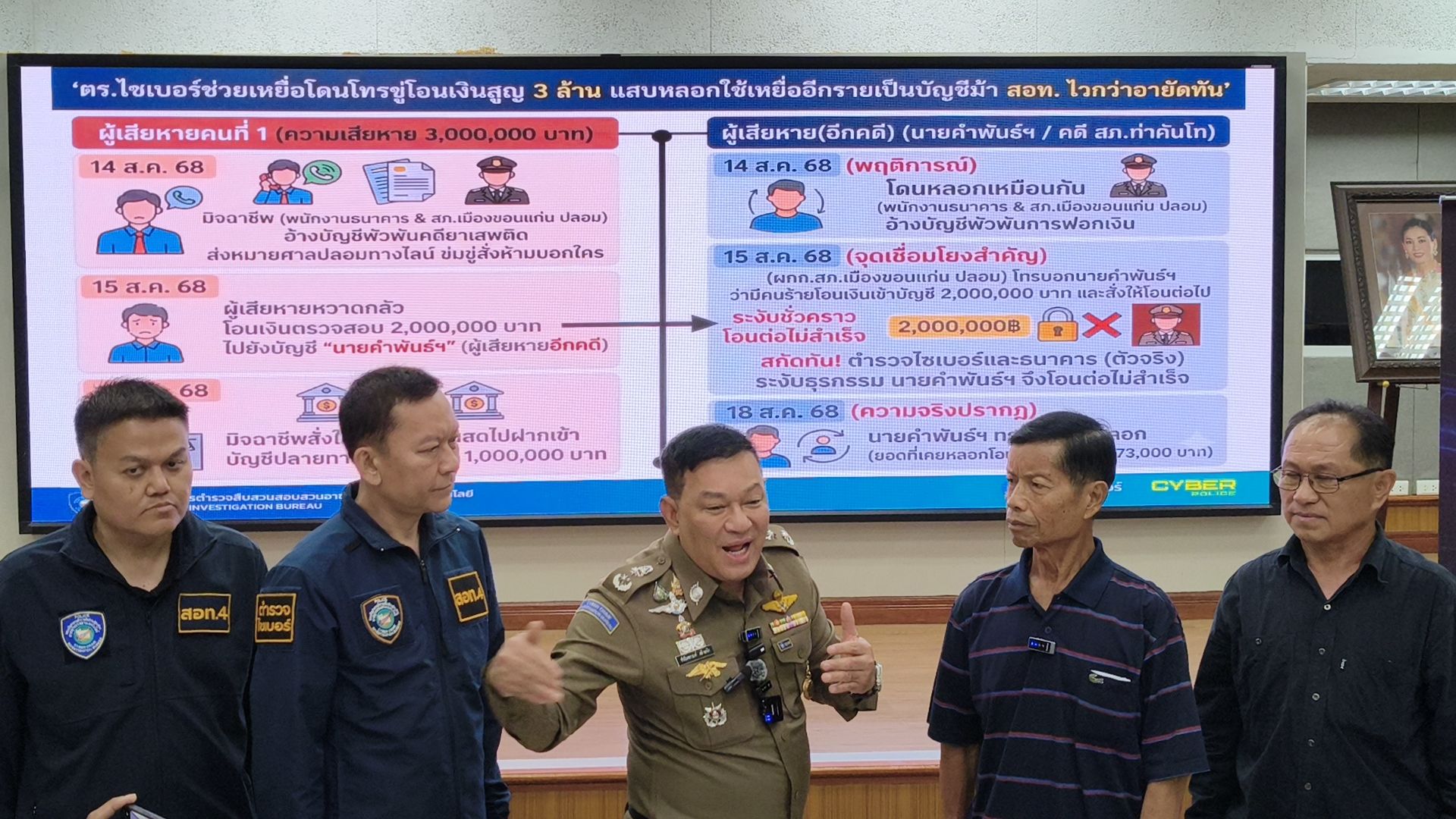 ตร.ไซเบอร์ช่วยเหลือเหยื่อโดนโทรขู่โอนเงินสูญ 3 ล้าน แสบหลอกใช้เหยื่ออีกรายเป็นบัญชีม้า สอท. ไวกว่าอายัดทัน