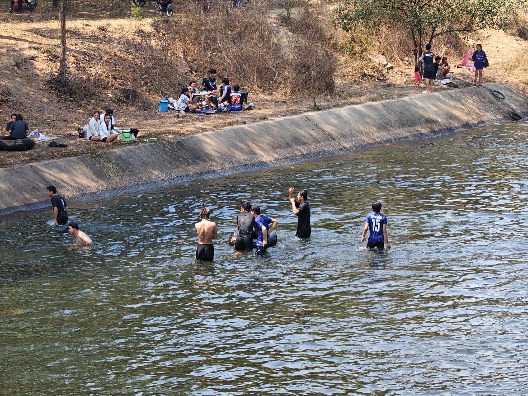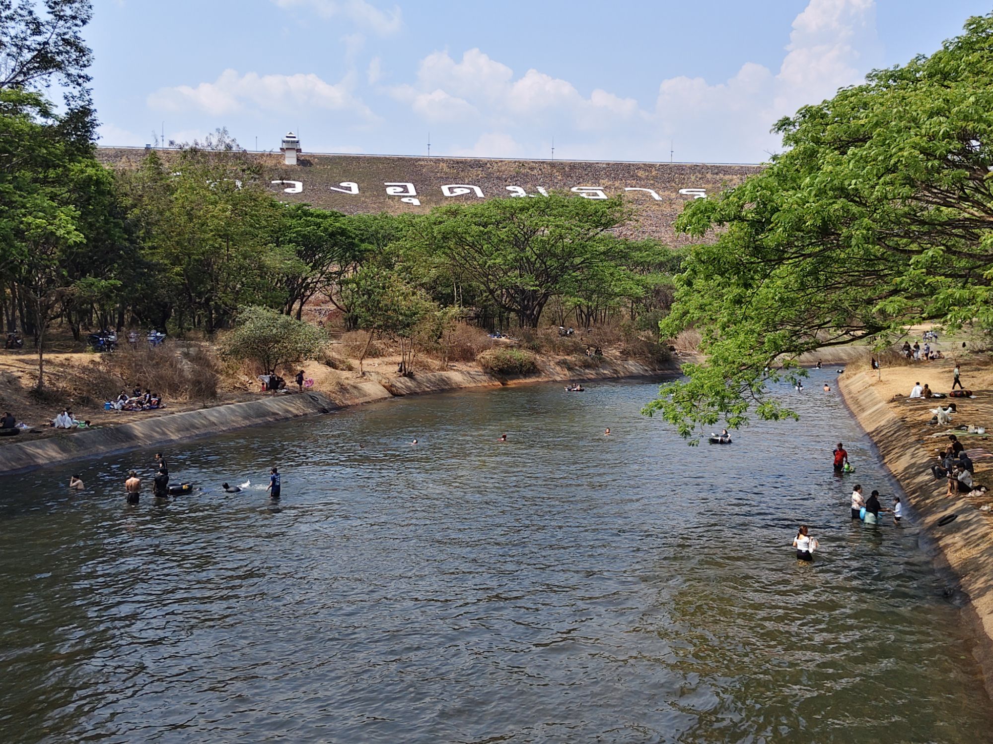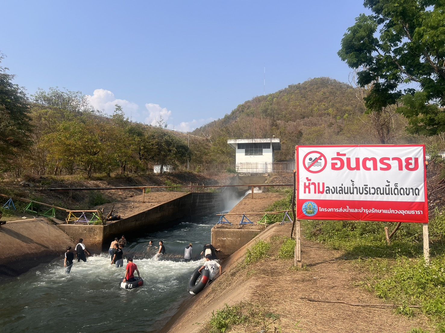 สำหรับพื้นที่ที่น่าเป็นห่วงคือบริเวณใกล้ท้ายเขื่อนซึ่งกระแสน้ำไหลแรงและหมุนวนเป็นอันตรายมาก เราได้ติดตั้งป้ายเตือนและไม้กั้นห้ามลงเล่นน้ำโดยเด็ดขาด พร้อมจัดเจ้าหน้าที่หมุนเวียนประชาสัมพันธ์แจ้งเตือนอย่างต่อเนื่อง จึงอยากฝากถึงพี่น้องประชาชนที่มาเล่นน้ำคลายร้อนให้ช่วยกันรักษาความสะอาด ปฏิบัติตามกฎในพื้นที่ผ่อนผัน และขอความกรุณาอย่าก่อเหตุทะเลาะวิวาท เพื่อให้ทุกคนได้พักผ่อนอย่างสนุกสนานและปลอดภัยร่วมกัน นายเฉลิมเกียรติ กล่าวในที่สุด.