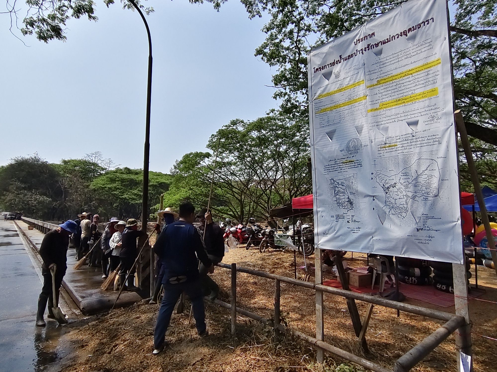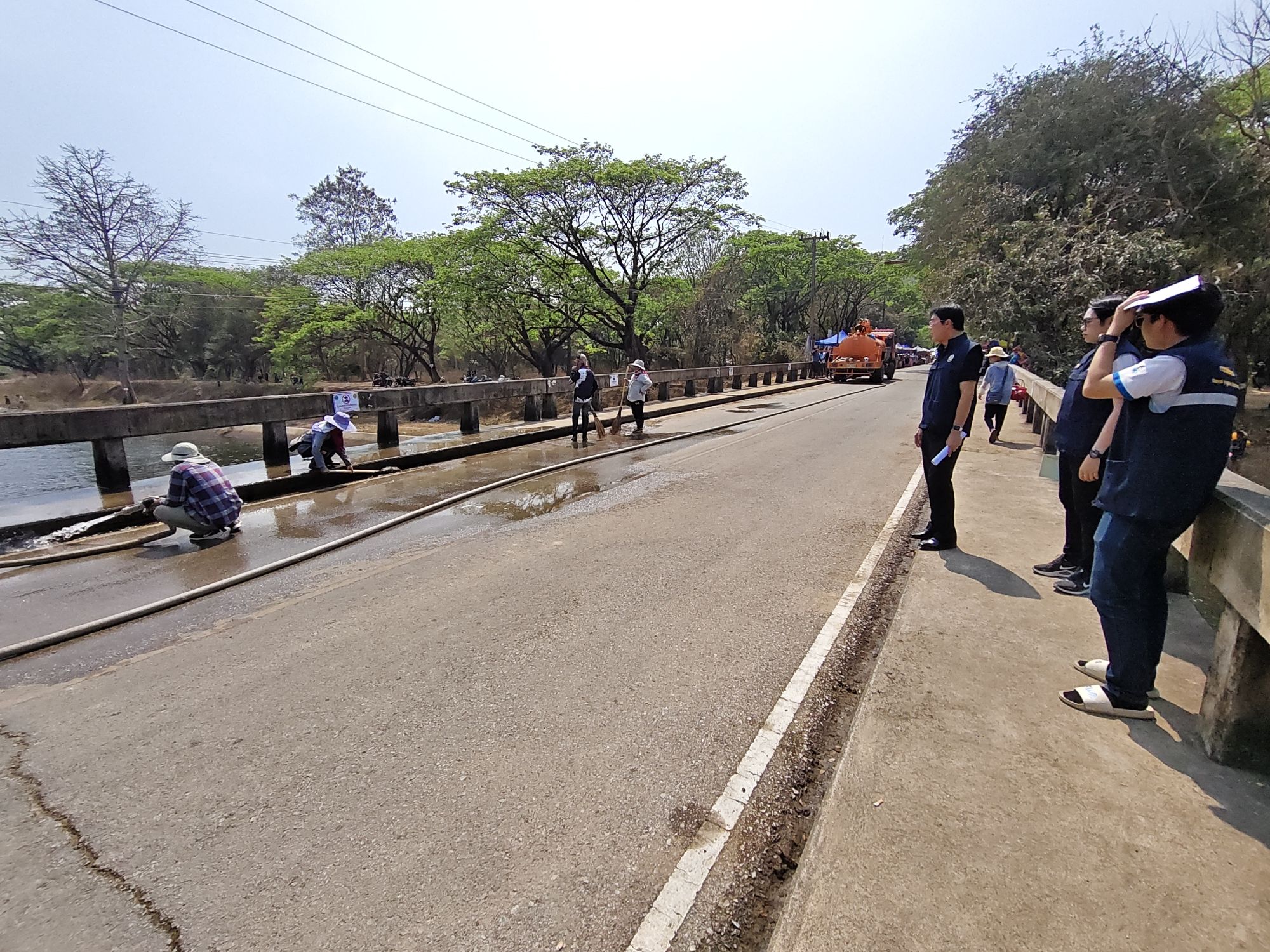 เชียงใหม่ – วันที่ 10 มี.ค. 2569 นายเฉลิมเกียรติ อินทกนก ผู้อำนวยการโครงการส่งน้ำและบำรุงรักษาแม่กวงอุดมธารา พร้อมด้วยเจ้าหน้าที่ชลประทานฯ ลงพื้นที่บริเวณท้ายเขื่อนแม่กวงอุดมธารา เพื่อตรวจความเรียบร้อยบริเวณคลองส่งน้ำและพื้นที่ใกล้เคียงทั้ง 2 ฝั่งคลอง เนื่องจากปัจจุบันมีประชาชนให้ความสนใจพากันมาเล่นน้ำคลายร้อนเป็นจำนวนมาก รวมถึงบรรดาพ่อค้าแม่ค้าในพื้นที่ใกล้เคียงที่เข้ามาตั้งวางขายอาหาร เครื่องดื่ม เปิดให้เช่าห่วงยางและเสื่อปูนั่ง โดยเจ้าหน้าที่ได้นำรถบรรทุกน้ำมาฉีดล้างบริเวณสะพานข้ามคลองส่งน้ำ พร้อมนำไม้กั้นมาติดตั้งบริเวณจุดอันตรายใกล้ปากอุโมงค์ระบายน้ำเขื่อนแม่กวง และติดป้ายประกาศชัดเจน “เขตอันตราย ห้ามเล่นน้ำเด็ดขาด”
