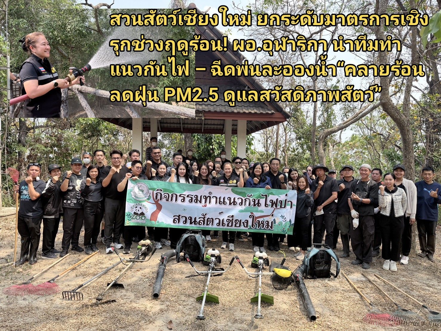 สวนสัตว์เชียงใหม่ ยกระดับมาตรการเชิงรุกช่วงฤดูร้อน! ผอ.อุฬาริกา นำทีมทำแนวกันไฟ – ฉีดพ่นละอองน้ำ“คลายร้อน ลดฝุ่น PM2.5 ดูแลสวัสดิภาพสัตว์”