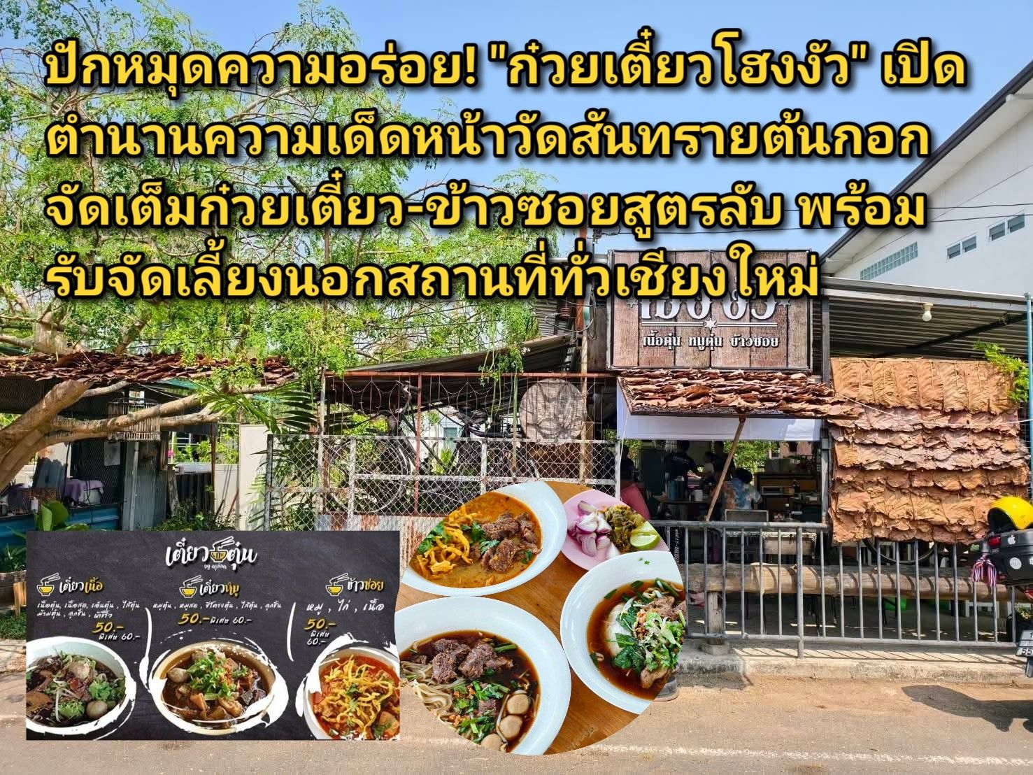 ปักหมุดความอร่อย! “ก๋วยเตี๋ยวโฮงงัว” เปิดตำนานความเด็ดหน้าวัดสันทรายต้นกอก จัดเต็มก๋วยเตี๋ยว-ข้าวซอยสูตรลับ พร้อมรับจัดเลี้ยงนอกสถานที่ทั่วเชียงใหม่