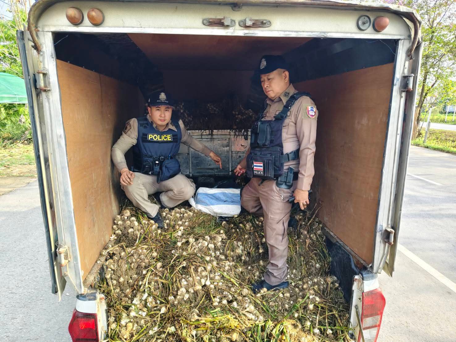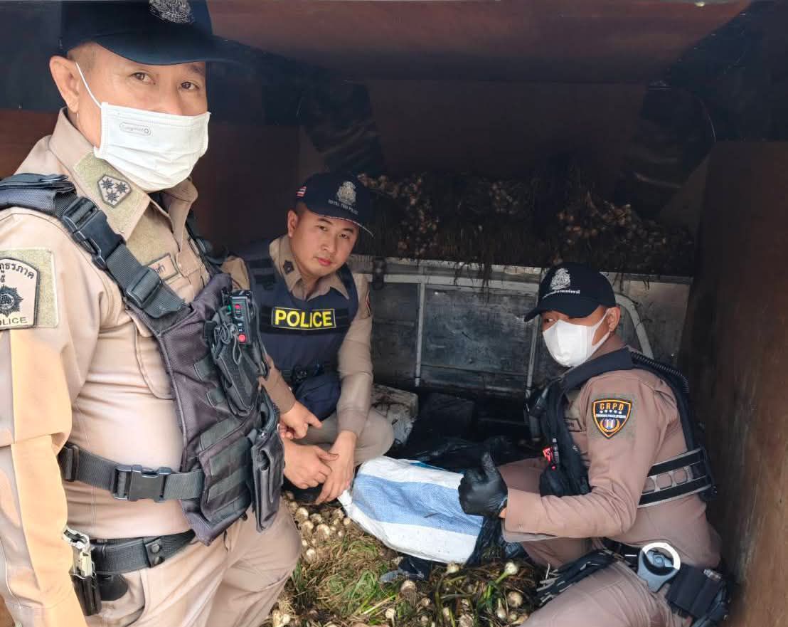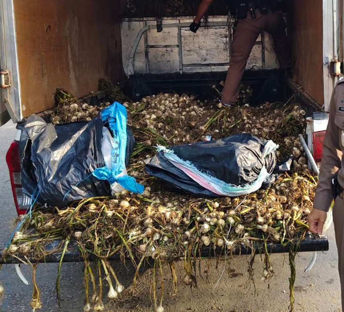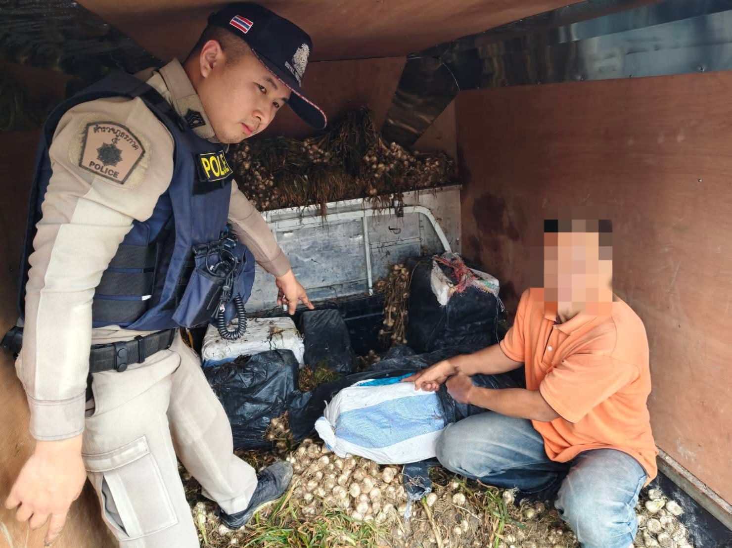 เชียงราย-รวบหนุ่มมีนบุรีซุก “ยาบ้า 2 ล้านเม็ด” ใต้กองกระเทียมสด หวังใช้กลิ่นฉุนอำพรางด่านปูแกง