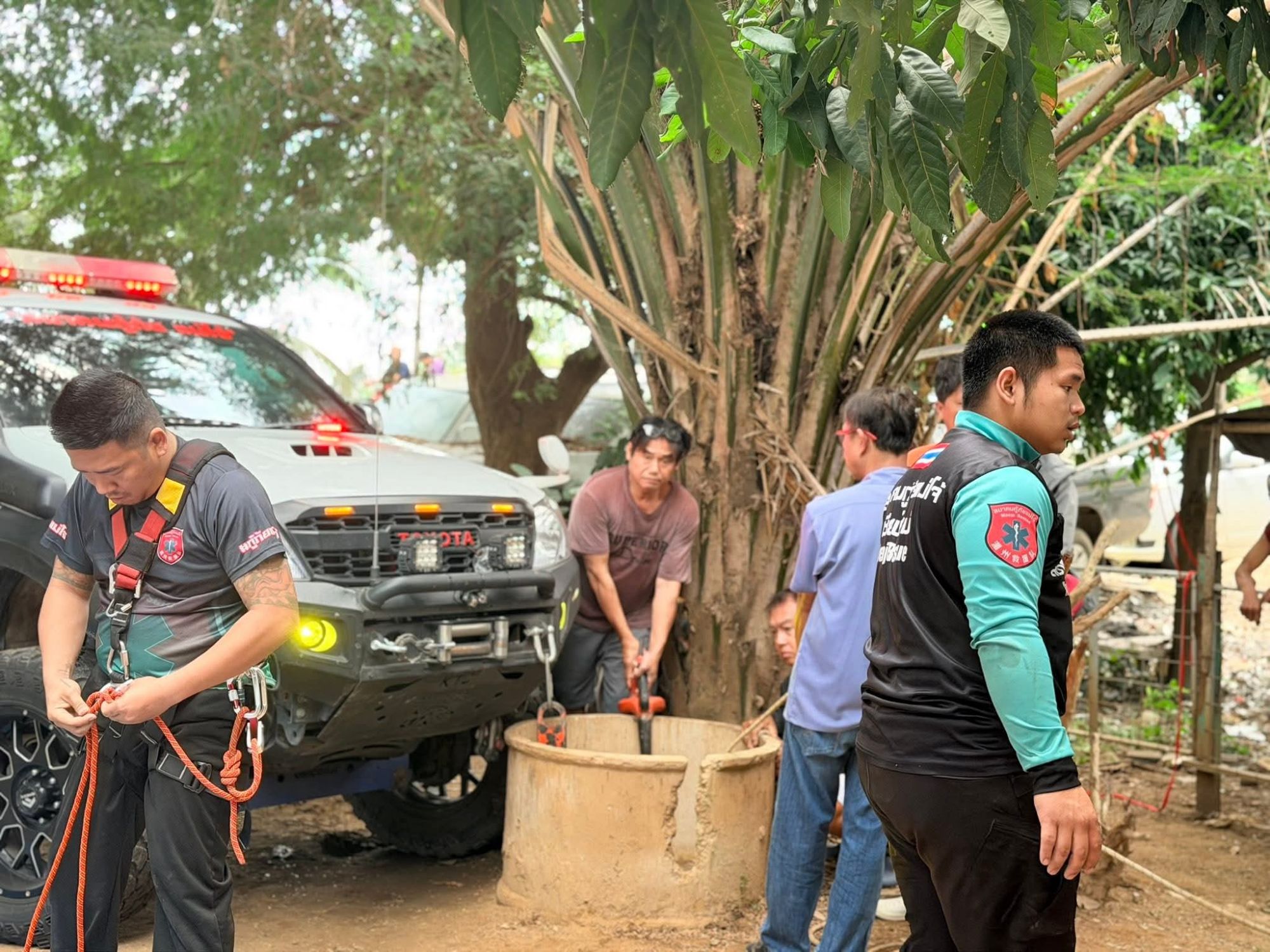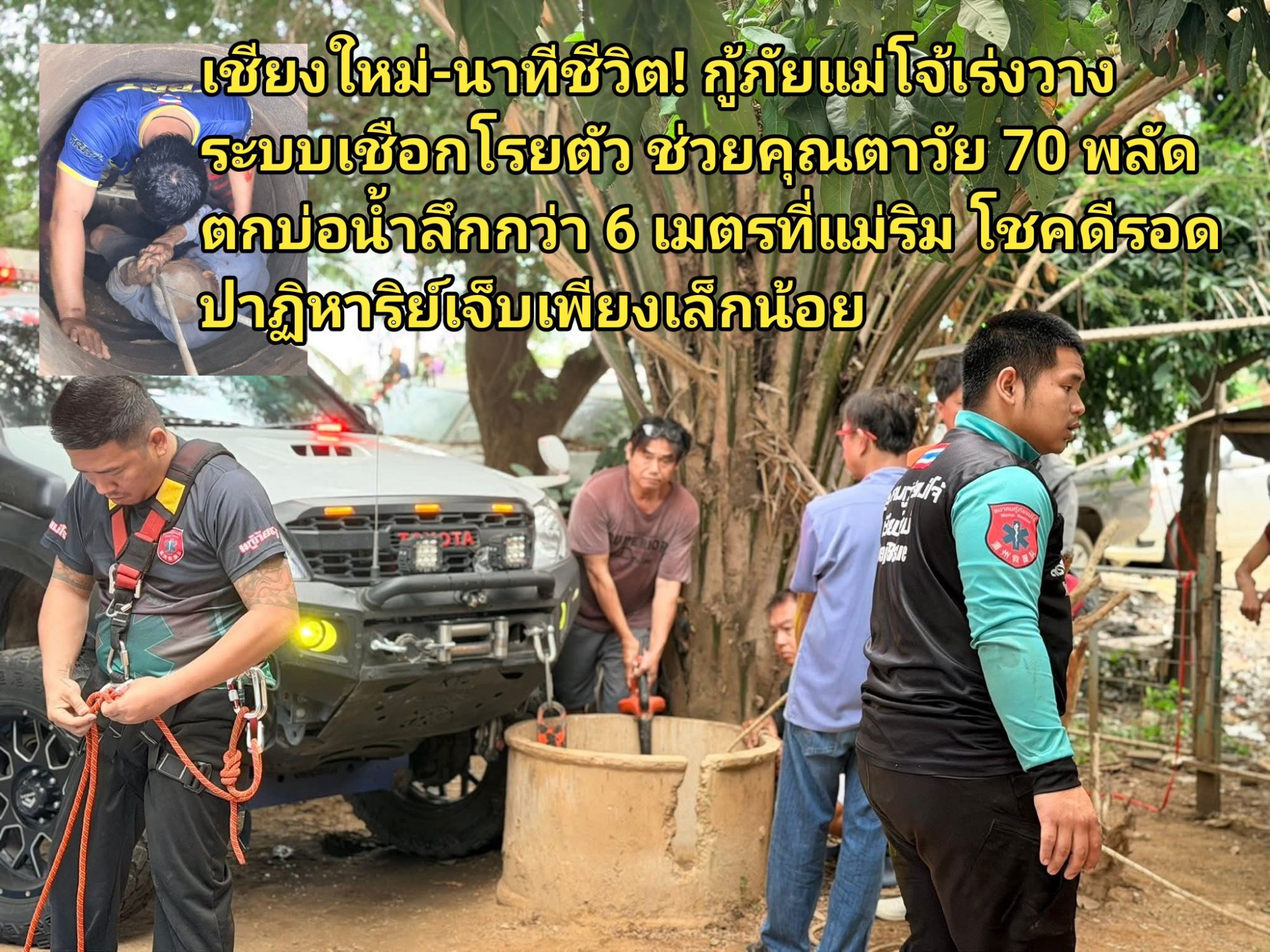 เชียงใหม่-นาทีชีวิต! กู้ภัยแม่โจ้เร่งวางระบบเชือกโรยตัว ช่วยคุณตาวัย 70 พลัดตกบ่อน้ำลึกกว่า 6 เมตรที่แม่ริม โชคดีรอดปาฏิหาริย์เจ็บเพียงเล็กน้อย