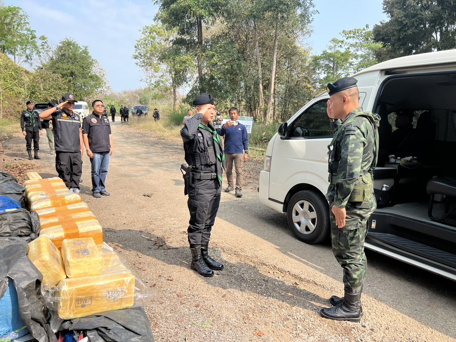 และเมื่อเวลา 10.30 น. พลตรี สาธิต ไวยนนท์ ผู้บัญชาการกองกำลังผาเมือง/ผู้อำนวยการศูนย์ปฏิบัติการป้องกันและปราบปรามยาเสพติดกองกำลังผาเมือง มอบให้ พันเอก ธวัฒน์ อินกอง รองผู้บังคับการหน่วยเฉพาะกิจทัพเจ้าตาก เป็นผู้แทน ร่วมกับหน่วยงานที่เกี่ยวข้อง ลงพื้นที่เพื่อแถลงข่าวการตรวจยึดยาเสพติดจำนวนดังกล่าว หลังจากนั้นจึงได้นำของกลางทั้งหมดส่งให้กับ สถานีตำรวจภูธรแม่จัน เพื่อดำเนินการตามกฎหมายต่อไป