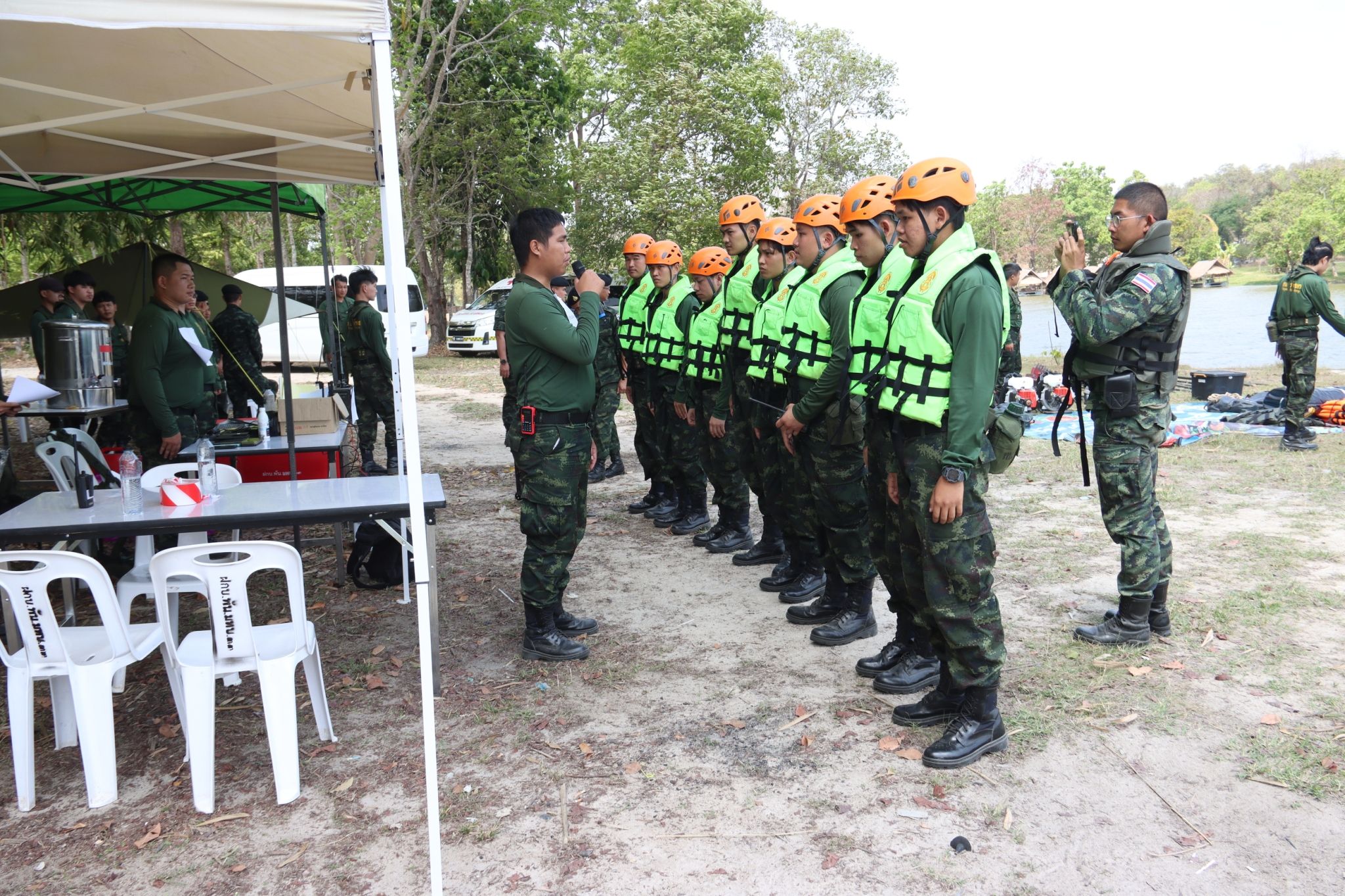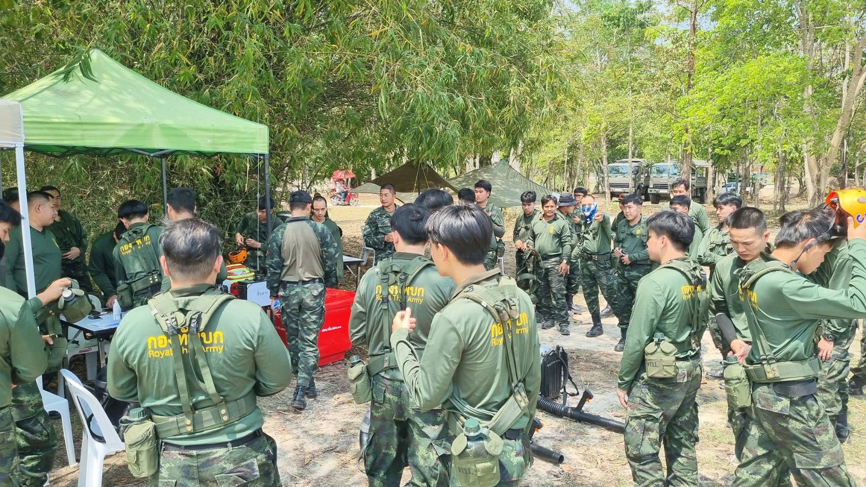 หน่วยทหารจัดการฝึกกำลังพลสำรอง (กสร.) บัญชี 2/68 ประจำปี 2569 เดินหน้าฝึกภาคสนามอย่างเข้มข้น ในวันอาทิตย์ที่ 15 มีนาคม 2569 ณ พื้นที่ฝึกโครงการจัดหมู่บ้านตัวอย่างห้วยตึงเฒ่า อันเนื่องมาจากพระราชดำริ (อ่างเก็บน้ำห้วยตึงเฒ่า) อำเภอแม่ริม จังหวัดเชียงใหม่ พันเอก วารินทร์ คธาพันธ์ ผู้บังคับกองพันมณฑลทหารบกที่ 33 ตรวจเยี่ยมการฝึกภาคสนามของกำลังพลสำรองฯ โดยการฝึกในครั้งนี้ มุ่งเน้นการฝึกการลาดตระเวนป้องกันและเฝ้าระวังไฟป่า การทำแนวกันไฟ และเข้าช่วยเหลือผู้ที่ได้รับบาดเจ็บ เสริมทักษะการปฏิบัติภารกิจในพื้นที่จริง
