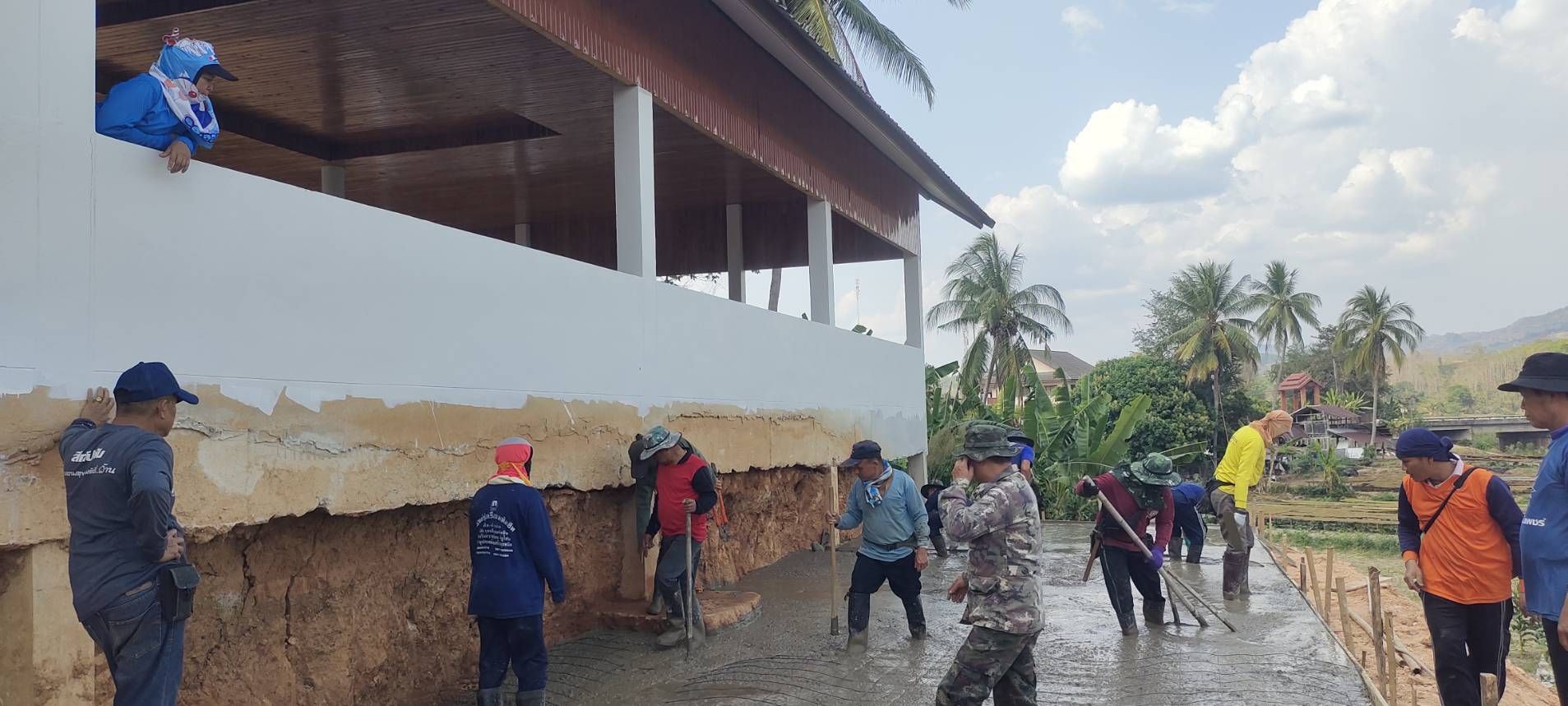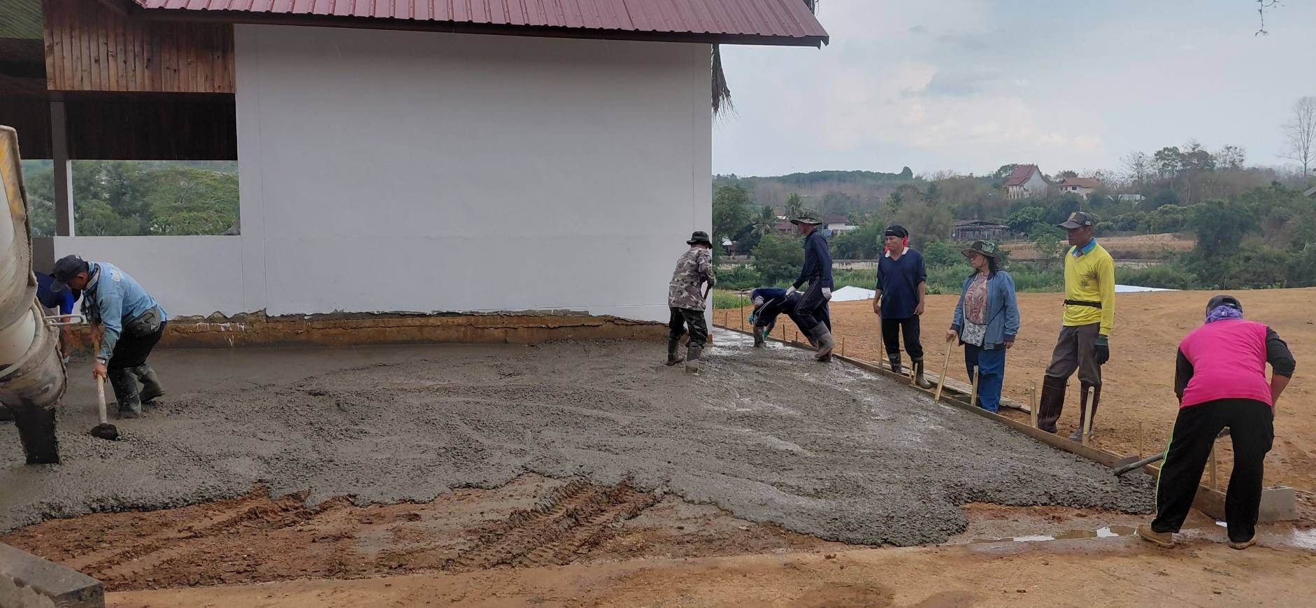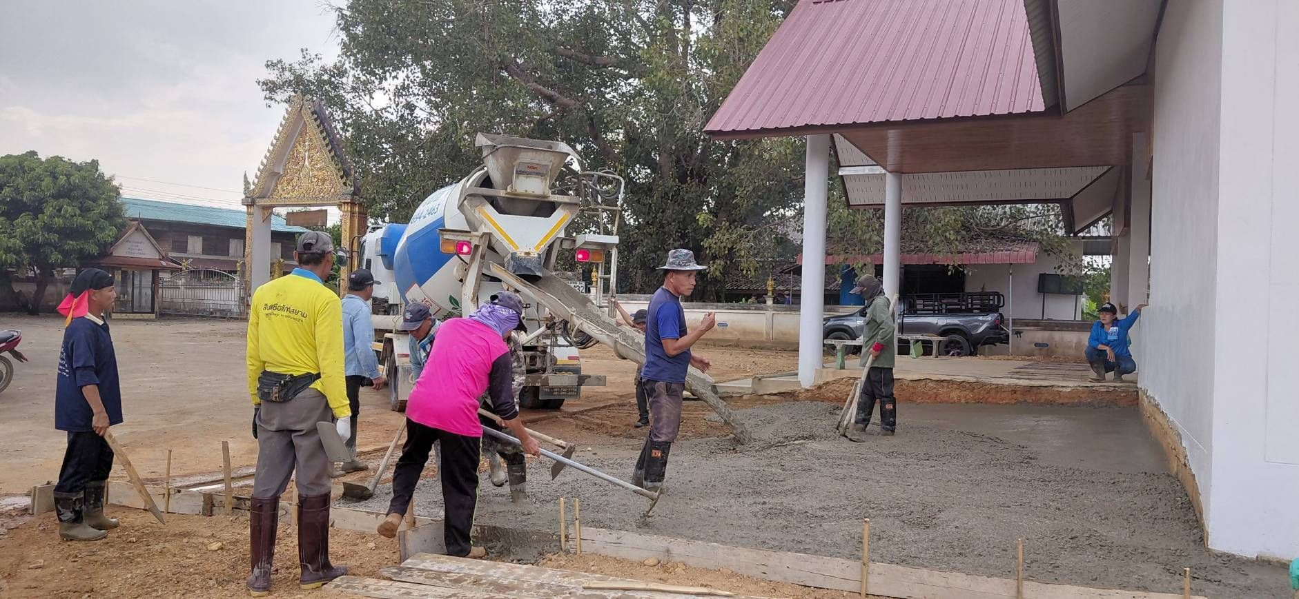 ชาวบ้านแหน ร่วมแรงช่วยเทพื้น เพื่อวัด