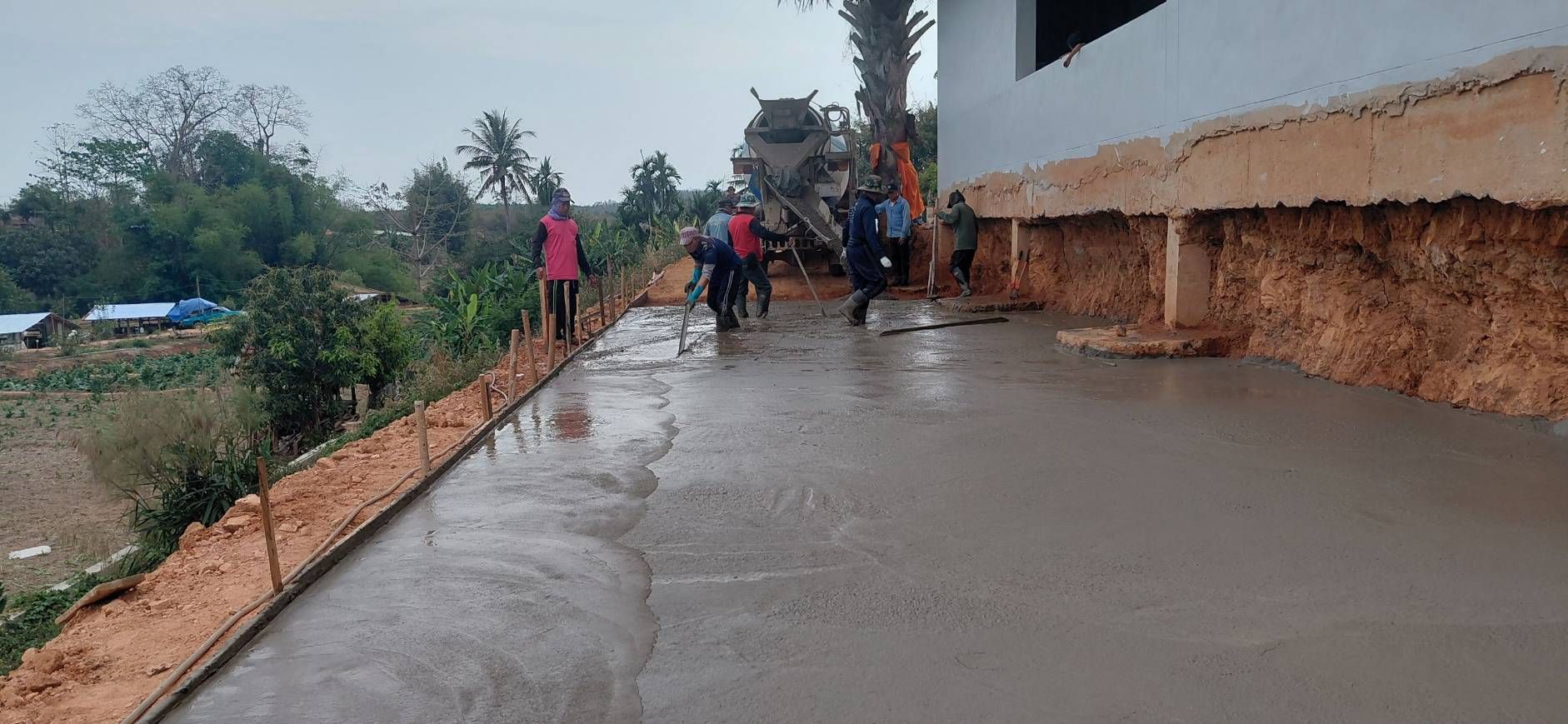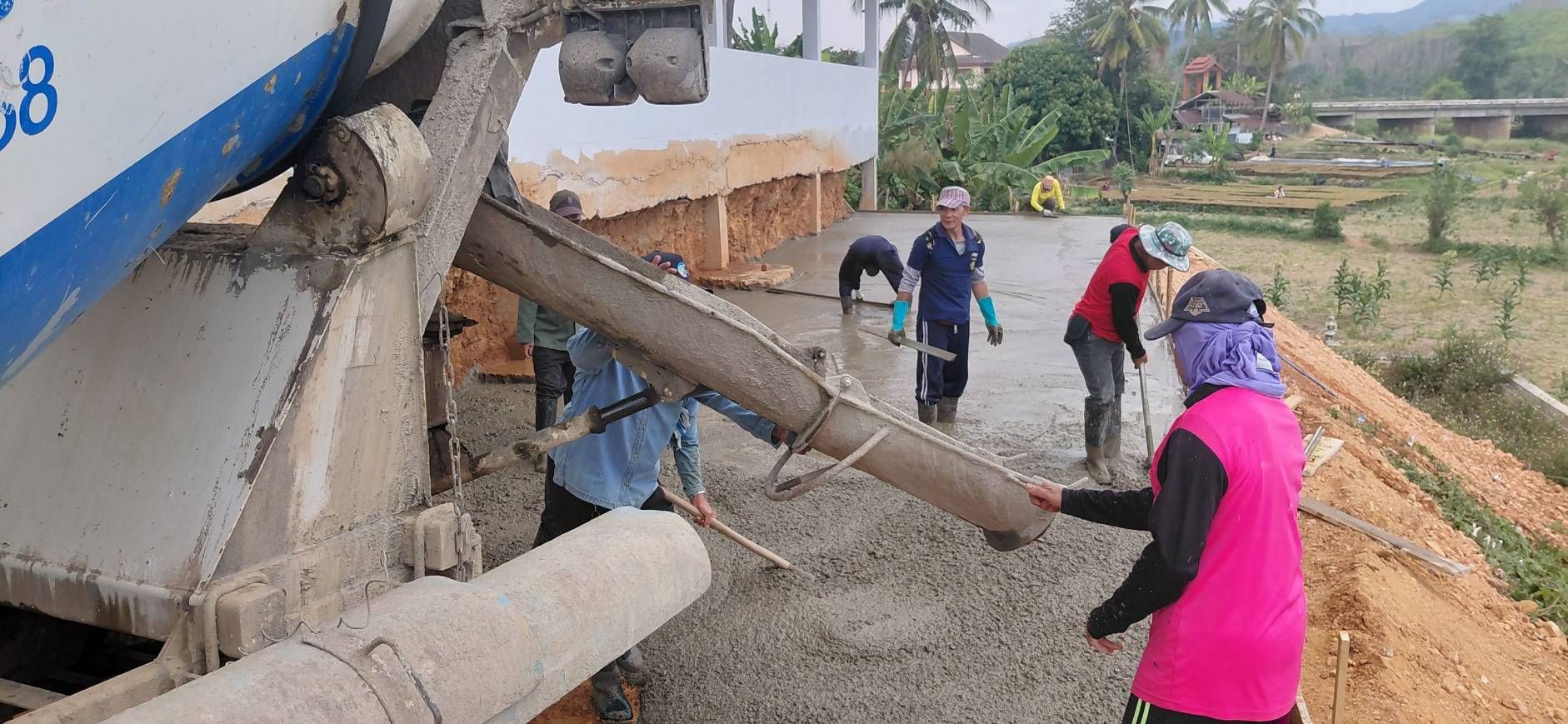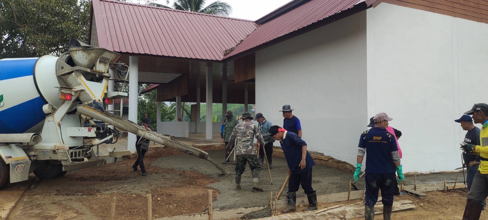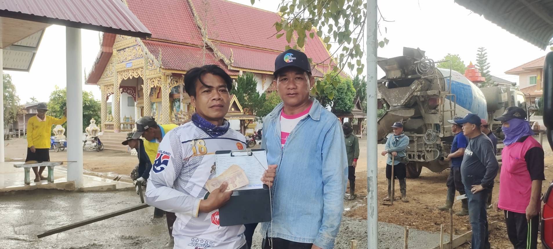 ชาวบ้านแหน ร่วมแรงช่วยเทพื้น เพื่อวัด