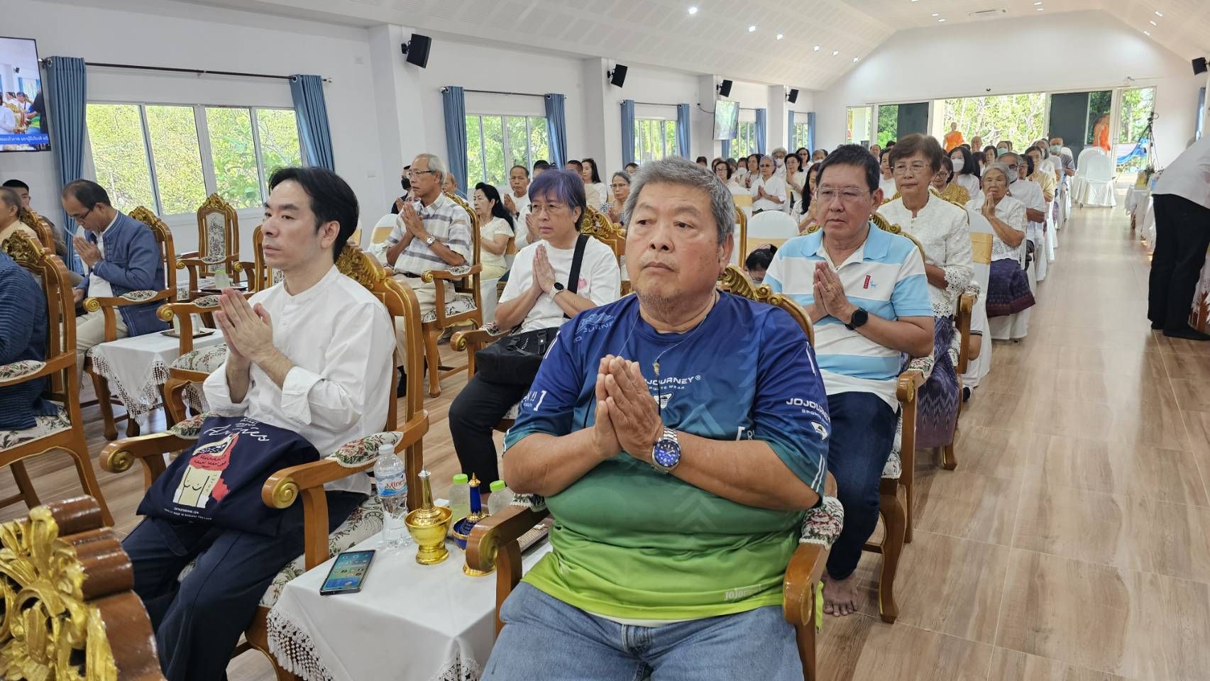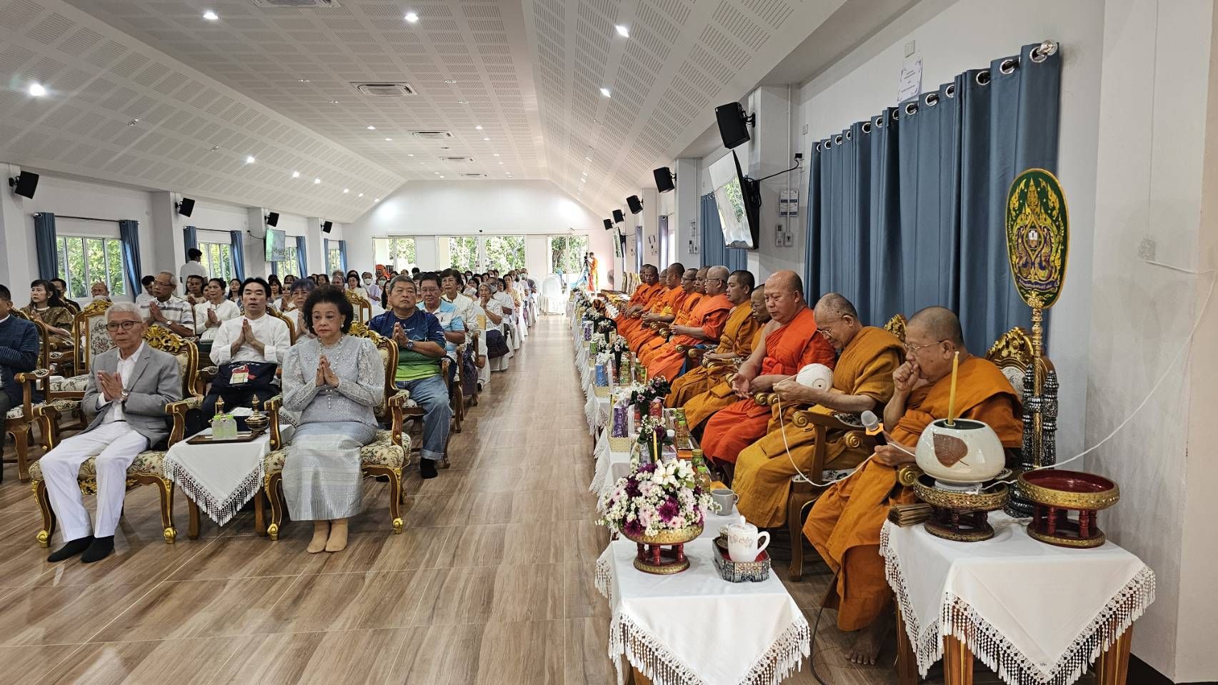 บรรยากาศภายในพิธีเป็นไปด้วยความสงบเรียบร้อยและเปี่ยมด้วยความศรัทธา โดยมีคณะเจ้าภาพ ผู้มีจิตศรัทธา ตลอดจนพุทธศาสนิกชนจากหลายพื้นที่เข้าร่วมพิธีอย่างพร้อมเพรียง เพื่อร่วมกันสืบสานพระพุทธศาสนา และร่วมอนุโมทนาบุญในพิธีสมโภชอาคารปฏิบัติธรรมในครั้งนี้