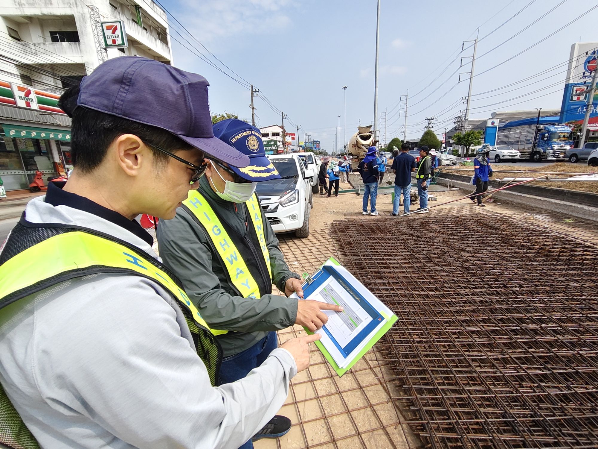 “เพื่อให้โครงการนี้ทำงานได้เร็วขึ้น เพราะมีความเป็นห่วงเรื่องระยะเวลาก่อสร้าง จึงมีการปรับแบบ ก็เพื่อให้ดำเนินการได้ไวขึ้น จึงปรับแบบมีการใช้การเทลีนคอนกรีตแทนการปรับปรุงพื้นผิวทางเดิมเนื่องจากต้องใช้เวลาในการรื้อและบดอัด ชั้นพื้นก็จะมีการการเทลีนคอนกรีตหนา 8 เซนติเมตร เสร็จแล้วพอรีนคอนกรีตเซ็ตตัว ก็จะทำผิวคอนกรีตไปเลย เพื่อลดระยะเวลาแล้วก็เพิ่มความแข็งแรง ซึ่งคอนกรีตผิวทางตลอดทั้งเส้นนี้ หนา 25 เซนติเมตร” นายสิทธาฤทธิ์ฯ กล่าว