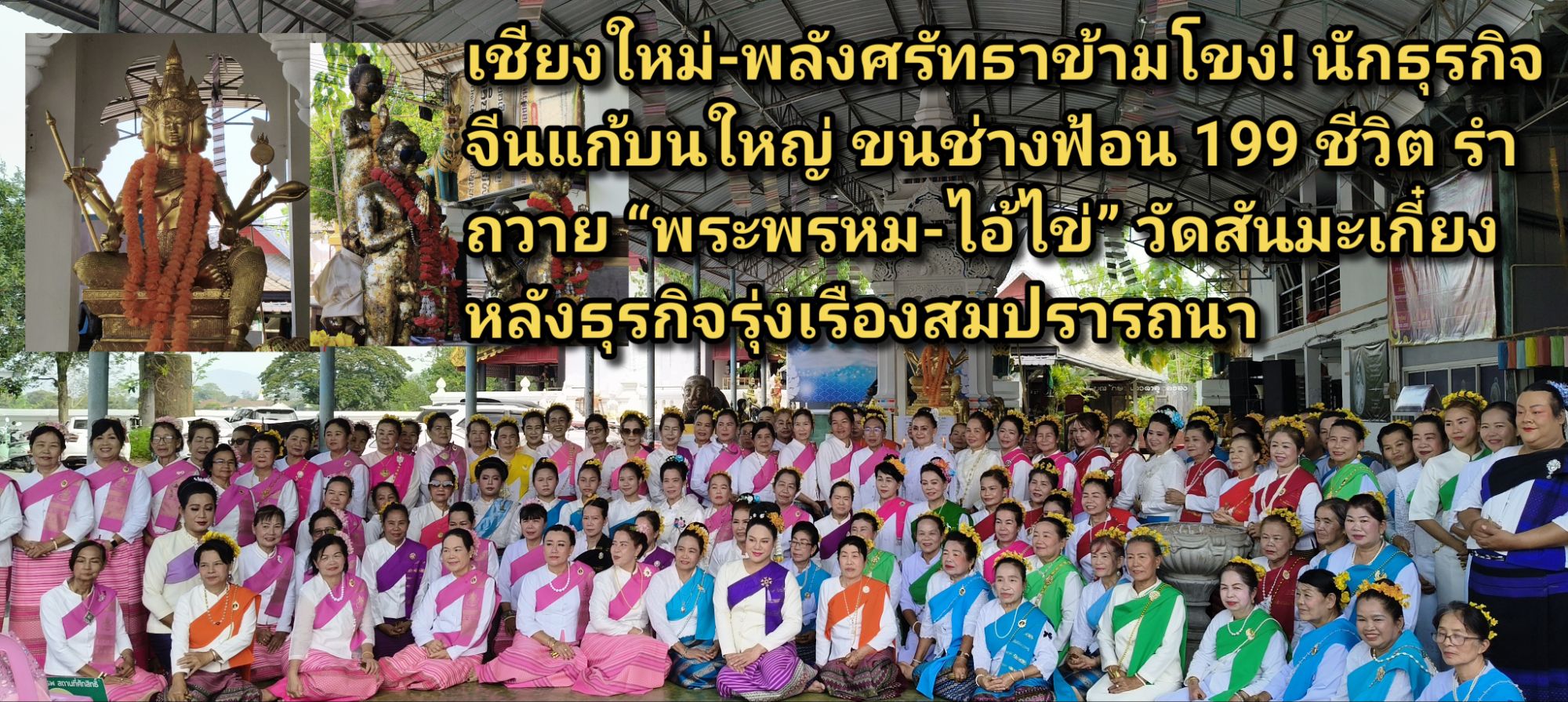 เชียงใหม่-พลังศรัทธาข้ามโขง! นักธุรกิจจีนแก้บนใหญ่ ขนช่างฟ้อน 199 ชีวิต รำถวาย “พระพรหม-ไอ้ไข่” วัดสันมะเกี๋ยง หลังธุรกิจรุ่งเรืองสมปรารถนา