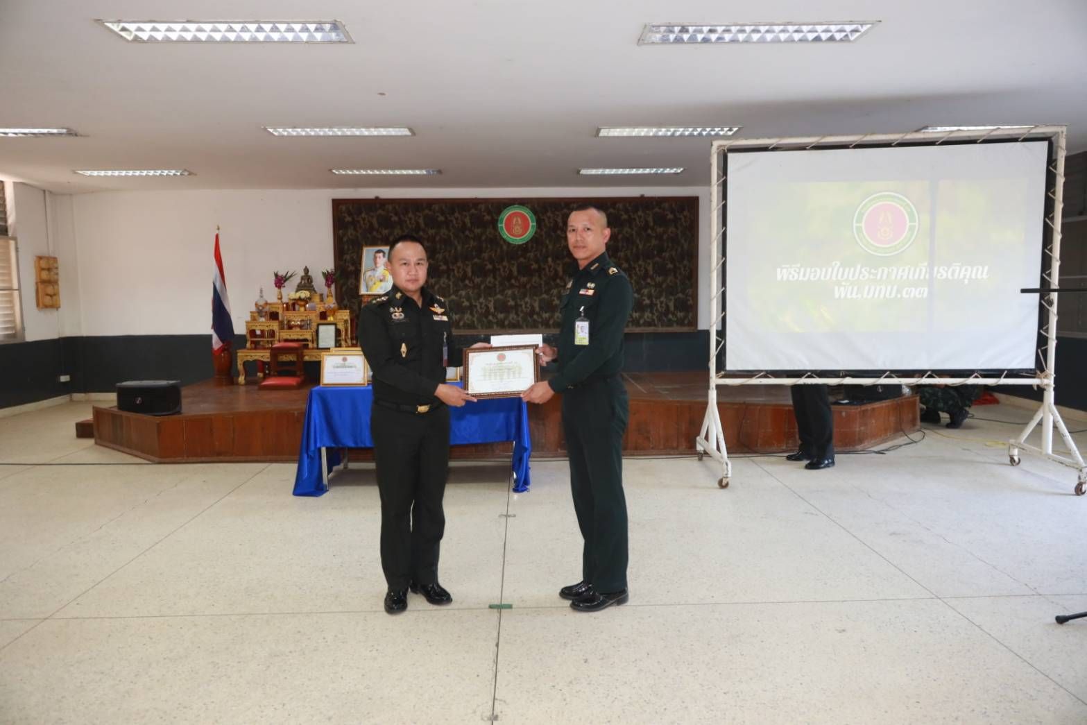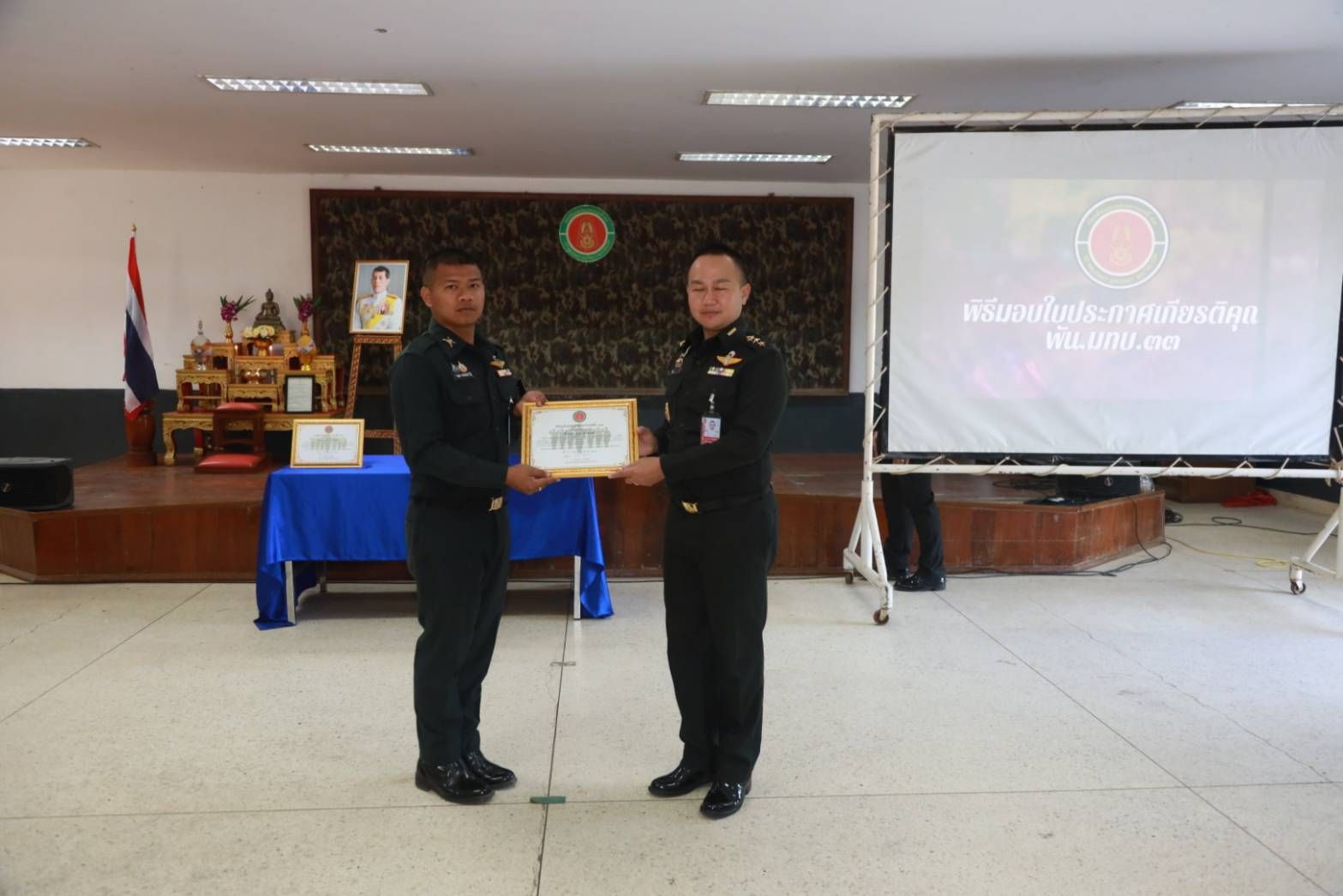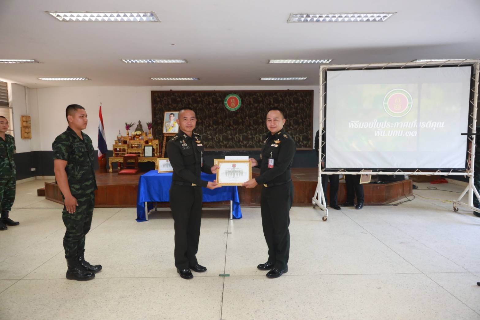 เมื่อวันที่ 18 มีนาคม 2569 เวลา 09.00 น. พ.อ.วารินทร์ คธาพันธ์ ผู้บังคับกองพันมณฑลทหารบกที่ 33 ได้มอบใบประกาศเกียรติคุณให้แก่กำลังพลที่สร้างชื่อเสียงและทำคุณประโยชน์ให้กับสังคม ทั้งด้านการศึกษาและการปฏิบัติหน้าที่ด้วยจิตอาสา