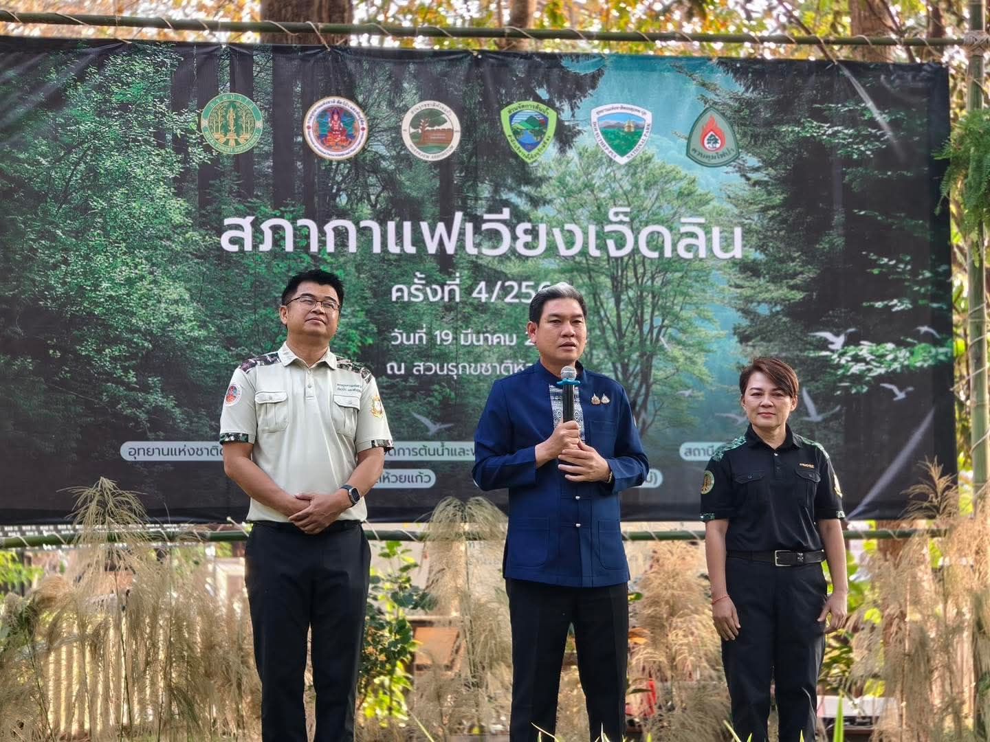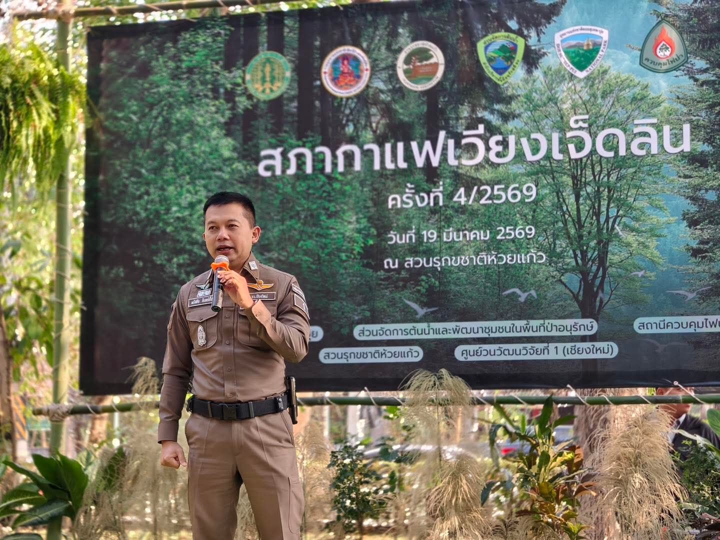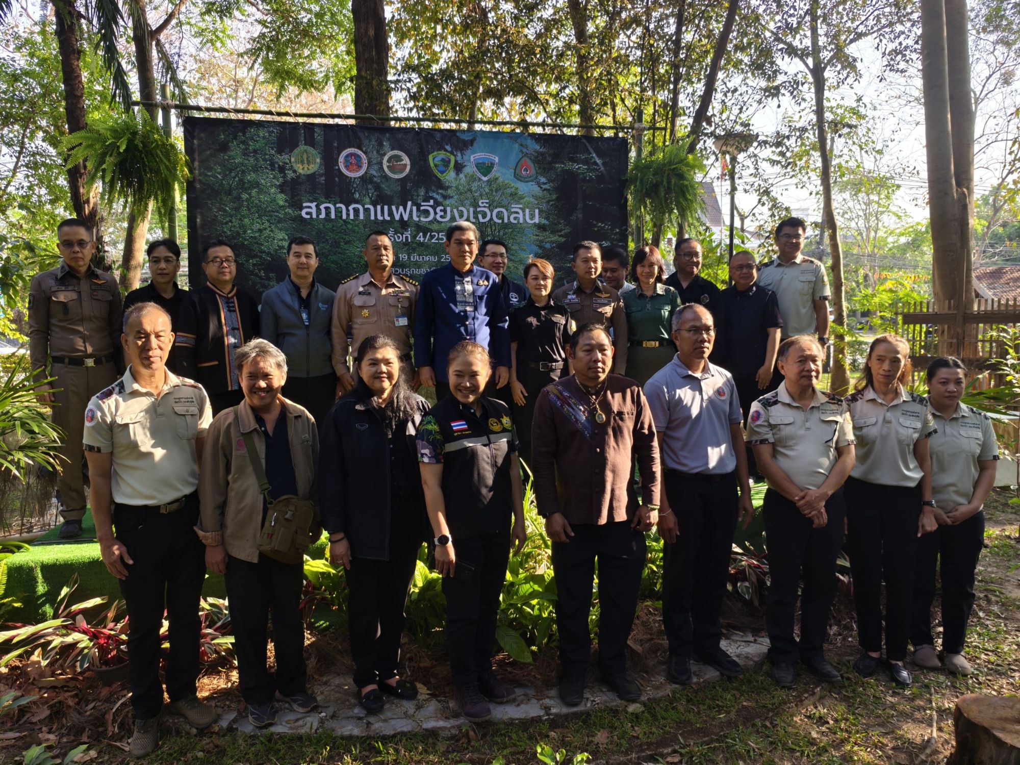 เมื่อวันที่ 19 มีนาคม 2569 เวลา 07.00 น. ณ สวนรุกขชาติห้วยแก้ว พ.ต.อ.มนัสชัย อินทร์เถื่อน ผกก.กลุ่มงานจราจร ภ.จว.เชียงใหม่ นำทีมคณะนายตำรวจระดับสารวัตรและรองผู้กำกับการ เข้าร่วมกิจกรรม “สภากาแฟเวียงเจ็ดลิน” ครั้งที่ 4/2569 ซึ่งเป็นเวทีพบปะอย่างเป็นกันเองของหน่วยงานในพื้นที่ เพื่อกระชับความสัมพันธ์และสร้างเครือข่ายความร่วมมือที่เข้มแข็ง โดยกิจกรรมนี้จัดขึ้นเป็นประจำทุกเดือนผ่านการหมุนเวียนเจ้าภาพ เพื่อแลกเปลี่ยนข้อมูลและร่วมกันขับเคลื่อนการทำงานในพื้นที่เวียงเจ็ดลินให้มีประสิทธิภาพ