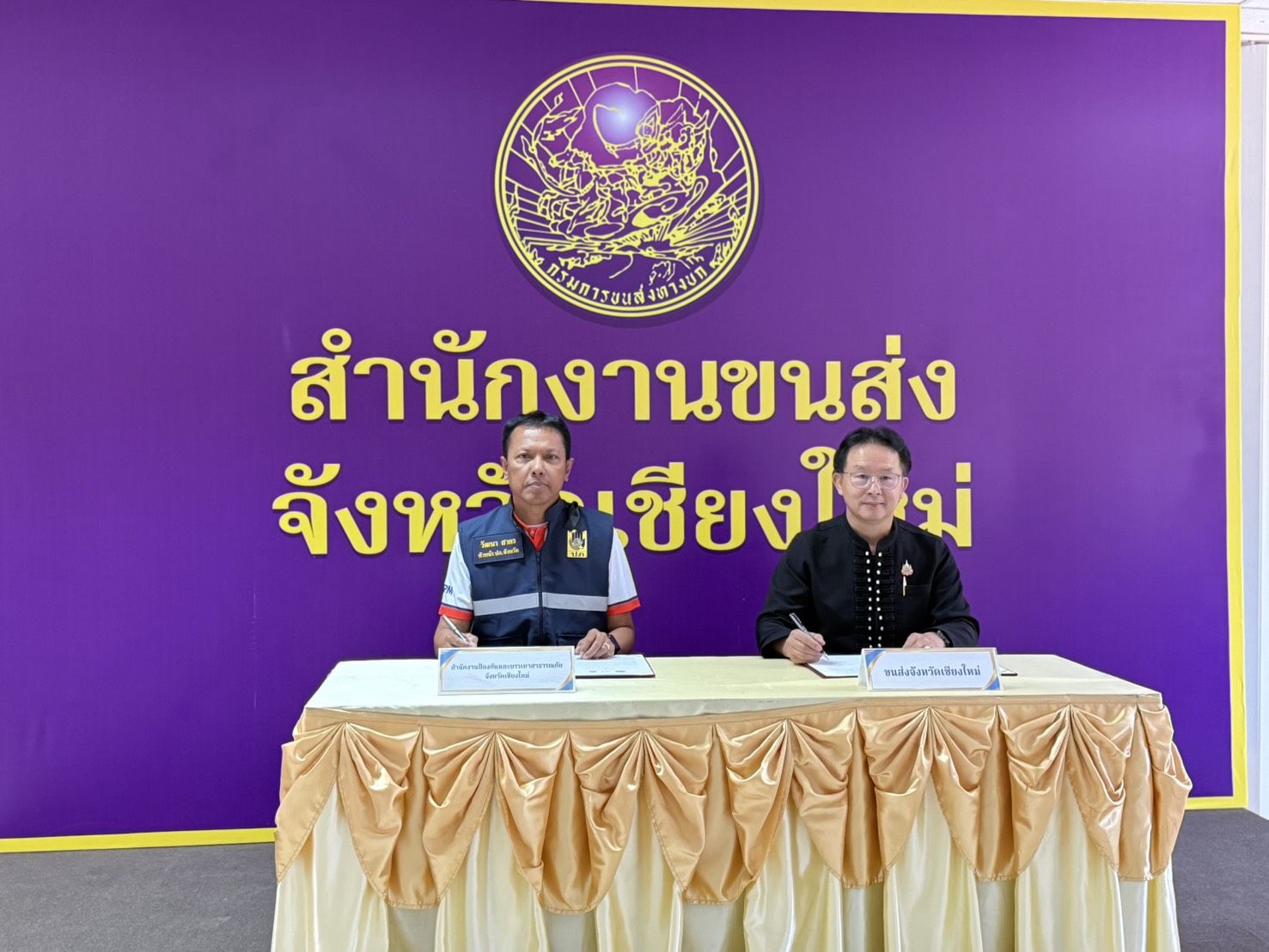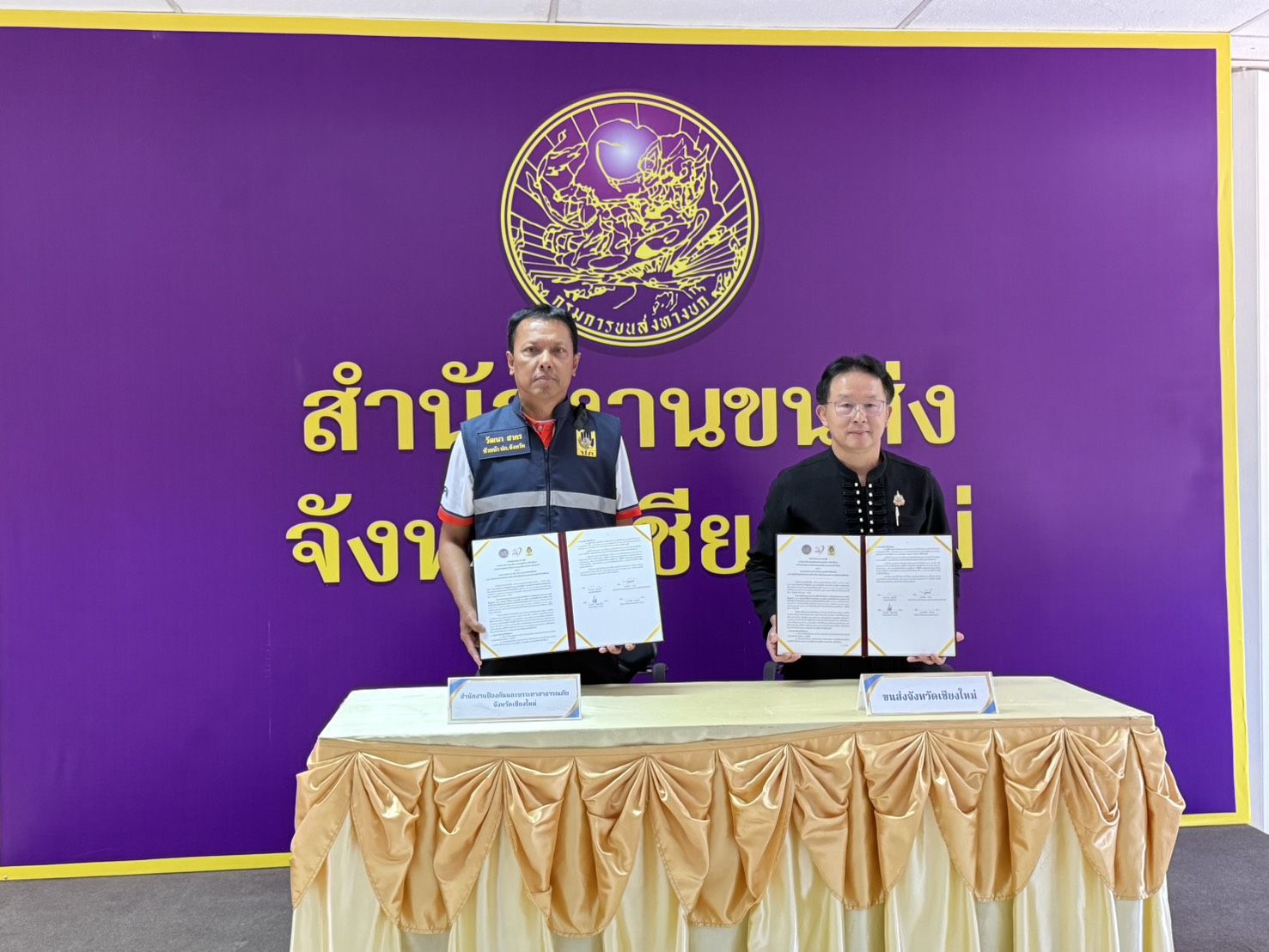 เมื่อวันที่ 19 มีนาคม 2569 เวลา 13.30 น. ณ สำนักงานขนส่งจังหวัดเชียงใหม่ แห่งที่ 2 (แม่เหียะ) นายวัฒนา สาคร หัวหน้าสำนักงานป้องกันและบรรเทาสาธารณภัยจังหวัดเชียงใหม่ พร้อมด้วย นายมานพ พุทธวงศ์ ขนส่งจังหวัดเชียงใหม่ ร่วมกันลงนามในบันทึกข้อตกลงความร่วมมือ (MOU) การจัดสรรเงินกองทุนเพื่อความปลอดภัยในการใช้รถใช้ถนน (กปถ.) เพื่อดำเนินโครงการด้านความปลอดภัยทางถนนในระดับจังหวัด โดยมีเป้าหมายหลักในการบูรณาการการทำงานร่วมกันเพื่อสร้างวัฒนธรรมความปลอดภัยบนท้องถนนให้เกิดขึ้นอย่างเป็นรูปธรรม