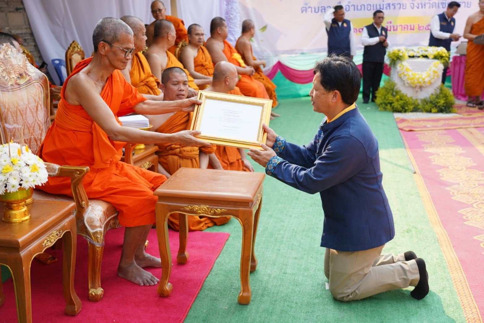 นอกจากนี้ อธิการบดี มจร. ยังได้เมตตามอบปัจจัยบำรุงที่พักสงฆ์ มอบกัปปิยภัณฑ์แก่พระบัณฑิตพัฒนาราษฎรบนพื้นที่สูง จำนวน 33 แห่ง และมอบถุงยังชีพแก่ราษฎรบนพื้นที่สูงที่เข้าร่วมพิธี เพื่อเป็นขวัญกำลังใจและสนับสนุนการดำเนินชีวิตในพื้นที่ห่างไกล