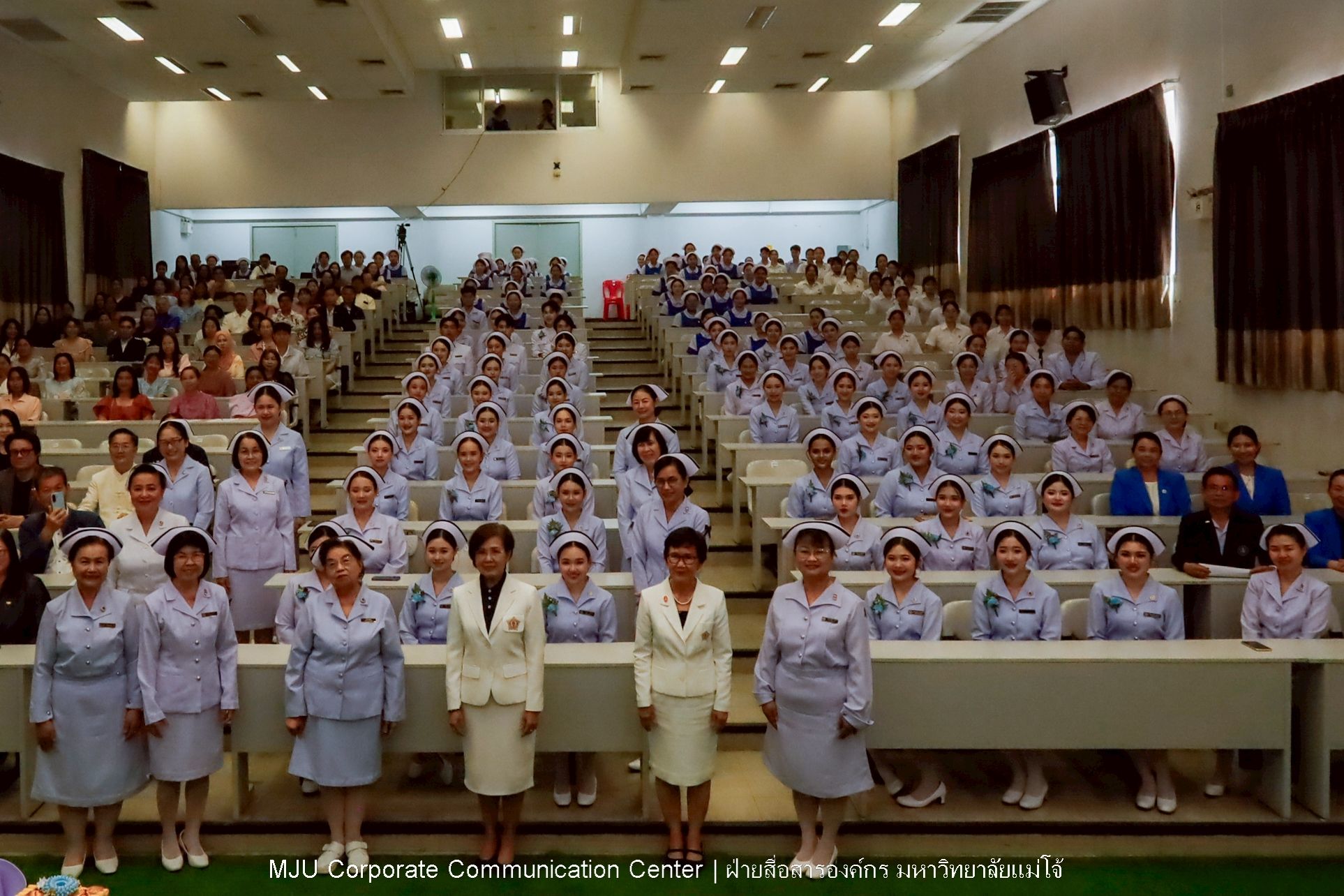 วันศุกร์ที่ 20 มีนาคม 2569 คณะพยาบาลศาสตร์ มหาวิทยาลัยแม่โจ้ จัดโครงการปัจฉิมนิเทศ พิธีการประกาศความสำเร็จการศึกษา ประจำปีการศึกษา 2569 แก่นักศึกษาคณะพยาบาลศาสตร์ ชั้นปีที่ 4 (นักศึกษารุ่นที่ 1) จำนวน 53 คน เพื่อประดับแถบหมวก มอบเข็มวิทยฐานะ ซึ่งถือเป็นเครื่องหมายที่แสดงถึงความสำเร็จทางการศึกษา และเป็นสัญลักษณ์ของการเริ่มต้นเข้าสู่ “วิชาชีพพยาบาล” อย่างเป็นทางการ โดยมีอาจารย์มาลี ล้วนแก้ว คณบดีคณะพยาบาลศาสตร์ มหาวิทยาลัยแม่โจ้ เป็นประธานในพิธีมอบหมวกติดแถบ พร้อมทั้งให้โอวาท ทั้งนี้มี คณะผู้บริหาร คณาจารย์ ผู้ปกครองเข้าร่วมพิธี ณ ห้องประชุม E101 ชั้น 1 อาคารคณะวิศวกรรมและอุตสาหกรรมเกษตร มหาวิทยาลัยแม่โจ้