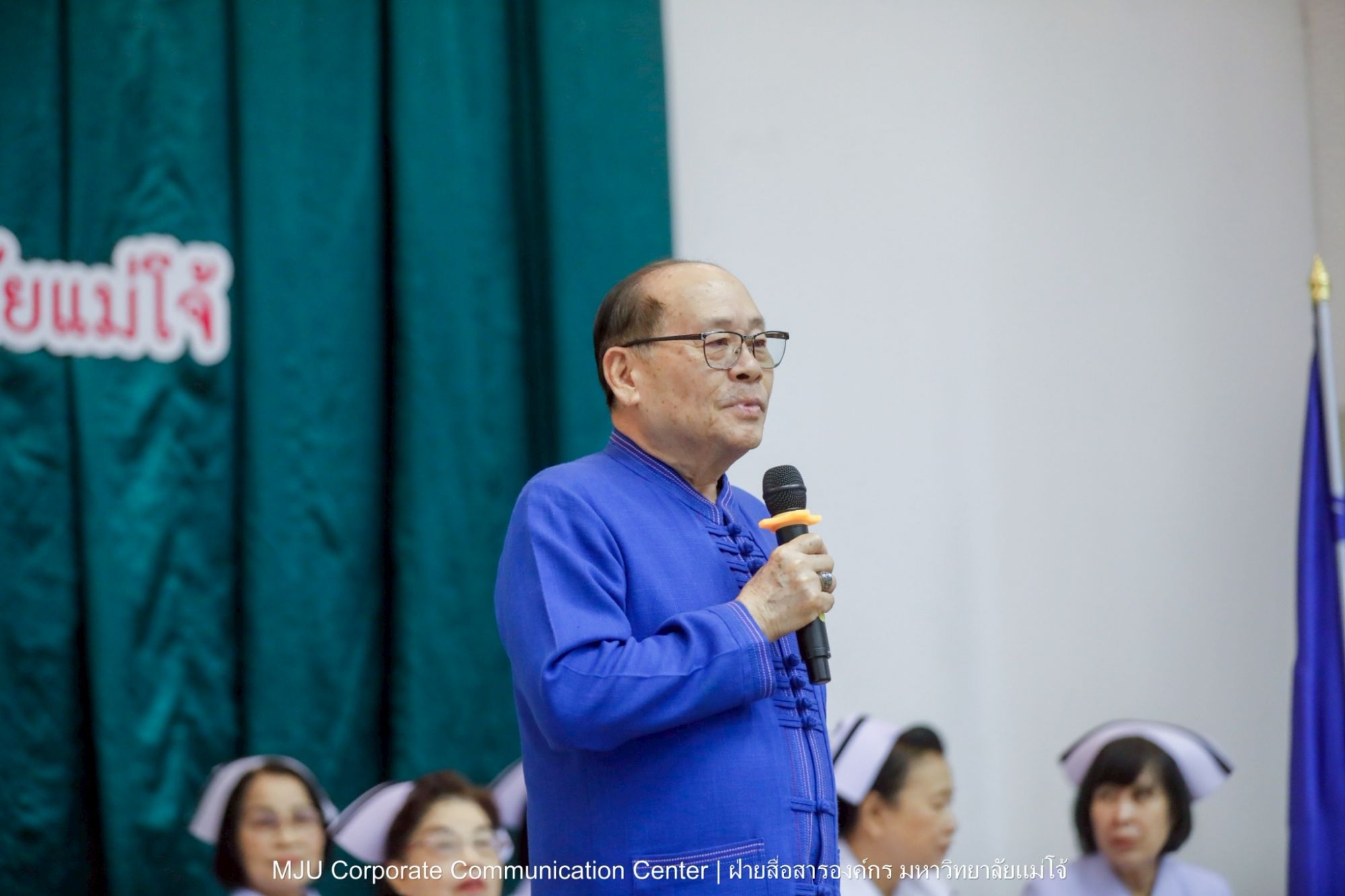 โอกาสนี้ ได้รับเกียรติจาก รองศาสตราจารย์ ดร.เทพ พงษ์พานิช ที่ปรึกษาคณบดี และ รองศาสตราจารย์ ดร.เกรียงศักดิ์ ศรีเงินยวง รองอธิการบดีมหาวิทยาลัยแม่โจ้ กล่าวแสดงความยินดีแก่ผู้สำเร็จการศึกษาหลักสูตรพยาบาลศาสตรบัณฑิต