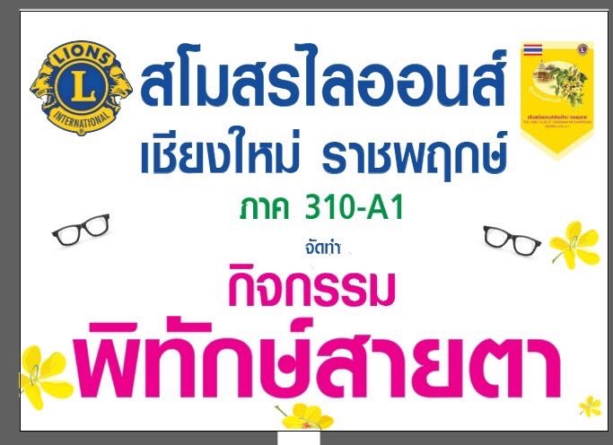 เมื่อวันอาทิตย์ที่ 22 มีนาคม 2569 เวลา 13.00 น. ณ เทศบาลตำบลสันกลาง ตำบลสันกลาง อำเภอสันกำแพง จังหวัดเชียงใหม่ สโมสรไลออนส์เชียงใหม่ราชพฤกษ์ นำโดย ไลออน ปาฏิหาริย์ มังคลาภรณ์ ได้จัดกิจกรรม “พิทักษ์สายตา (ครั้งที่ 2)” เพื่อสนับสนุนและส่งเสริมคุณภาพชีวิตด้านการมองเห็นของผู้สูงอายุในชุมชน