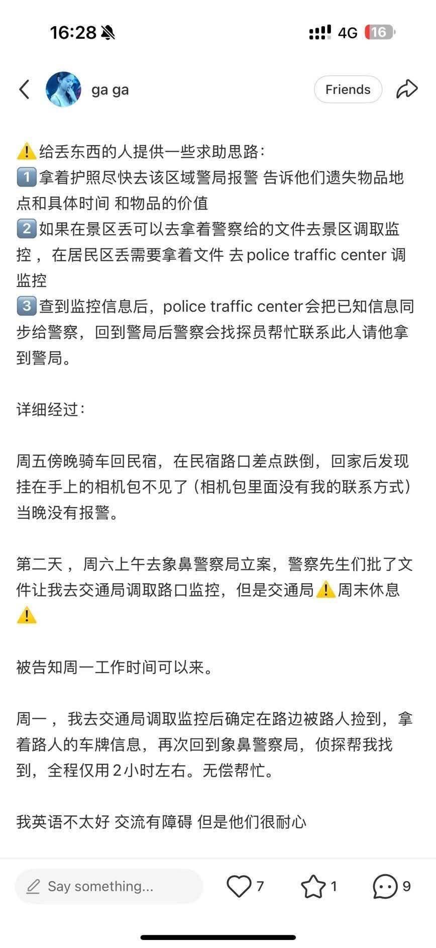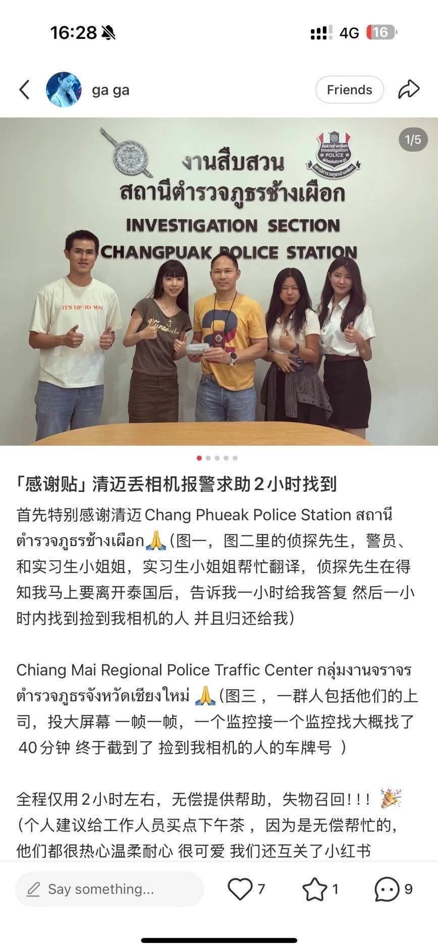 น.ส. JIA ZENG ได้กล่าวขอบคุณและชื่นชมการทำงานที่รวดเร็วของตำรวจไทย พร้อมทั้งไม่ติดใจเอาความใดๆ ก่อนจะลงบันทึกประจำวันรับคืนทรัพย์สินเรียบร้อย นับเป็นอีกหนึ่งเรื่องราวดีๆ ที่ช่วยตอกย้ำภาพลักษณ์เชียงใหม่เมืองปลอดภัยและน้ำใจไทยที่งดงาม.
