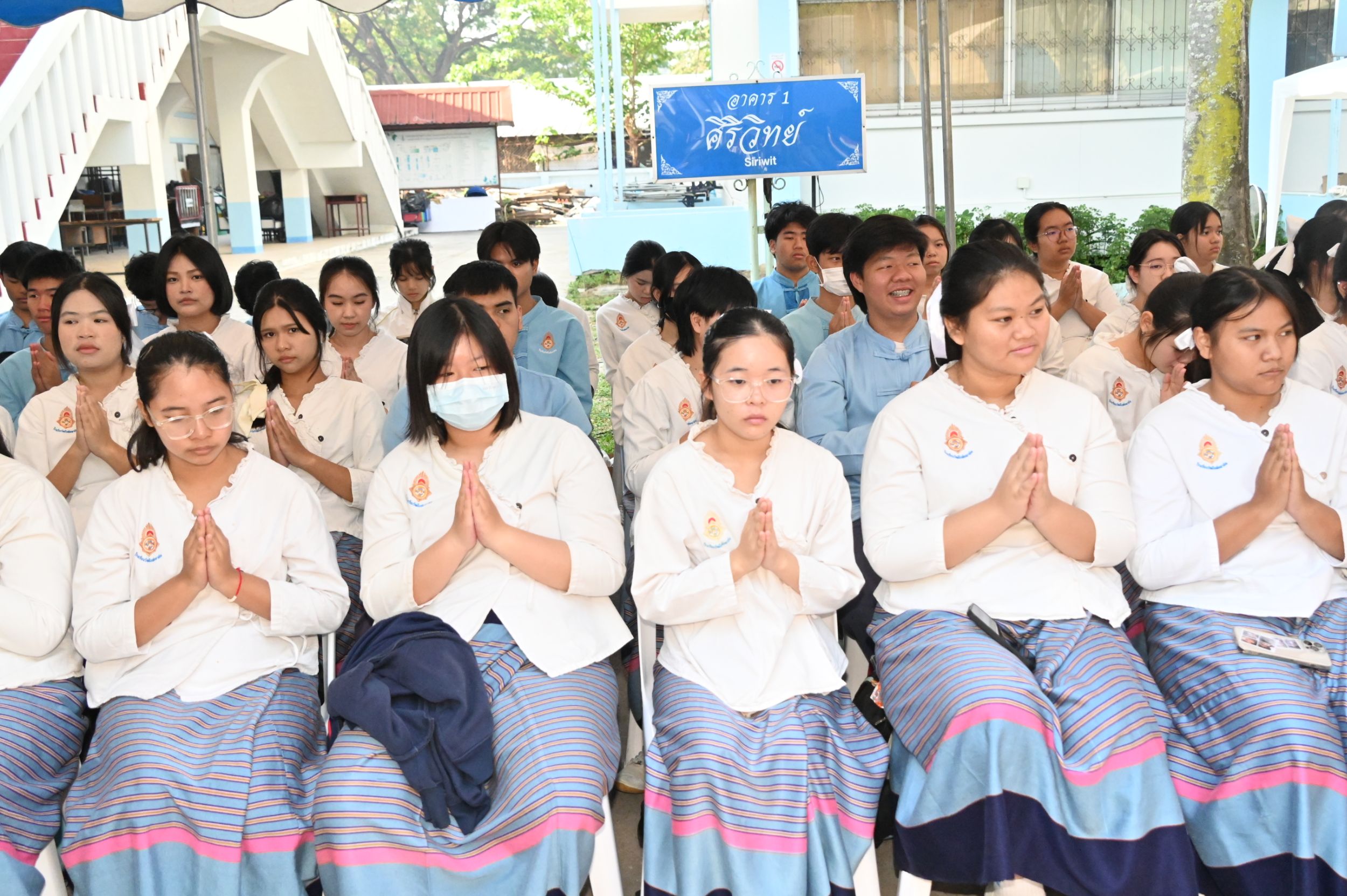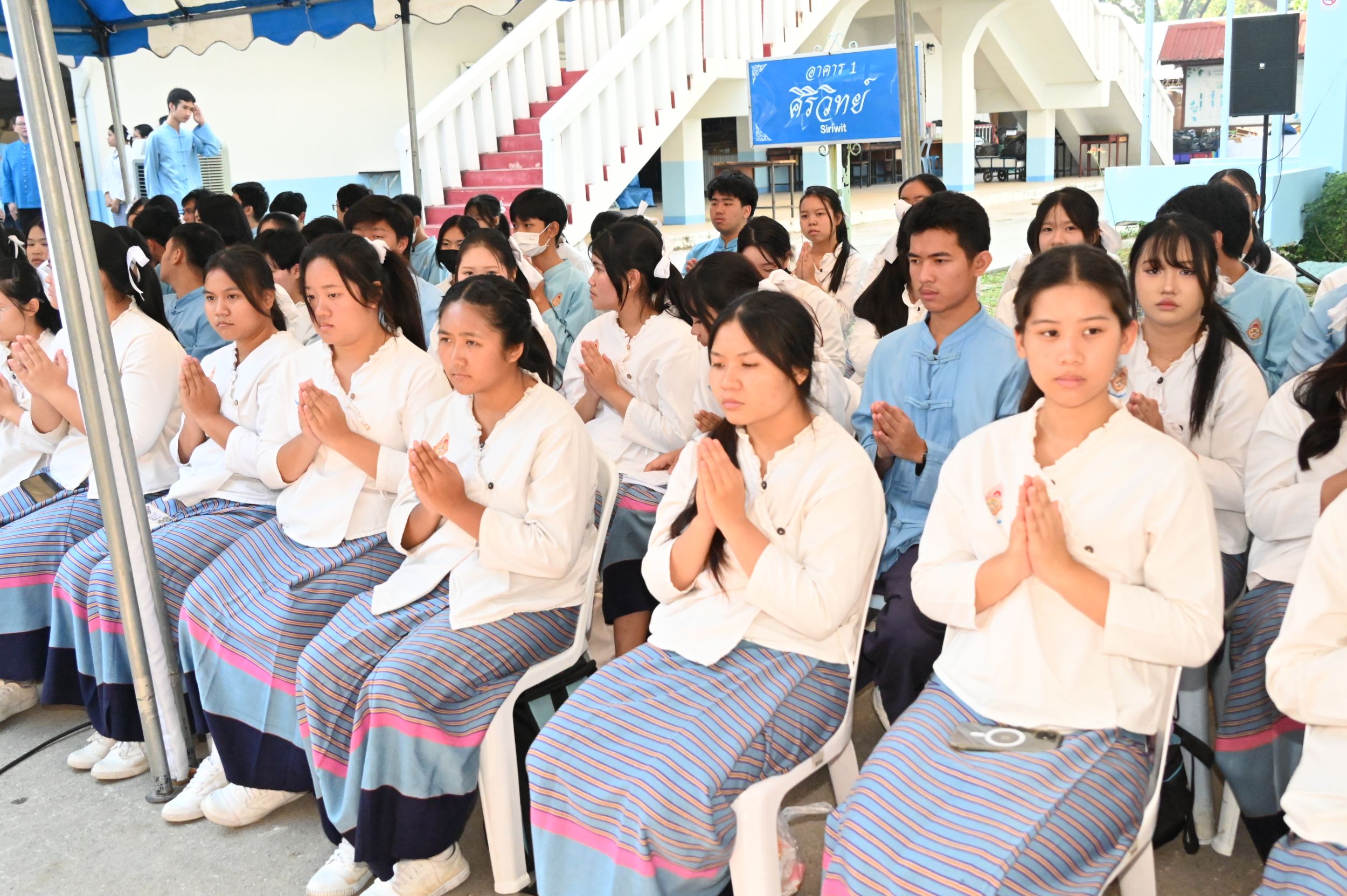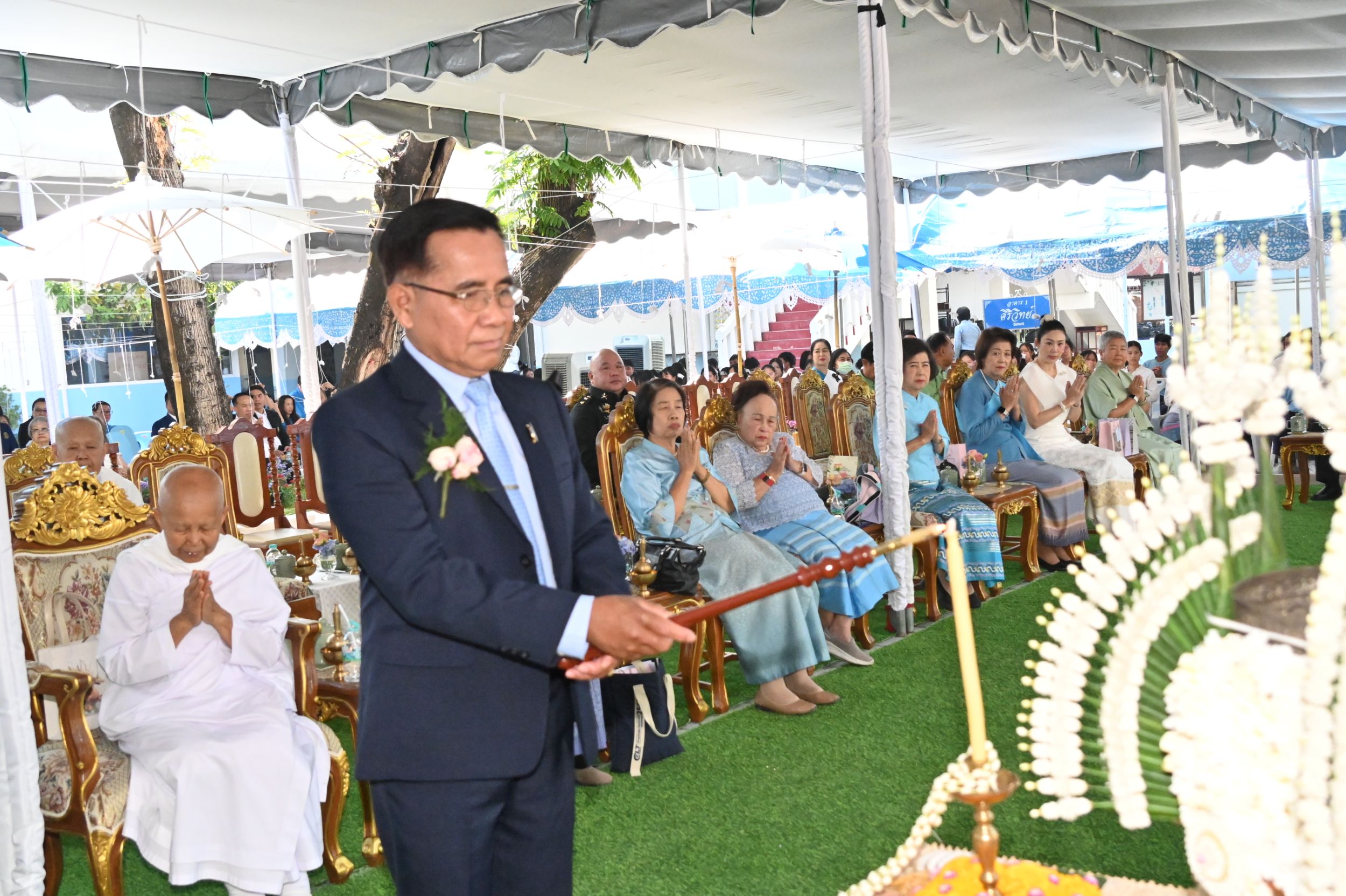 ช่วงเช้าเริ่มต้นด้วยพิธีทำบุญตักบาตรข้าวสารอาหารแห้งแด่พระภิกษุสงฆ์และสามเณร จำนวน 109 รูป จากโครงการบรรพชาสามเณรภาคฤดูร้อน ประจำปี 2569 จาก วัดสวนดอก พระอารามหลวง ณ ลานพระราชานุสาวรีย์ สมเด็จพระศรีสวรินทิรา บรมราชเทวี พระพันวัสสาอัยยิกาเจ้า เพื่อความเป็นสิริมงคลแก่คณะผู้บริหาร ครู บุคลากร และนักเรียน