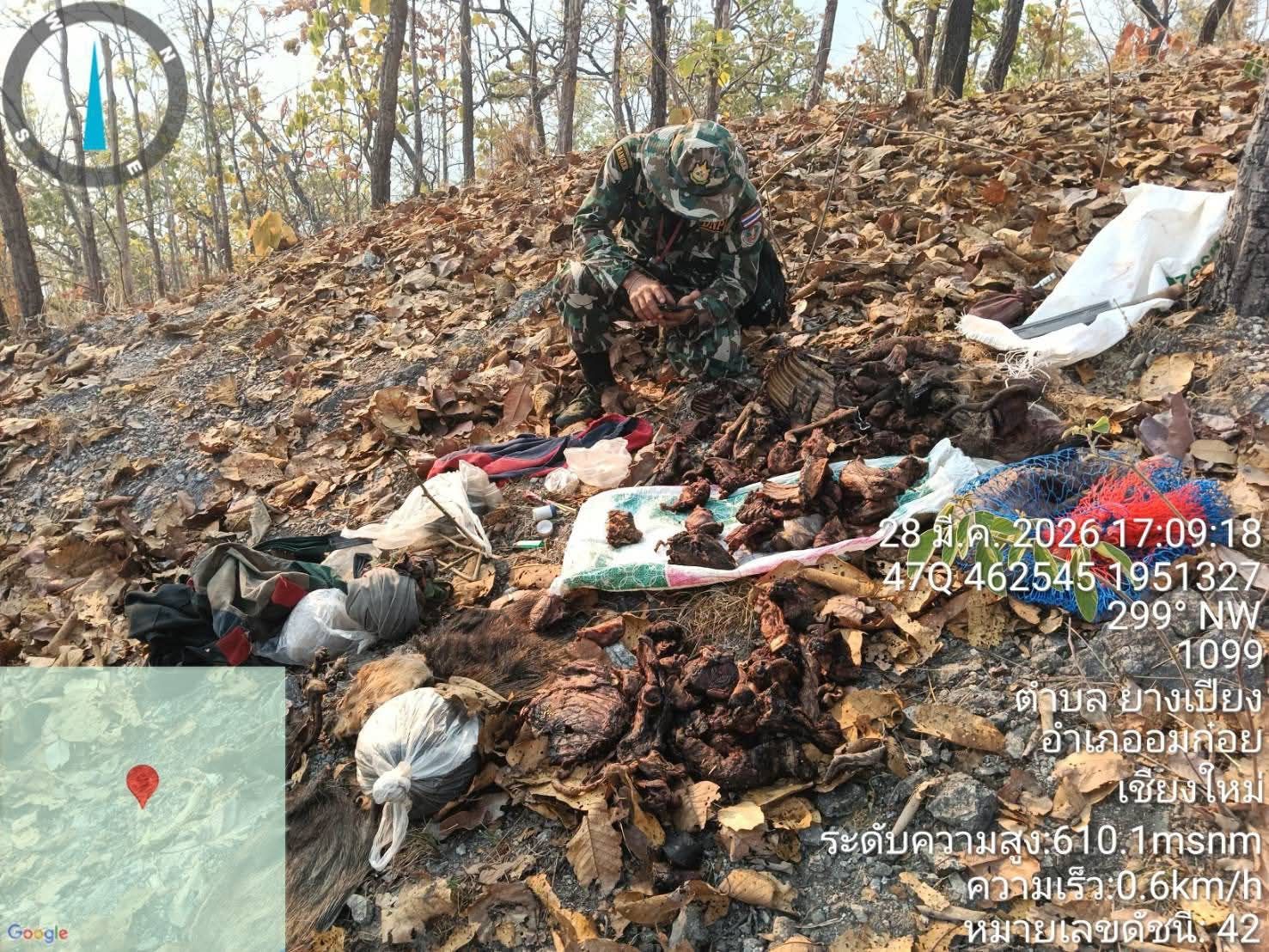 พรานใจบาปหนีกระเจิง! ทิ้งซากเก้ง-ลิ่นชวาเกลื่อนป่า หลังชุดดับไฟป่าอมก๋อยบุกประจันหน้า เจ้าหน้าที่ลั่นรู้ตัวแล้ว เร่งล่าตัวดำเนินคดี