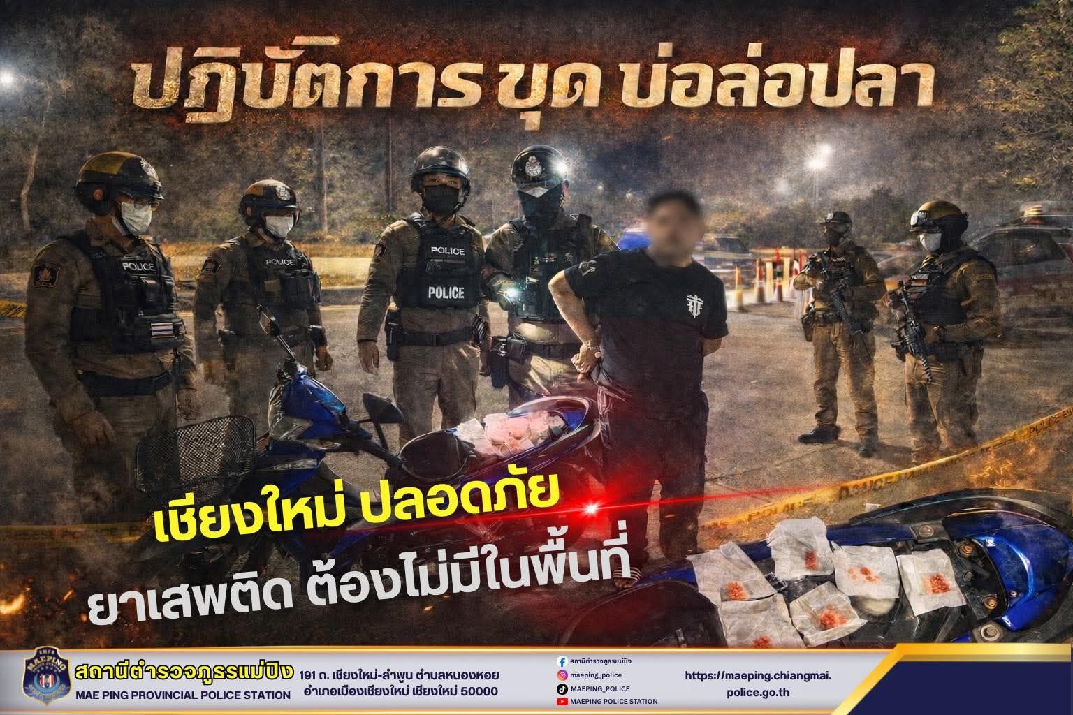 เมื่อเวลา 23.30 น. ของวันที่ 30 มีนาคม 2569 ภายใต้การอำนวยการและสั่งการของ พ.ต.อ.ญาณพล พัฒนชัย ผกก.สภ.แม่ปิง, พ.ต.ท.คทาวุฒิ หงษ์หนึ่ง รอง ผกก.ป.สภ.แม่ปิง และ พ.ต.ต.ชญานนท์ ชูสุวรรณ์ สวป.สภ.แม่ปิง ได้มอบหมายให้เจ้าหน้าที่ตำรวจสายตรวจชุดปฏิบัติการที่ 4 สภ.แม่ปิง ลงพื้นที่ตั้งจุดตรวจจุดสกัดเพื่อกวาดล้างอาชญากรรมและสิ่งผิดกฎหมายบริเวณถนนเชียงใหม่–ลำปาง ตำบลท่าศาลา อำเภอเมืองเชียงใหม่ จังหวัดเชียงใหม่