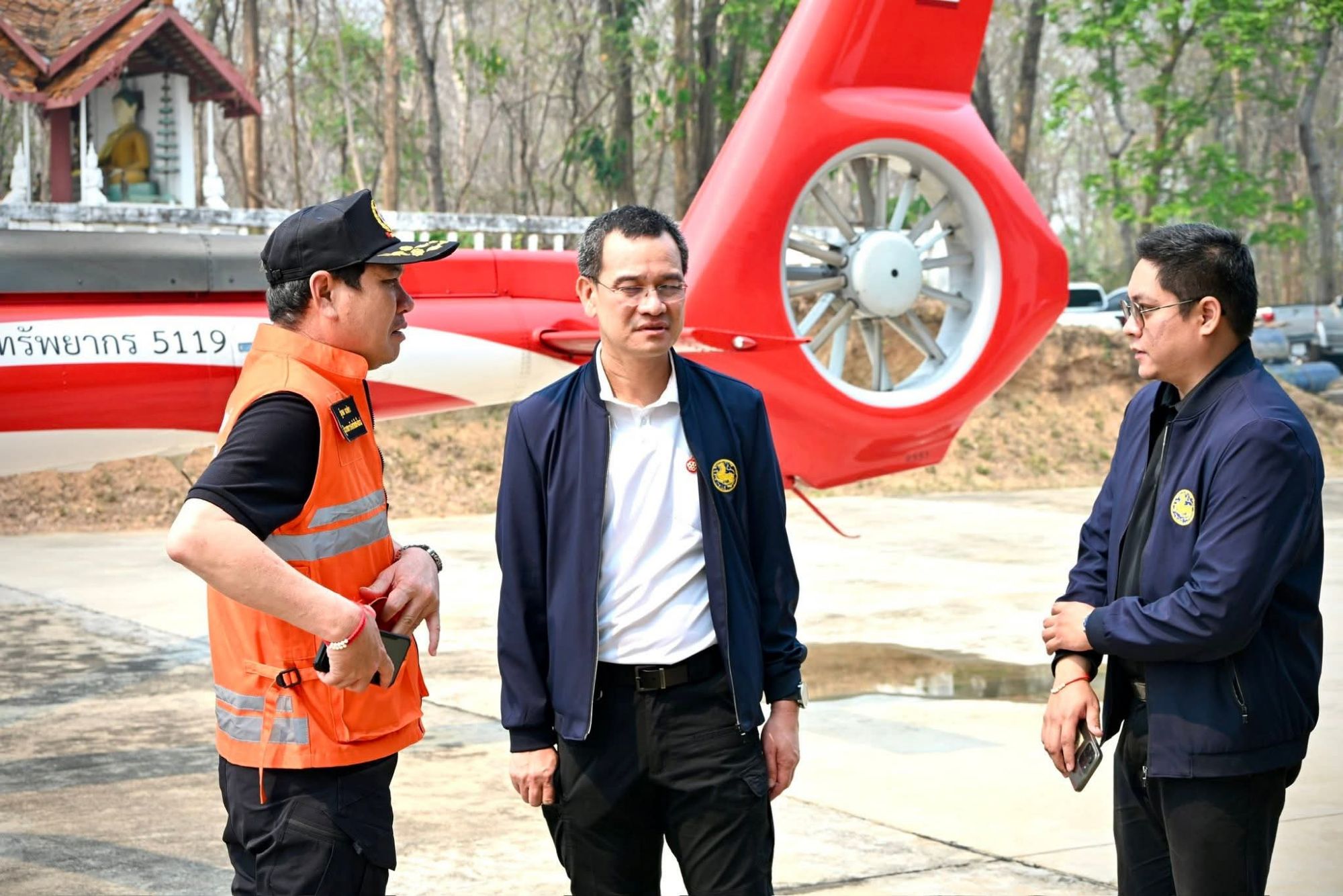 ภารกิจกู้วิกฤตฝุ่นภาคเหนือยังคงดำเนินไปอย่างเข้มข้น โดยเมื่อเวลา 10.35 น. ของวันที่ 2 เมษายน 2569 นายอรรษิษฐ์ สัมพันธรัตน์ ปลัดกระทรวงมหาดไทย พร้อมด้วยนายรัฐพล นราดิศร ผู้ว่าราชการจังหวัดเชียงใหม่ ได้ผนึกกำลังร่วมกับกระทรวงทรัพยากรธรรมชาติและสิ่งแวดล้อม ลงพื้นที่ติดตามการป้องกันและแก้ไขปัญหาไฟป่า หมอกควัน และฝุ่นละอองขนาดเล็ก (PM 2.5) ในพื้นที่จังหวัดเชียงใหม่เป็นวันที่ 2 ติดต่อกัน โดยในช่วงเช้าคณะได้ขึ้นบินตรวจสถานการณ์จุดความร้อนบนเฮลิคอปเตอร์ที่ได้รับการสนับสนุนจากกระทรวงทรัพยากรธรรมชาติฯ เพื่อสำรวจพื้นที่อำเภอฮอด อำเภอดอยเต่า จังหวัดเชียงใหม่ และอำเภอลี้ จังหวัดลำพูน ซึ่งเป็นจุดที่ดาวเทียมตรวจพบการสะสมของจุดความร้อนปริมาณมากตั้งแต่ช่วงเวลา 02.00 น. ที่ผ่านมา