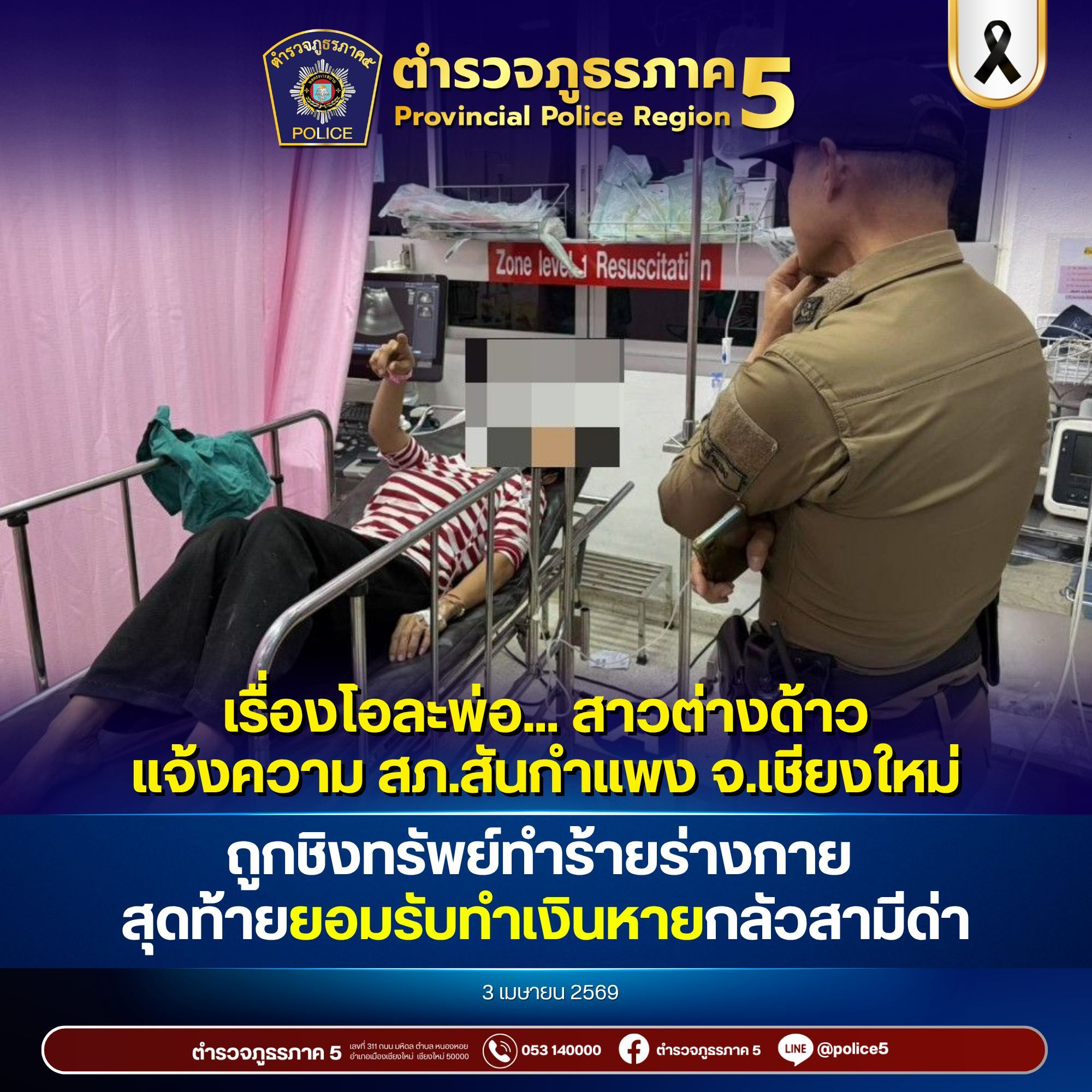 เรื่องโอละพ่อ? สาวต่างด้าวแจ้งความ สภ.สันกำแพง จ.เชียงใหม่ ถูกชิงทรัพย์ทำร้ายร่างกาย สุดท้ายยอมรับทำเงินหายกลัวสามีด่า