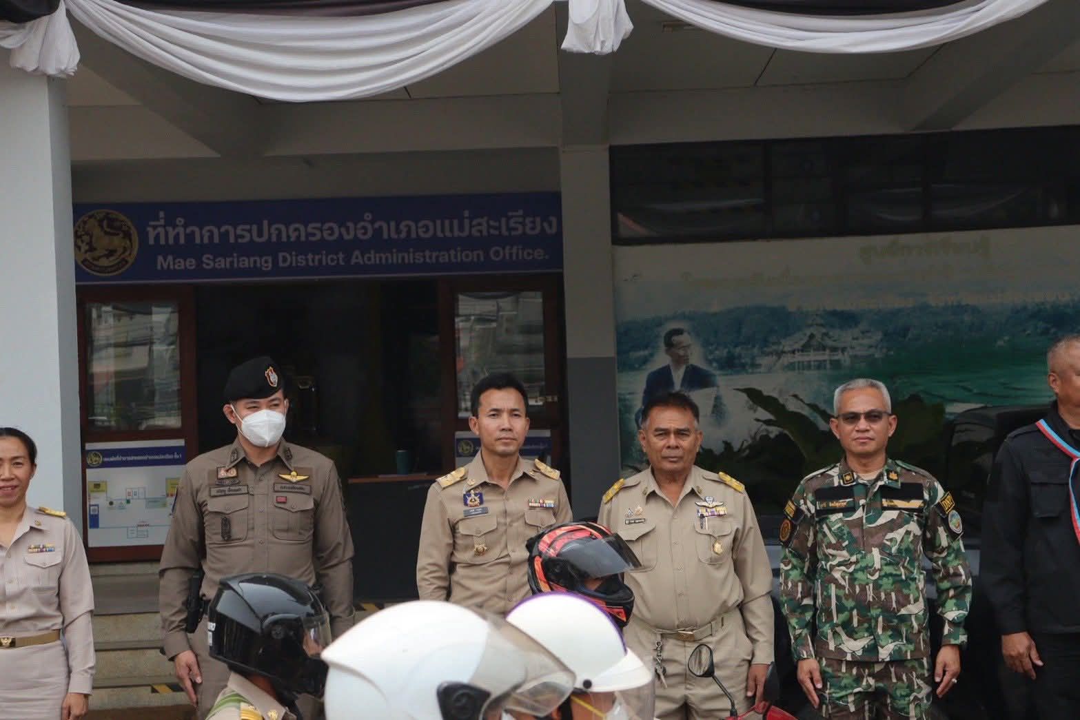 นอกจากนี้ ทางอำเภอแม่สะเรียงยังได้ยกระดับมาตรการความปลอดภัยขั้นสุด โดยกำหนดให้พื้นที่ส่วนราชการเป็นเขตสวมหมวกกันน็อกร้อยเปอร์เซ็นต์อย่างเคร่งครัด ดังนั้น พ่อแม่พี่น้องประชาชนท่านใดที่จะเดินทางมาติดต่อราชการ ณ ที่ว่าการอำเภอแม่สะเรียง จะต้องสวมใส่หมวกกันน็อกมาให้เรียบร้อยทุกครั้งเพื่อความปลอดภัยของตัวท่านเอง