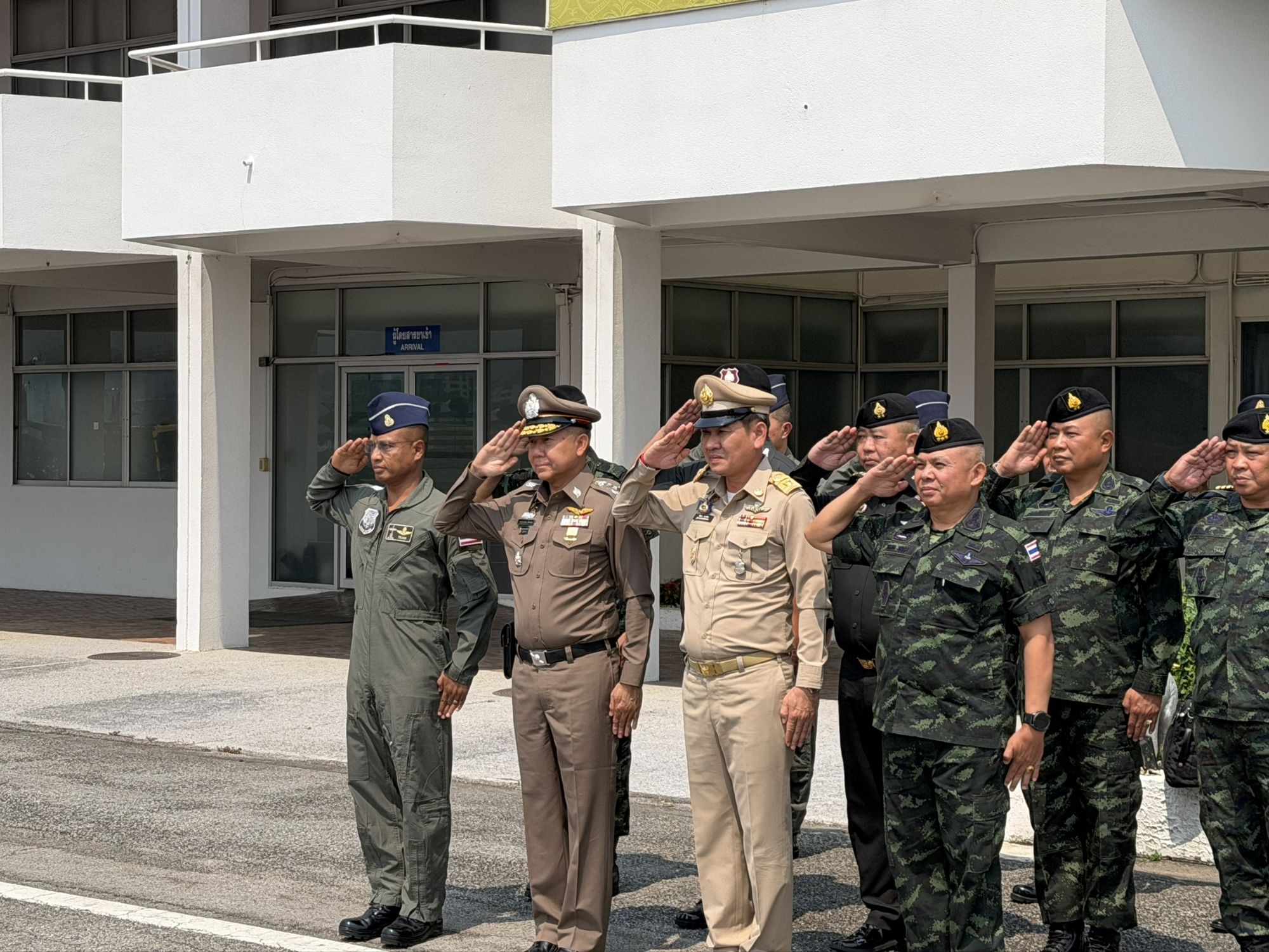 พล.ต.ท.กฤตธาพล ยี่สาคร ผบช.ภ.5 พร้อมด้วย นายรัฐพล นราดิศร ผวจ.เชียงใหม่, พล.ท.วรเทพ บุญญะ มทภ.3, พล.ต.ธำรงศักดิ์ บุญทักษ์ ผบ.มทบ.33, พล.ต.ต.สุทธิพงศ์ เป๊กทอง รอง ผบช.ภ.5 และ น.อ.ธีระยุทธ์ เกื้อสกุล ผบ.บน.41 ร่วมให้การต้อนรับ พล.ท.อดุลย์ บุญธรรมเจริญ รัฐมนตรีว่าการกระทรวงกลาโหมและคณะ เนื่องในโอกาสเดินทางมาปฏิบัติภารกิจ ติดตามสถานการณ์การป้องกันและแก้ไขปัญหาไฟป่าหมอกควันและฝุ่นละออง ในพื้นที่จังหวัดเชียงใหม่ ณ ท่าอากาศยานทหาร บน.41 อ.เมืองเชียงใหม่ จ.เชียงใหม่
