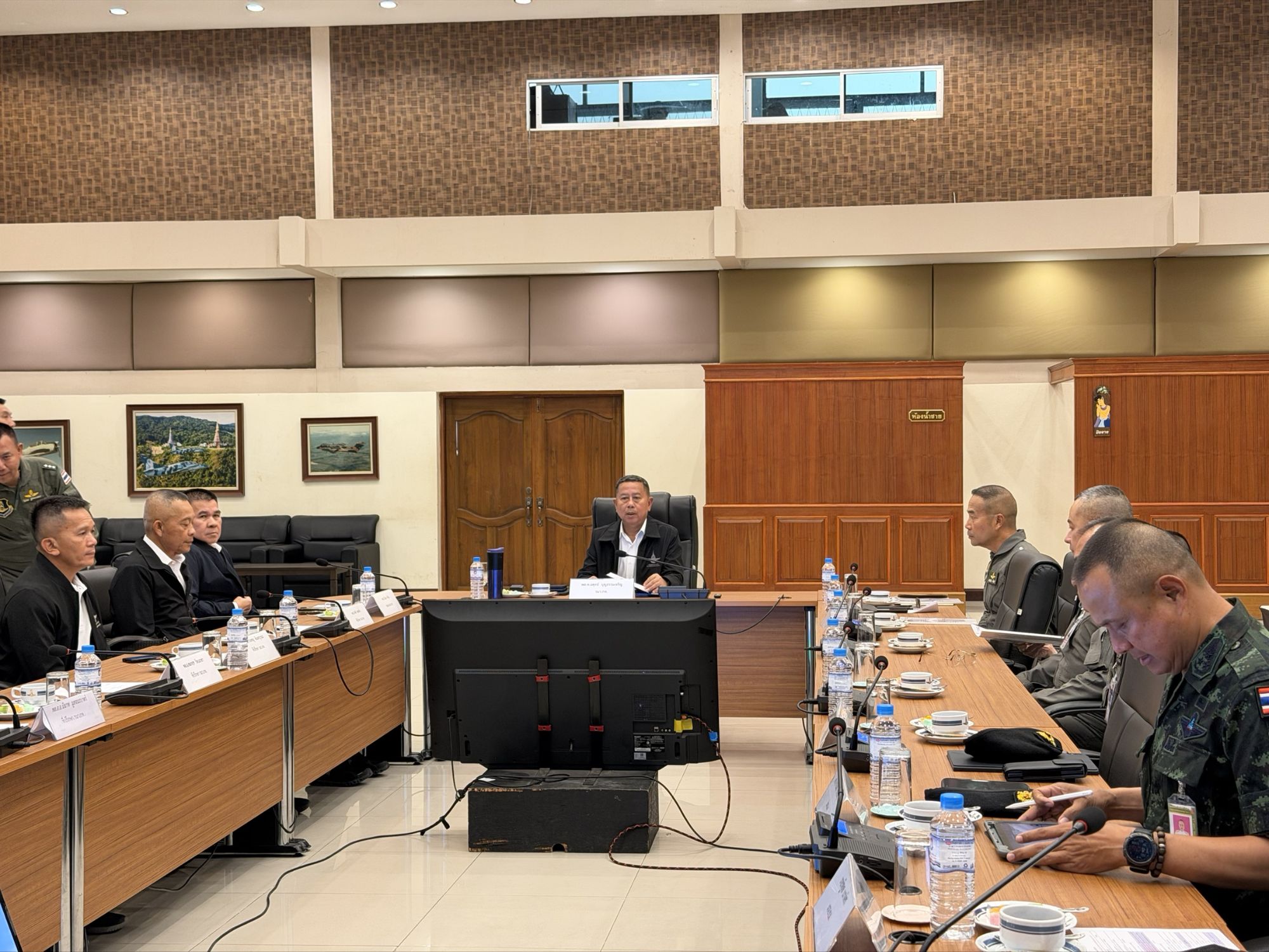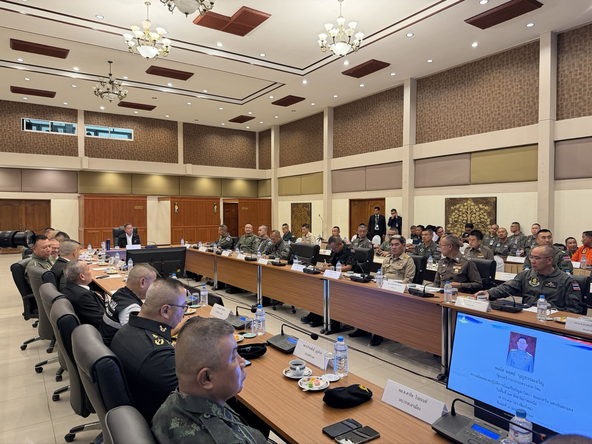 ต่อมาในเวลา 14.30 น. ได้เข้าร่วมประชุมศูนย์ปฏิบัติการป้องกันและแก้ไขปัญหาไฟป่าหมอกควันและฝุ่นละออง ณ หอประชุมเดชะตุงคะ บน.41 เชียงใหม่ จากนั้นในเวลา 15.30 น. ร่วมมอบหน้ากากอนามัยและเวชภัณฑ์ แก่นักบิน,จนท.หน่วยบิน และส่วนปฏิบัติการที่เกี่ยวข้อง เพื่อเป็นขวัญและกำลังใจในการปฏิบัติหน้าที่ต่อไป.