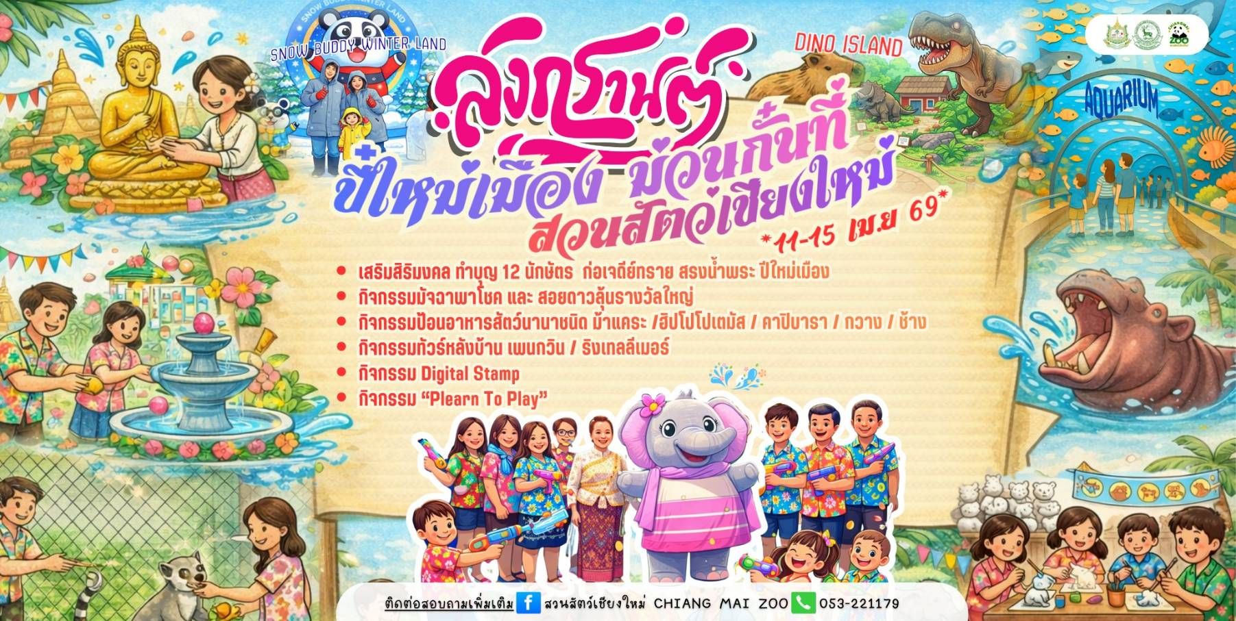 เตรียมตัวให้พร้อมสำหรับเทศกาลแห่งความสุข! สวนสัตว์เชียงใหม่ พร้อมเปิดบ้านต้อนรับนักท่องเที่ยวในงาน “สงกรานต์ ปีใหม่เมือง ม่วนกั๋น ที่สวนสัตว์เชียงใหม่” ระหว่างวันที่ 11 – 15 เมษายน 2569 นี้ โดยปีนี้จัดเต็มกิจกรรมที่ผสมผสานทั้งศิลปวัฒนธรรมล้านนาและความสนุกสนานไว้อย่างครบครันเพื่อให้เป็นจุดหมายปลายทางยอดฮิตของครอบครัว
