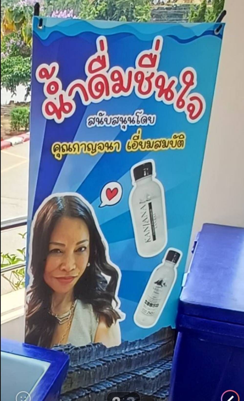 ถึงเจ้าตัวจะอยู่ต่างแดน แต่ก็มีน้ำใจที่มอบน้ำดื่มน้ำแร่ตรากาญจนา ให้กับจังหวัดฯ ตำรวจ. วัด. เทศบาลฯ