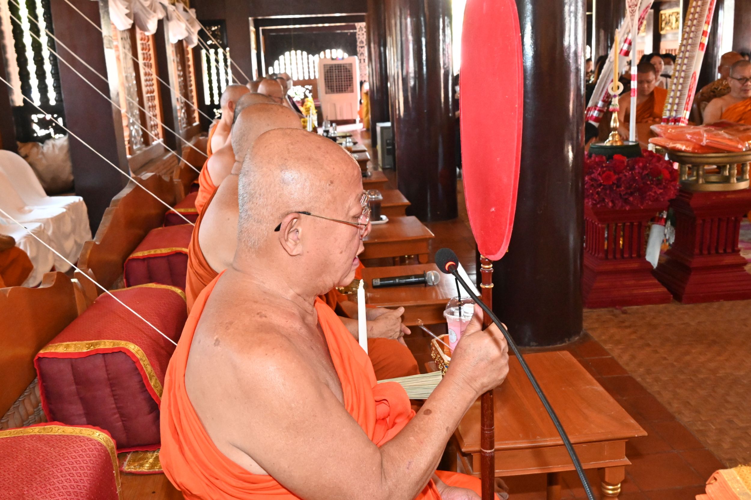 ในการนี้ ได้มีการนิมนต์พระเถรานุเถระ เจ้าคณะ และพระสังฆาธิการ รวมจำนวน 22 รูป ร่วมประกอบพิธีสวดพระพุทธมนต์ทักษิณานุปทาน เพื่ออุทิศส่วนกุศลแก่ดวงวิญญาณบรรพชน และผู้ล่วงลับตามคติความเชื่อในพระพุทธศาสนา อันเป็นการแสดงออกถึงความกตัญญูกตเวที และการสืบสานประเพณีอันดีงามของชาวล้านนา
