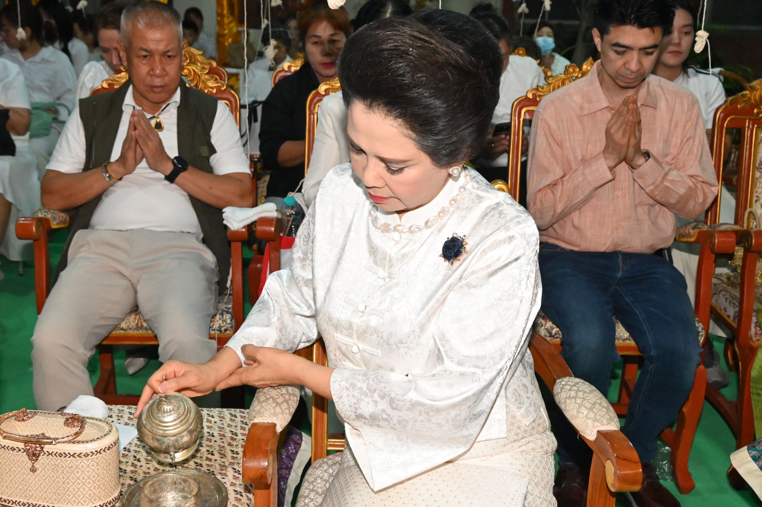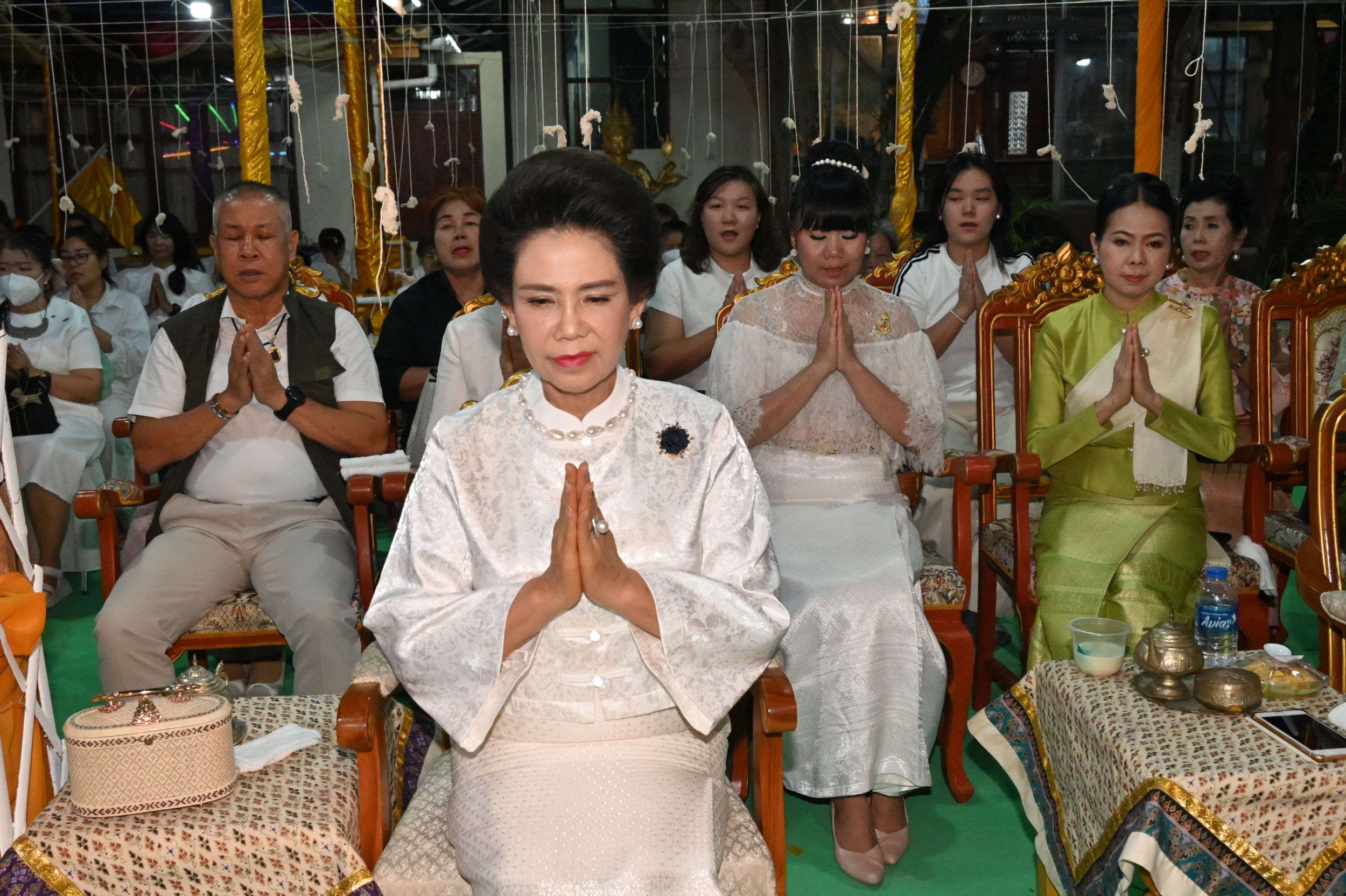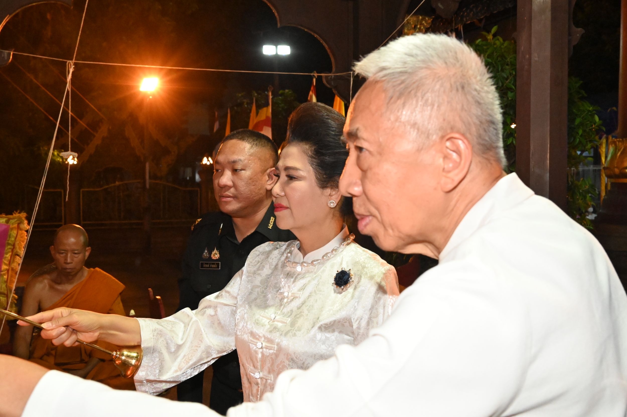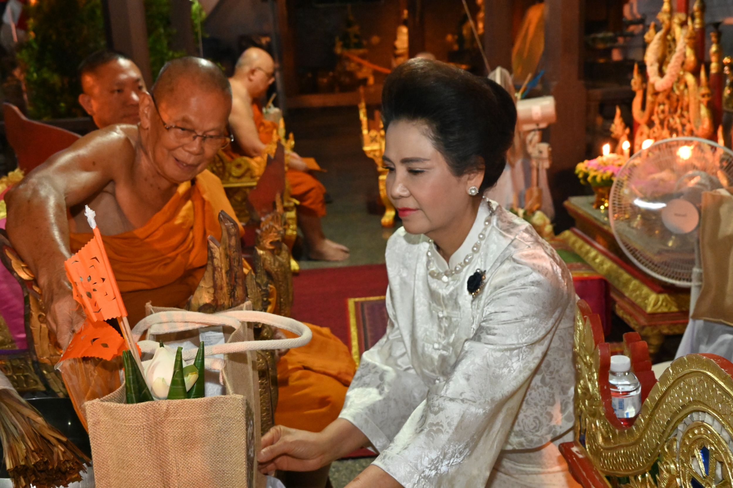 ขณะเดียวกัน ได้รับเกียรติจากเจ้าภาคินัย ณ เชียงใหม่ และเจ้าเจือจันทร์ ณ เชียงใหม่ ร่วมเป็นประธานฝ่ายฆราวาส จุดเทียนชัยและร่วมประกอบพิธีอย่างพร้อมเพรียง ท่ามกลางบรรยากาศแห่งความเลื่อมใสศรัทธาของพุทธศาสนิกชนที่เข้าร่วมพิธีเป็นจำนวนมาก