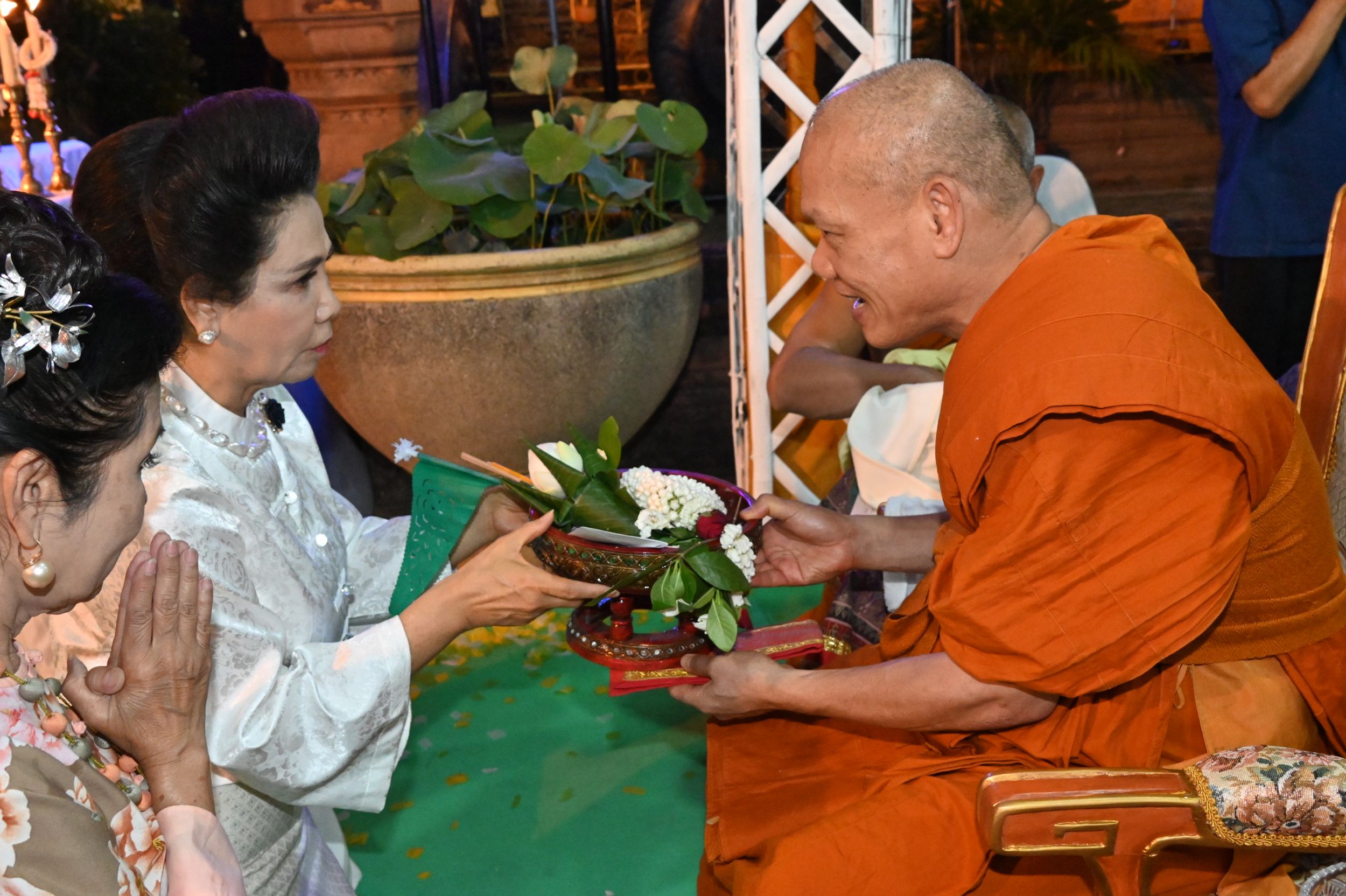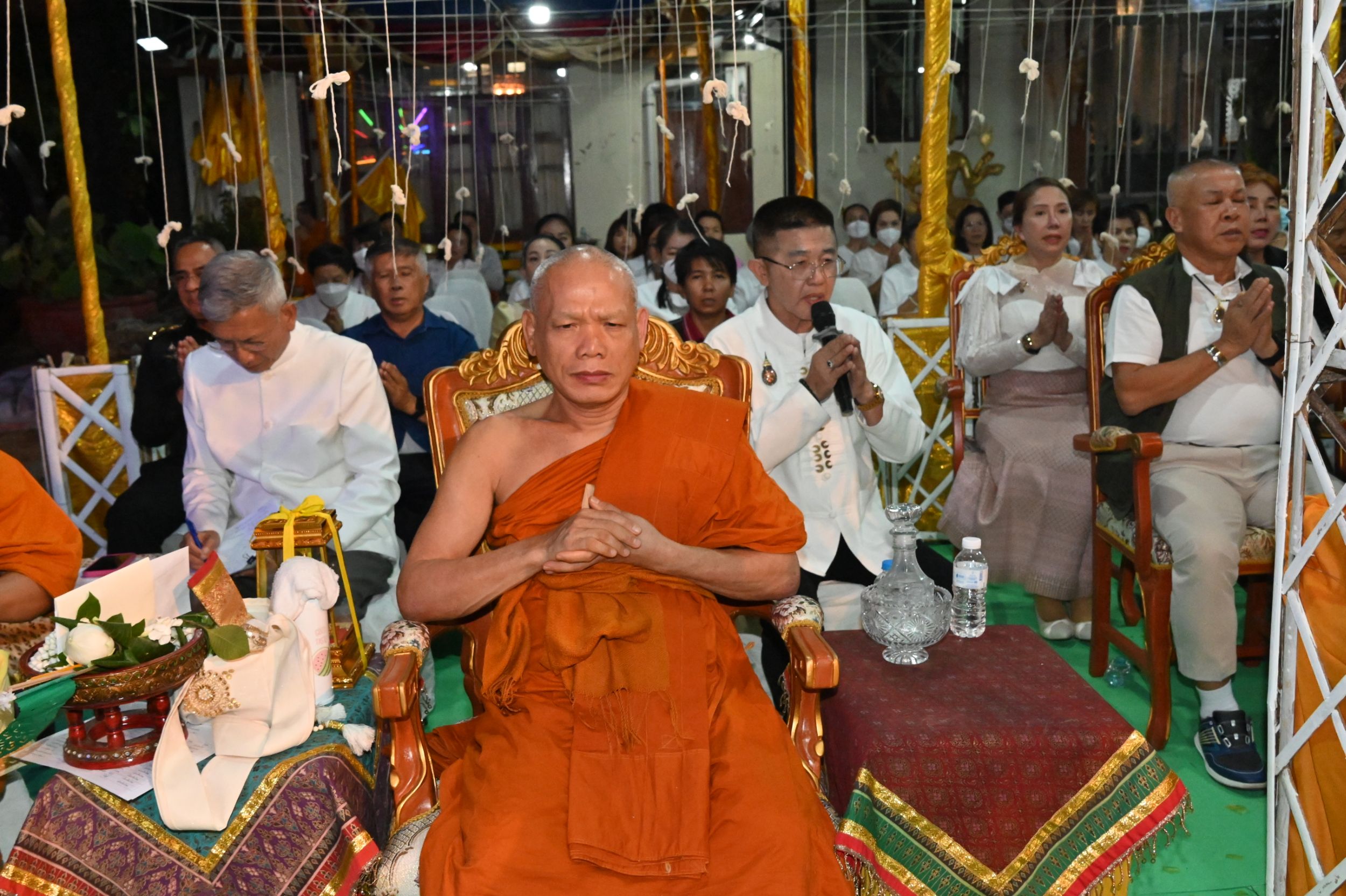 ขณะเดียวกัน ได้รับเกียรติจากเจ้าภาคินัย ณ เชียงใหม่ และเจ้าเจือจันทร์ ณ เชียงใหม่ ร่วมเป็นประธานฝ่ายฆราวาส จุดเทียนชัยและร่วมประกอบพิธีอย่างพร้อมเพรียง ท่ามกลางบรรยากาศแห่งความเลื่อมใสศรัทธาของพุทธศาสนิกชนที่เข้าร่วมพิธีเป็นจำนวนมาก
