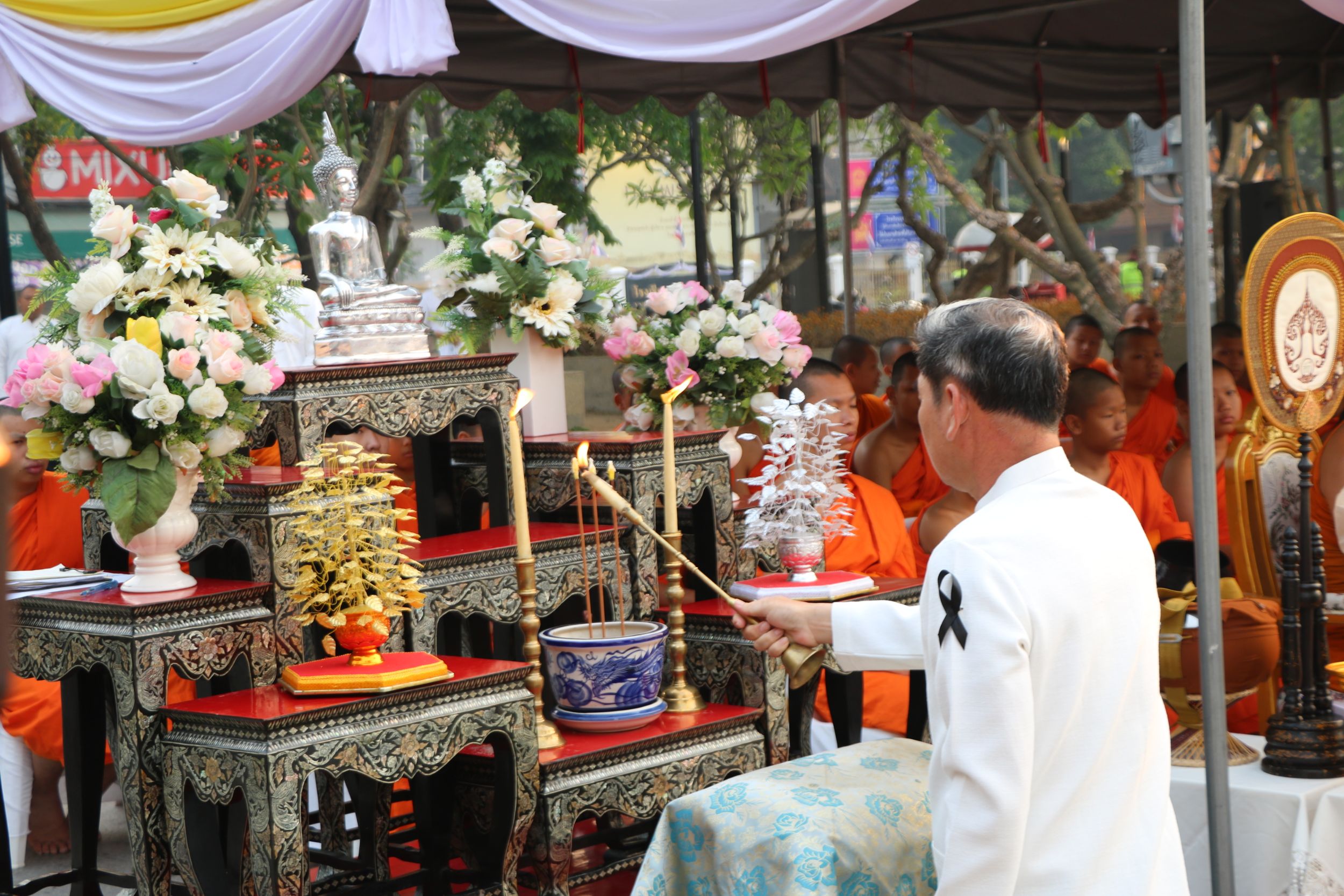 พิธีครั้งนี้ได้รับความเมตตาจาก พระสุธีวัชรบัณฑิต ผู้ช่วยเจ้าอาวาส วัดพระธาตุดอยสุเทพราชวรวิหาร เจ้าอาวาส วัดอินทขีล สะดือเมือง และรองอธิการบดีมหาวิทยาลัยมหาจุฬาลงกรณราชวิทยาลัย วิทยาเขตเชียงใหม่ เป็นประธานฝ่ายสงฆ์ พร้อมด้วยพระภิกษุสามเณรจำนวน 459 รูป ร่วมประกอบพิธีรับบิณฑบาต