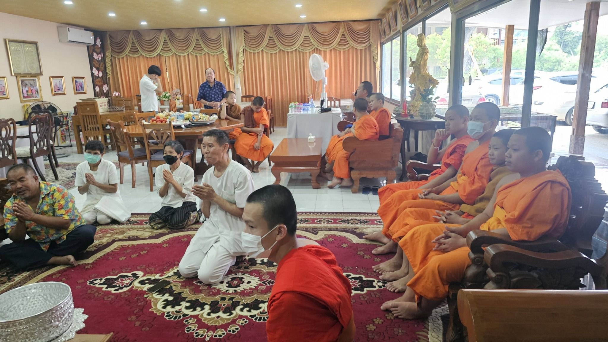 บรรยากาศภายในพิธีเป็นไปด้วยความเรียบร้อย งดงามตามแบบแผนประเพณีล้านนา คณะสงฆ์ได้ประกอบพิธีสามีจิกรรมอย่างพร้อมเพรียง ก่อนที่พระเทพมังคลาจารย์จะได้เมตตาให้โอวาทและประพรมน้ำพระพุทธมนต์เพื่อความเป็นสิริมงคลแก่คณะสงฆ์และพุทธศาสนิกชนที่เข้าร่วมพิธี
