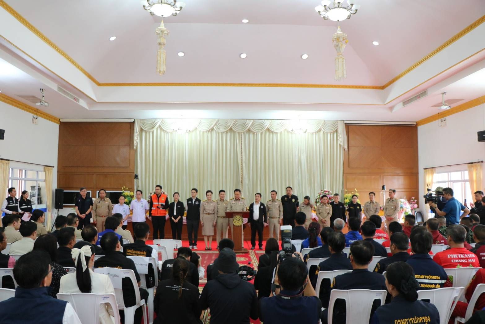 ในการนี้มีคณะรัฐมนตรีและผู้บริหารระดับสูงร่วมลงพื้นที่ อาทิ นายทรงศักดิ์ ทองศรี รองนายกรัฐมนตรี นางศุภจี สุธรรมพันธุ์ รองนายกรัฐมนตรีและรัฐมนตรีว่าการกระทรวงพาณิชย์ นายสุริยะ จึงรุ่งเรืองกิจ รัฐมนตรีว่าการกระทรวงเกษตรและสหกรณ์ นายไชยชนก ชิดชอบ รัฐมนตรีว่าการกระทรวงดิจิทัลเพื่อเศรษฐกิจและสังคม นายสุชาติ ชมกลิ่ม รัฐมนตรีว่าการกระทรวงทรัพยากรธรรมชาติและสิ่งแวดล้อม นายพัฒนา พร้อมพัฒน์ รัฐมนตรีว่าการกระทรวงสาธารณสุข พร้อมผู้ว่าราชการจังหวัดเชียงใหม่และหน่วยงานที่เกี่ยวข้อง