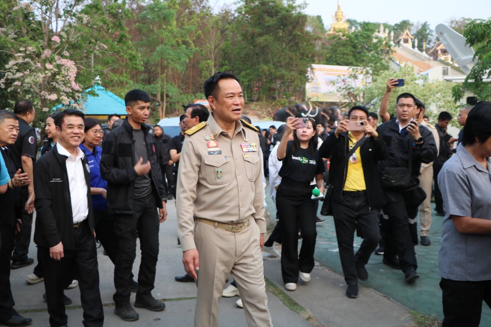 เมื่อวันจันทร์ที่ 20 เมษายน 2569 นายอนุทิน ชาญวีรกูล นายกรัฐมนตรีและรัฐมนตรีว่าการกระทรวงมหาดไทย ในฐานะผู้บัญชาการป้องกันและบรรเทาสาธารณภัยแห่งชาติ นำคณะรัฐมนตรีลงพื้นที่จังหวัดเชียงใหม่ เพื่อติดตามภารกิจป้องกันและแก้ไขปัญหาไฟป่าอย่างใกล้ชิด ณ วัดพระธาตุดอยสะเก็ด อำเภอดอยสะเก็ด จังหวัดเชียงใหม่
