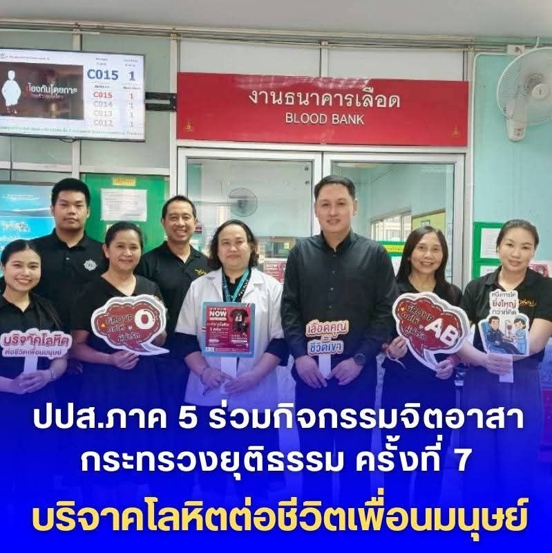 “ปปส.ภาค 5 ร่วมกิจกรรมจิตอาสากระทรวงยุติธรรม ครั้งที่ 7 บริจาคโลหิตต่อชีวิตเพื่อนมนุษย์”