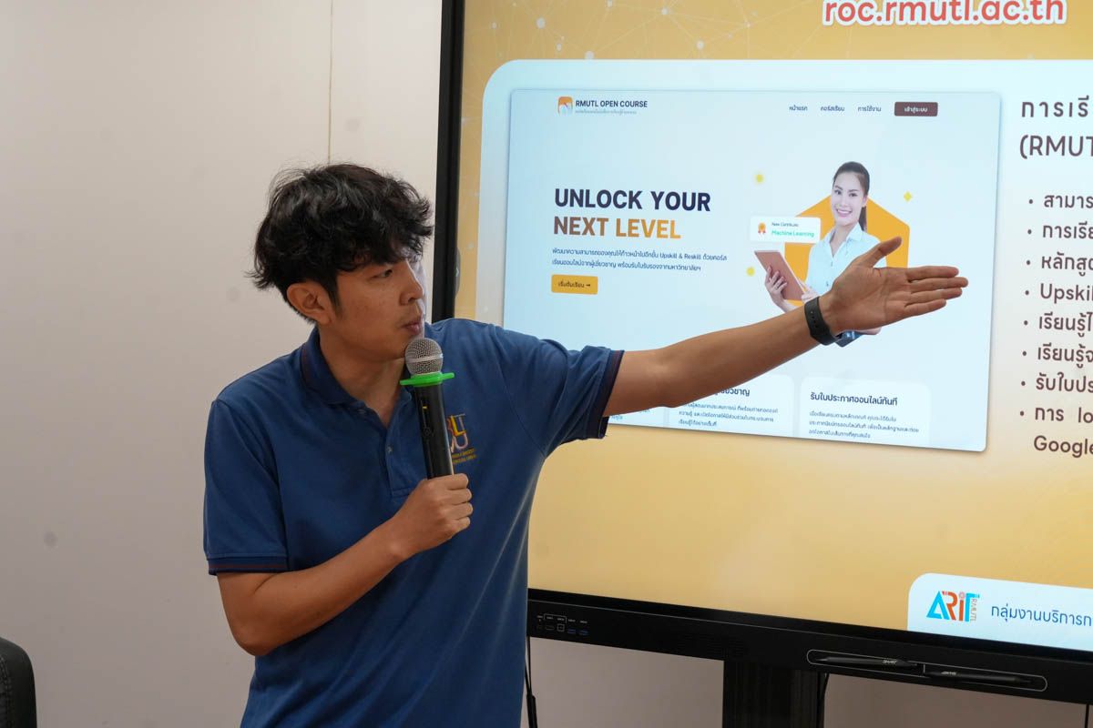 สำนักวิทยบริการและเทคโนโลยีสารสนเทศ มหาวิทยาลัยเทคโนโลยีราชมงคลล้านนา จัดโครงการอบรมเชิงปฏิบัติการ “การสร้างคอร์สออนไลน์บนแพลตฟอร์มของมหาวิทยาลัยเทคโนโลยีราชมงคลล้านนา” RMUTL OPEN COURSE (ROC) โดยได้รับเกียติจาก รศ.ว่าที่ร้อยตรีดิเรก มณีวรรณ อาจารย์ประจำสาขาครุศาสตร์อุตสาหกรรมและเทคโนโลยี คณะวิศวกรรมศาสตร์ เป็นวิทยากร ระหว่างวันที่ 22 – 23 เมษายน 2569 ณ ห้องฝึกอบรม 2 (หอสมุด) มทร.ล้านนา เชียงใหม่