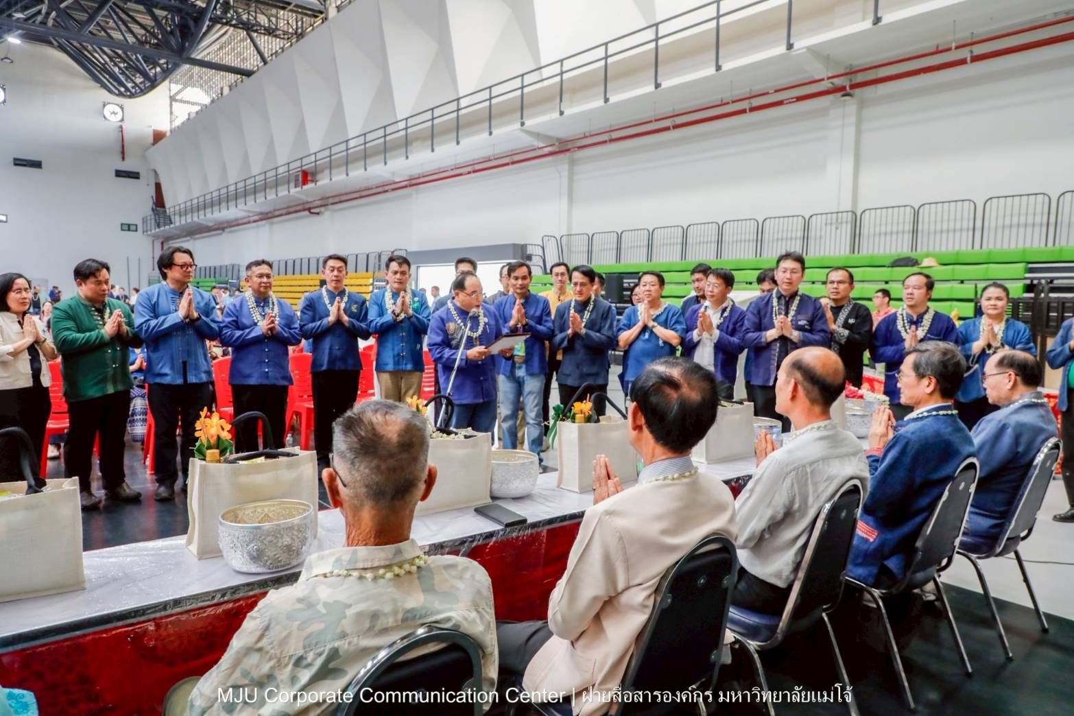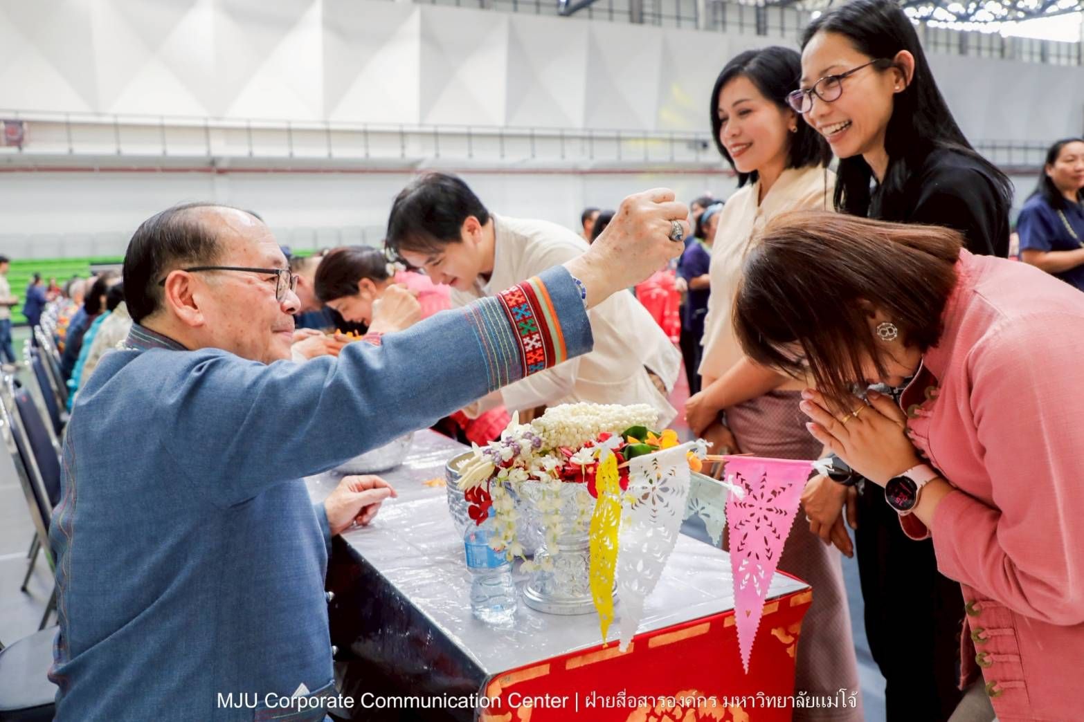 วันศุกร์ที่ 24 เมษายน 2569 มหาวิทยาลัยแม่โจ้จัดพิธีดำหัวผู้อาวุโส และอธิการบดี ประจำปี 2569 ร่วมสืบสานประเพณี ปีใหม่เมือง โดยได้รับเกียรติจาก รองศาสตราจารย์ ดร.เทพ พงษ์พานิช นายกสภามหาวิทยาลัย เป็นประธานอวยพรปีใหม่ โอกาสนี้ รองศาสตราจารย์ ดร. วีระพล ทองมา อธิการบดีมหาวิทยาลัยแม่โจ้ เป็นผู้แทนกล่าวขอขมาและขอพร จากนั้นคณะผู้บริหาร ผู้แทนแต่คณะ/สำนัก ร่วมประเคนของดำหัวผู้อาวุโส ณ อาคารศูนย์กีฬาทศมินทรบพิตร มหาวิทยาลัยแม่โจ้