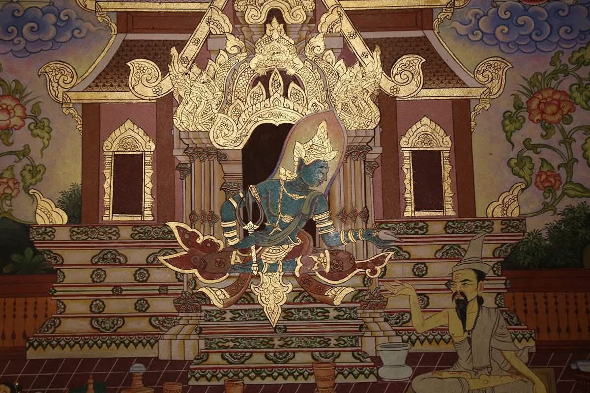 ด้วยความศรัทธาอันแรงกล้าของชาวลัวะผู้เฒ่าที่หมั่นทำความดีและบำเพ็ญเพียรมาโดยตลอด ประกอบกับคำทำนายของพระเถระที่เกรงว่าจะเกิดภัยพิบัติ จึงได้เกิดพิธีกรรมสร้างอ่างขางหรือกระทะขนาดใหญ่ ฝังรูปปั้นต่างๆ รวมทั้งรูปคนชายหญิงให้ครบ 101 ภาษาลงในหลุม แล้วสร้างเสาอินทขีลไว้เบื้องบนเพื่อทำการสักการบูชา เพื่อเป็นการขอขมาและขอให้บ้านเมืองพ้นจากภัยพิบัติ กลายเป็นจุดเริ่มต้นของประเพณีใส่ขันดอกที่สืบทอดกันมาจนถึงปัจจุบัน ต่อมาในสมัยพระเจ้ากาวิละ เจ้าผู้ครองนครเชียงใหม่ เมื่อปีพุทธศักราช 2343 หลังจากทรงกอบกู้เอกราชและฟื้นฟูเมืองเชียงใหม่ได้สำเร็จ ได้ทรงโปรดเกล้าฯ ให้นำเสาอินทขีลมาประดิษฐานไว้ ณ วิหารเสาอินทขีล วัดเจดีย์หลวง วรวิหาร และปลูกต้นยางนาไว้เป็นสัญลักษณ์คู่กับเสาหลักเมืองแห่งนี้มาตลอดระยะเวลา 225 ปี รวมถึงมีการสร้างรูปปั้นกุมภัณฑ์และรูปฤๅษีไว้ข้างวิหารเพื่อเป็นสัญลักษณ์คู่กันด้วย