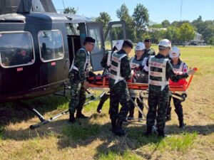 นาทีชีวิต! กองกำลังผาเมือง จับมือ สพฉ. ใช้เฮลิคอปเตอร์ลำเลียงผู้ป่วยฉุกเฉิน หญิง 69 ปี ภาวะเลือดออกในสมอง จาก อ.ฝาง ถึง รพ.เมือง เร็วขึ้น 4 เท่าตัว